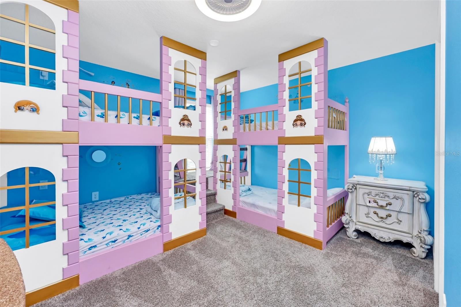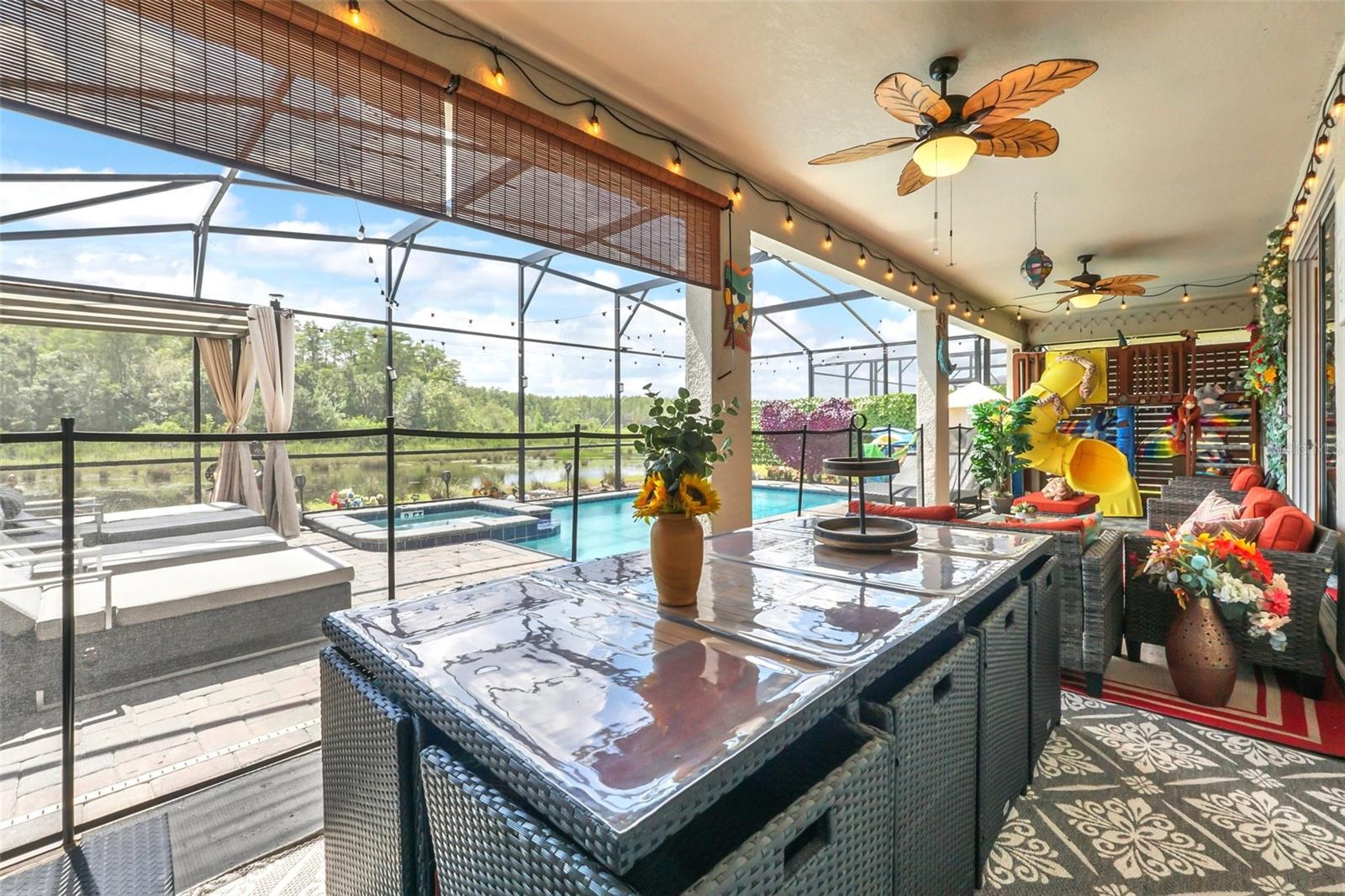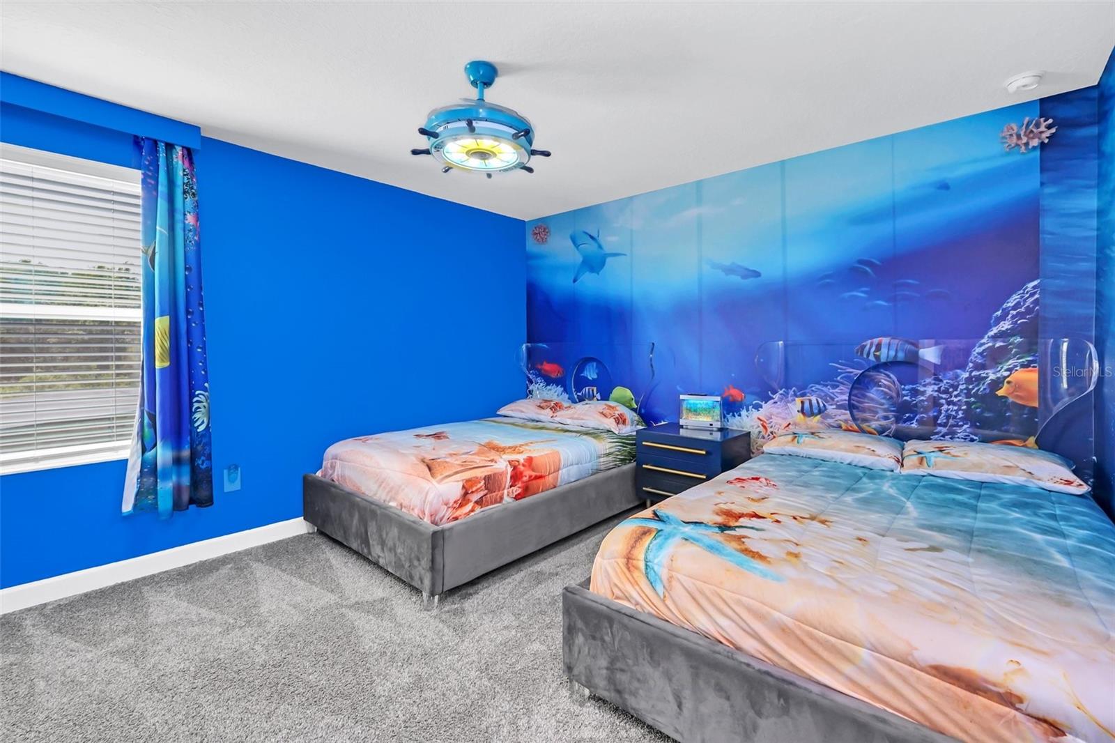Like New Stunning 8 Bedroom 5 Bath TurnKey Vacation Rental Home with pond view, no rear neighbor, south facing pool. in the highly desirable Storey Lake Resort. This Santiago model home is the largest and most popular model, and comes professionally furnished to ensure the highest revenue and occupancy rates. This gorgeous two-story home has plenty of space for your entire family. It features an oversized heated pool and spa with screened in lanai. Kitchen is fully equipped, offers quartz counters and stainless-steel appliances. Large open concept floor plan with covered lanai overlooking private pool and spa. Every bedroom is tastefully decorated and each includes their own HD flat screen TV. The home includes Enclosed Pool, a fun Game Room, an Amazing Movie Theater, Themed rooms, and is fully equipped with all the guest essentials to ensure the highest reviews. Open Floor plan with quartz countertops and a modern finish throughout. Storey Lake resort includes a Water Park, Lazy River, Full Gym, Tiki bar, Basketball/Volleyball/Tennis Courts, and so much more. Located only 4 miles from Disney and other popular attractions, making this one of the most sought after rental destinations on the market. Call for a showing today! This one will not last !