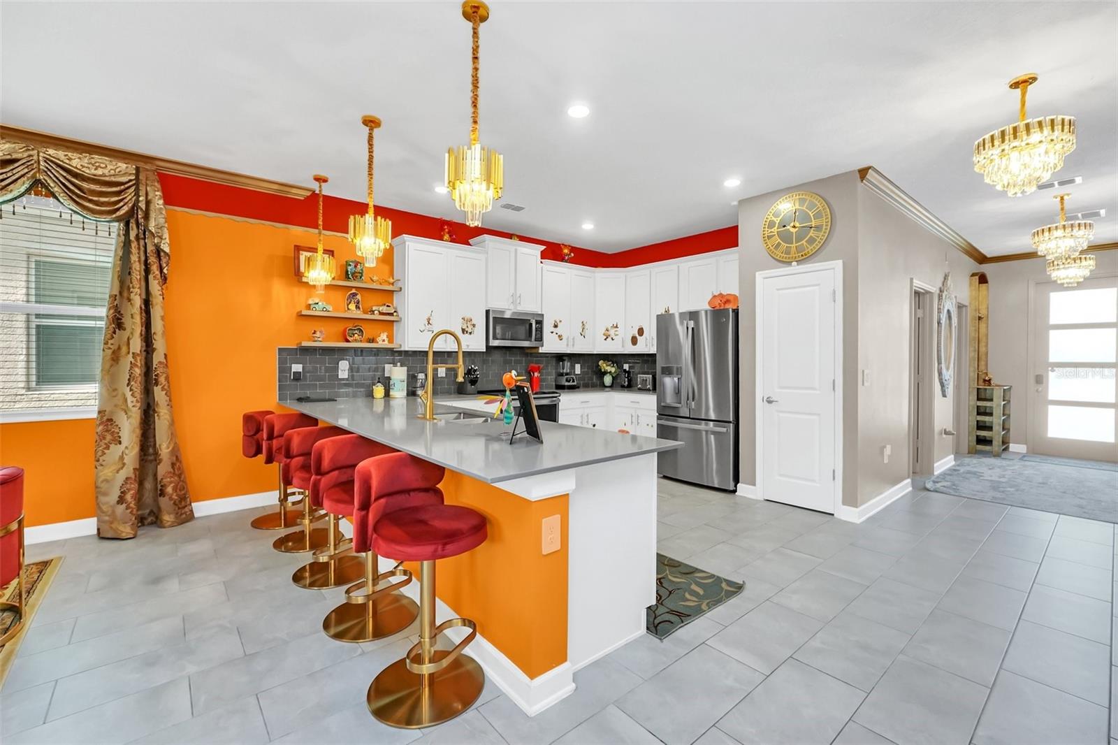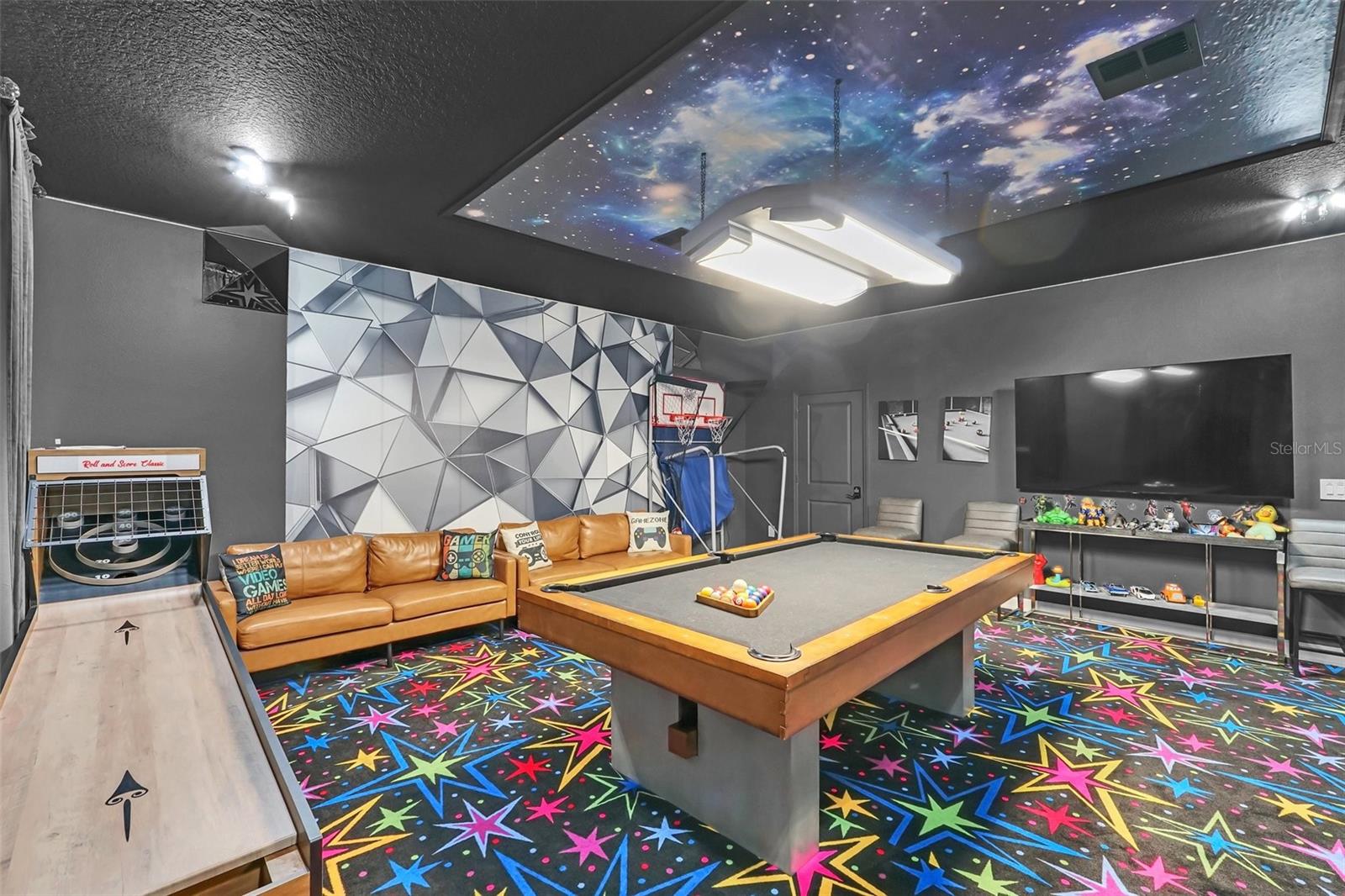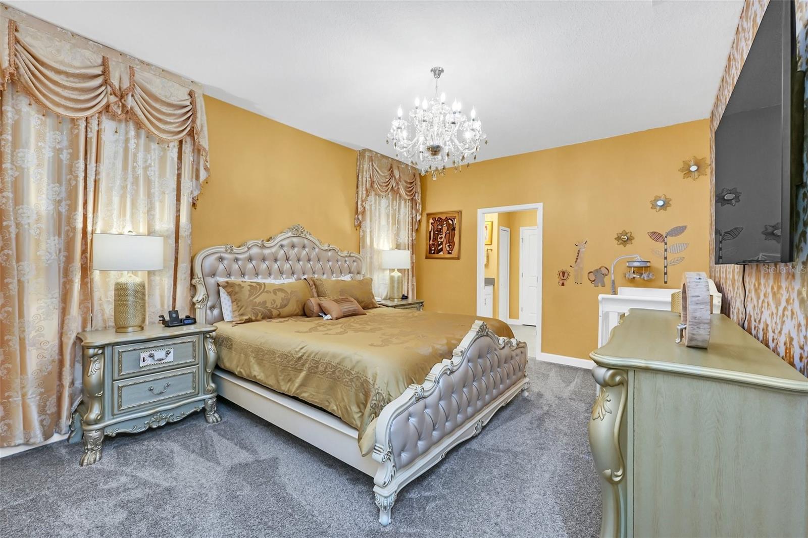Like New Stunning 8 Bedroom 5 Bath TurnKey Vacation Rental Home with pond view, no rear neighbor, south facing pool. in the highly desirable Storey Lake Resort. This Santiago model home is the largest and most popular model, and comes professionally furnished to ensure the highest revenue and occupancy rates. This gorgeous two-story home has plenty of space for your entire family. It features an oversized heated pool and spa with screened in lanai. Kitchen is fully equipped, offers quartz counters and stainless-steel appliances. Large open concept floor plan with covered lanai overlooking private pool and spa. Every bedroom is tastefully decorated and each includes their own HD flat screen TV. The home includes Enclosed Pool, a fun Game Room, an Amazing Movie Theater, Themed rooms, and is fully equipped with all the guest essentials to ensure the highest reviews. Open Floor plan with quartz countertops and a modern finish throughout. Storey Lake resort includes a Water Park, Lazy River, Full Gym, Tiki bar, Basketball/Volleyball/Tennis Courts, and so much more. Located only 4 miles from Disney and other popular attractions, making this one of the most sought after rental destinations on the market. Call for a showing today! This one will not last !