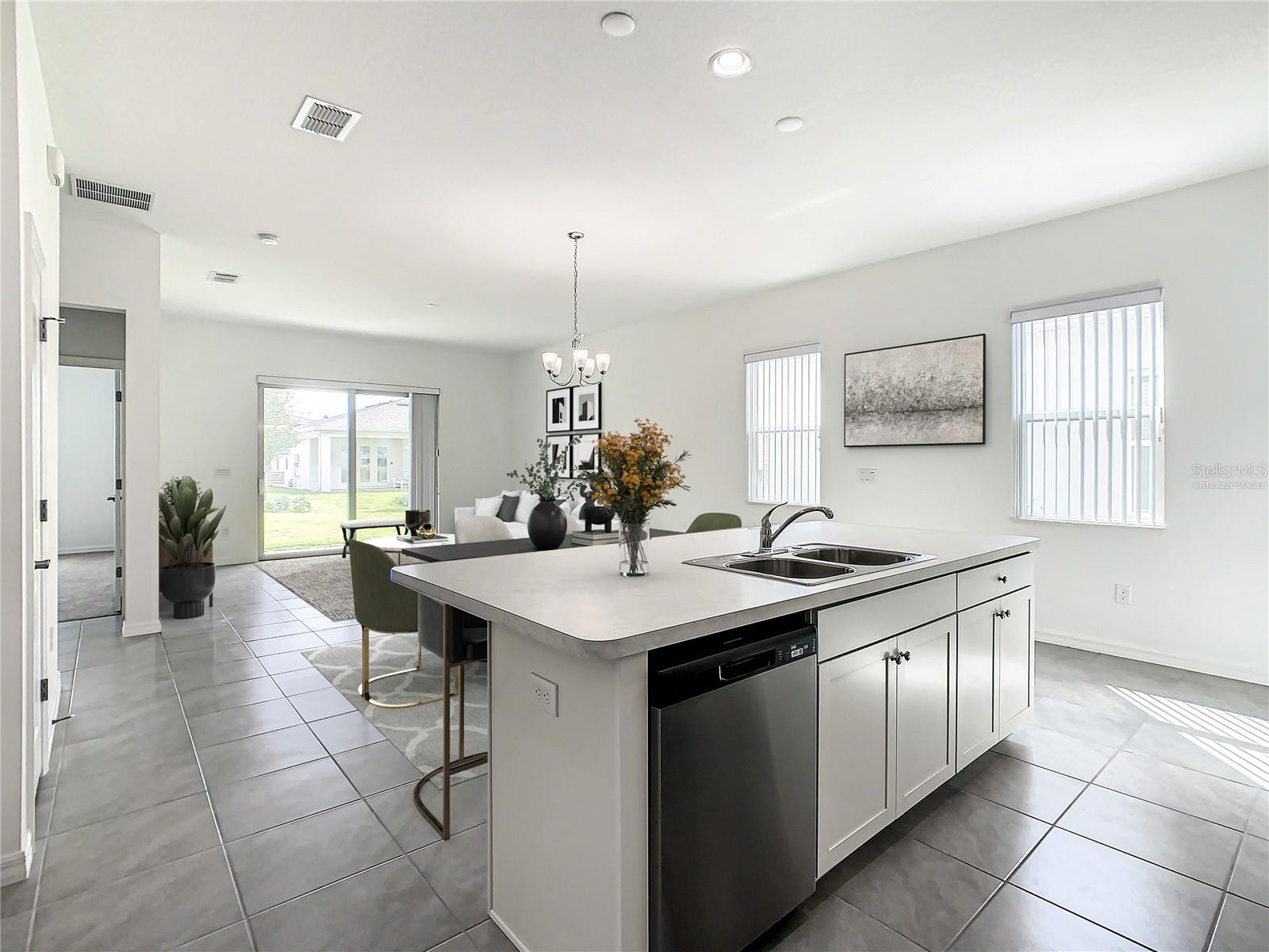 One or more photo(s) has been virtually staged. Don't miss out on this incredible opportunity! This never lived-in 2-bedroom, 2-bathroom home is priced to sell and offers a truly delightful living experience. As soon as you step inside, you'll instantly feel like you're on a perpetual vacation. The spacious and open floor plan is perfect for entertaining, and the kitchen is designed with that in mind. The owner's suite is inviting and features a luxurious bathroom, a large walk-in closet, and ample storage space. Why go through the hassle of building a new home when you can move into this never lived in property today? It comes equipped with vertical blinds, quartz window sills, and the convenience of both electric and gas dryer hookups. The bedrooms are adorned with high-quality carpet and padding, while the common areas boast beautiful ceramic tiles. Conveniently located just minutes away from everything, this community provides a sense of closeness to it all. You'll have access to three heated pools, a 12,000 sq. ft. amenity center, and courts for tennis, pickleball, and bocce ball—all without ever leaving the community. Experience the good life in this move-in ready home situated in the gated community of K Hovnanian's Four Seasons at Orlando. Please note that this property is specifically designed for individuals aged 55 and above.