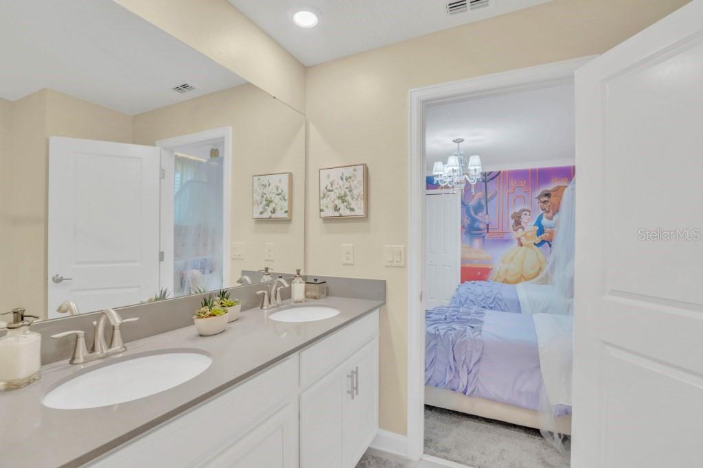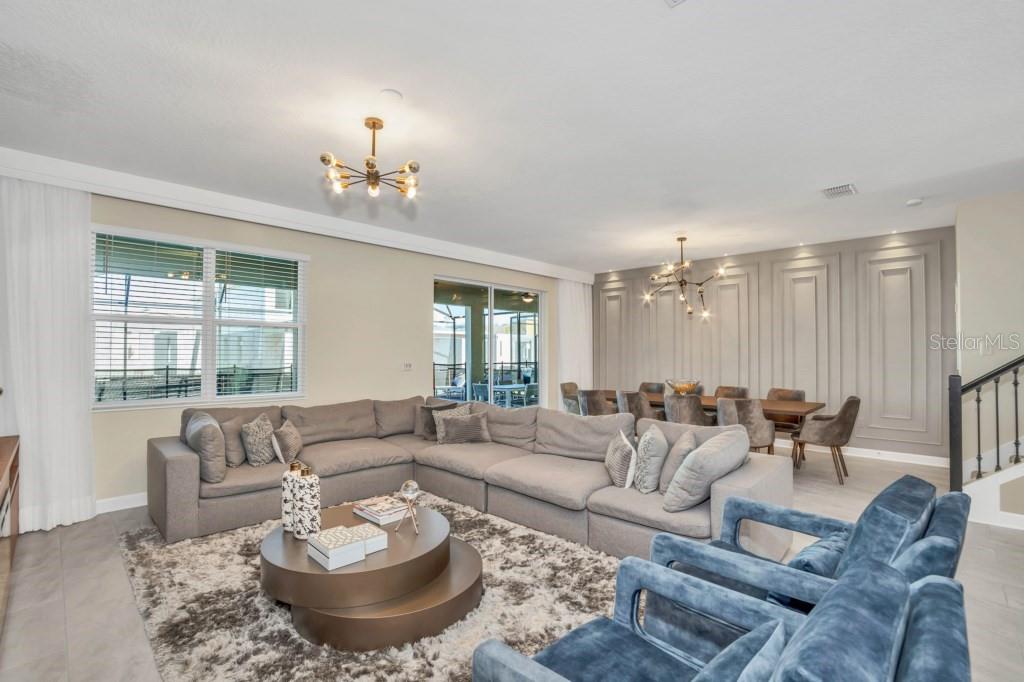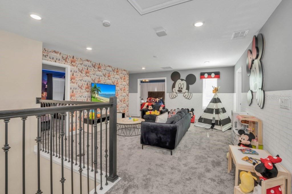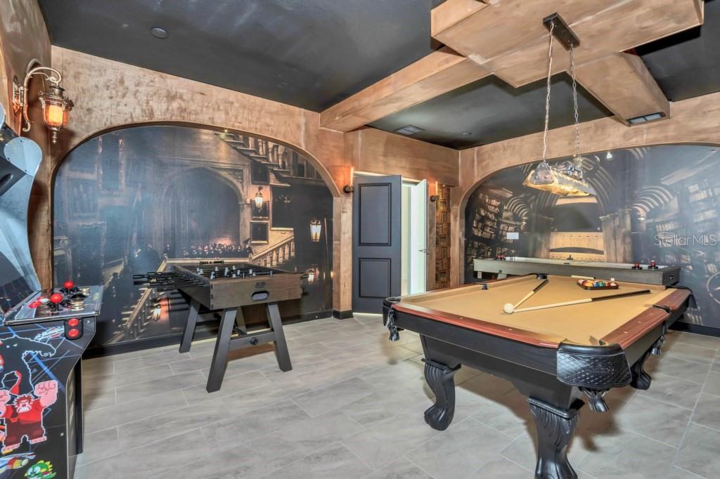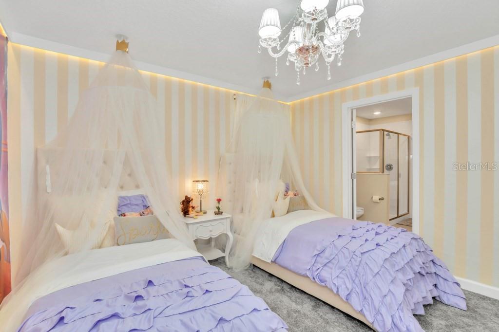 Beautiful Single Family with private pool & spa located at Storey Lake. There are 9 bedrooms, 5 Full bathrooms and a private pool. You'll love the open layout and generous room sizes throughout, amazing outdoor vacation experience to guests and owners alike. This property was beautifully decorated by famous designer Juliana Fernandes (JujuDiCasa) and there are multiple themed bedrooms (Toy story, avengers and beauty and the beast) make this property the perfect place for an unforgettable stay. Storey Lake offers family friendly, resort style amenities that everyone will enjoy including basketballs courts, a clubhouse, a playground, a resort style pool, water park, and fitness center. This home is the perfect choice and centrally located near many award-winning restaurants, a plethora of shopping options, theme parks, and easy access to major highways that make driving to either coast a breeze!