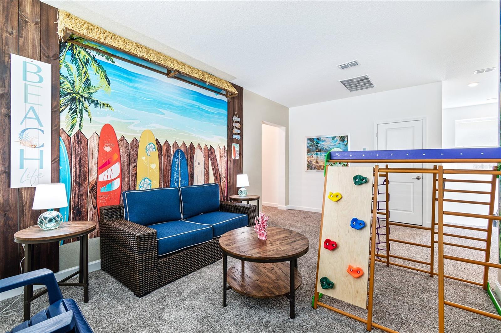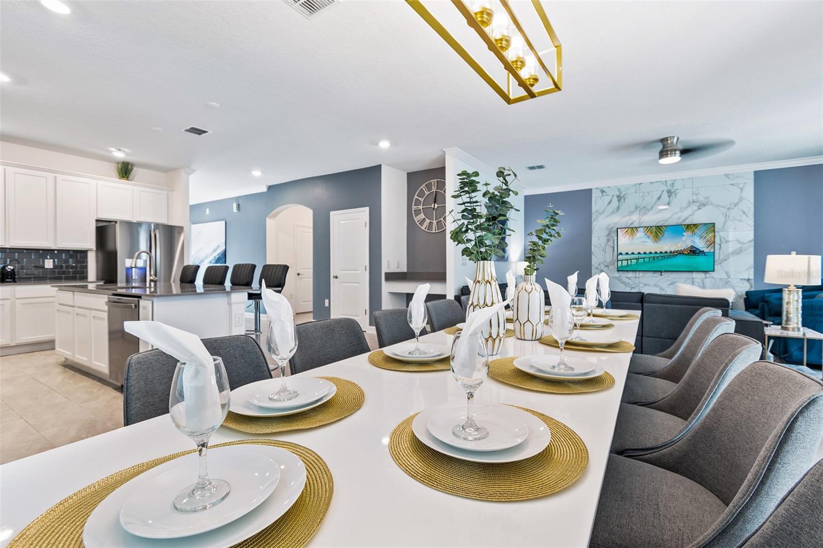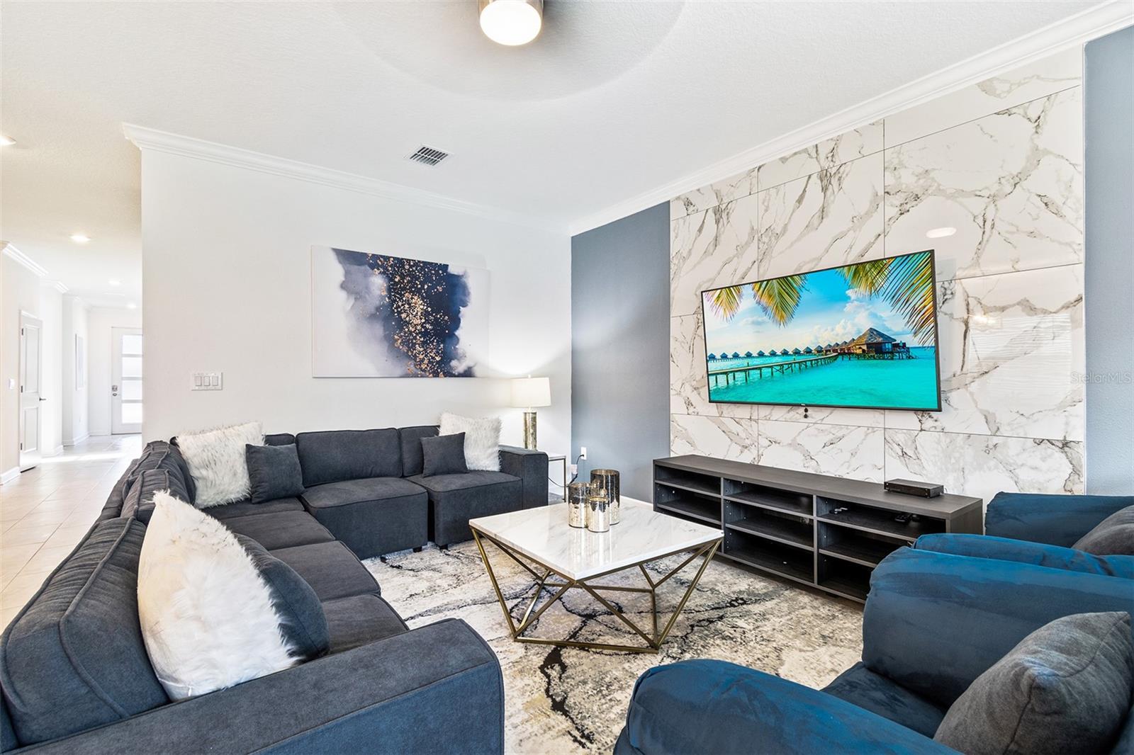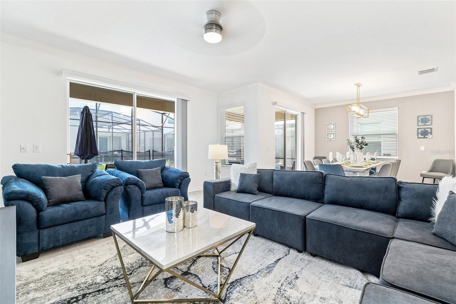 Fully furnished home in Storey Lake - decorated to perfection! Don’t miss this amazing opportunity to buy this POOL home in the most desirable resort community- Storey Lake. A well appointed kitchen that opens to the spacious great room and dining area, with sliding doors to the large covered lanai, leading to a fully screened POOL & SPA, makes it perfect for indoor/outdoor entertaining! Private 1st floor guest room for the convenience; an oversized owners suite, additional en-suite, large loft with and 3 other guest rooms on the second floor, making this 6 bedroom 5 bath fit for the whole family (can accommodate up to 16 people). The garage has been beautifully converted to a game room. This gated resort community features multiple clubhouse, that comes with a fitness center, pool, waterslide, lazy river, volley ball court, tennis courts, a play zone with lots of activities, and much more! HOA includes lawn maintenance, internet, cable, daily valet trash service in 24- hour gated community. Minutes aways from shopping, dining, and world renown attractions! Schedule your showing appointment now to make this home a turn key dream!