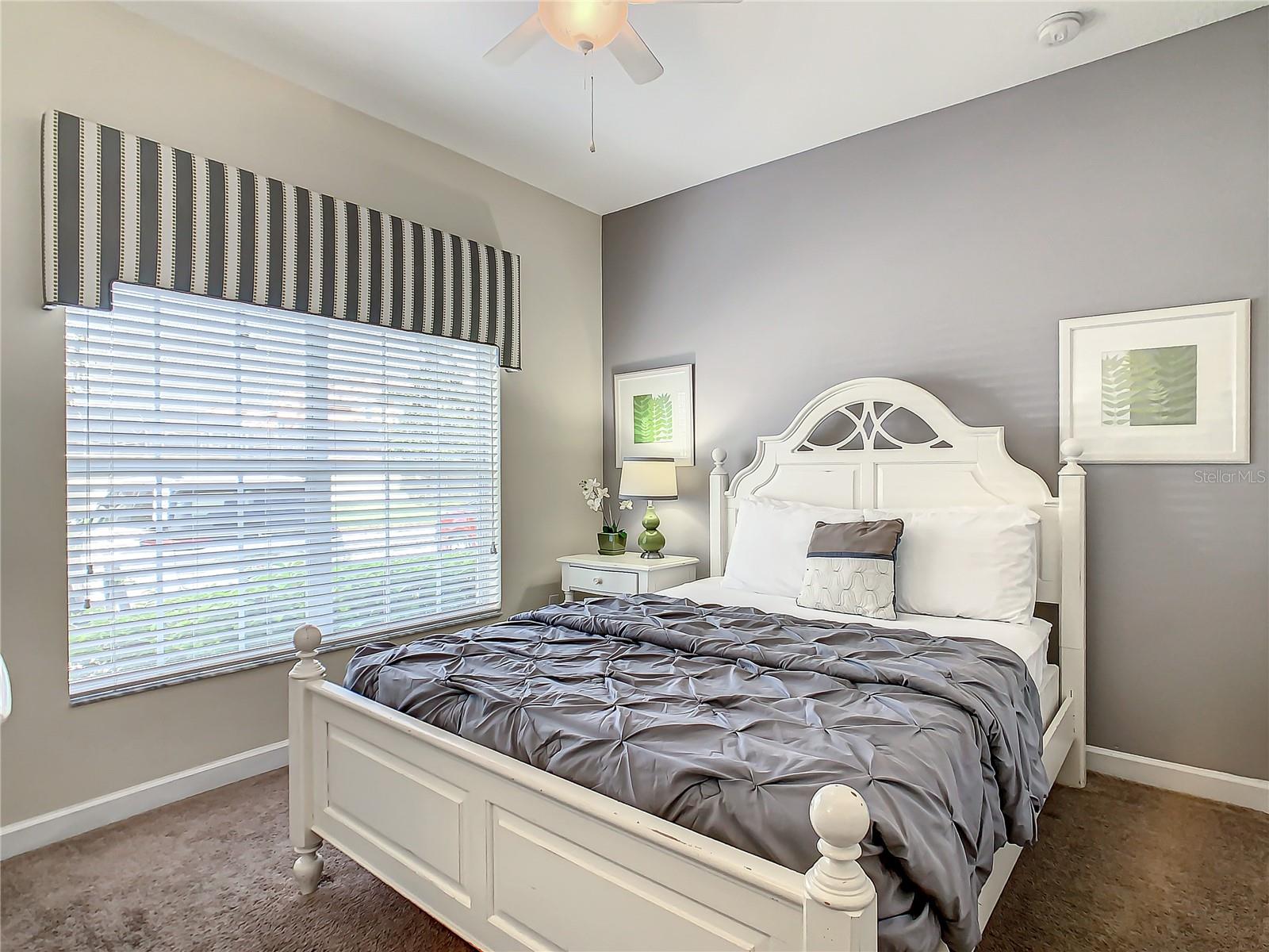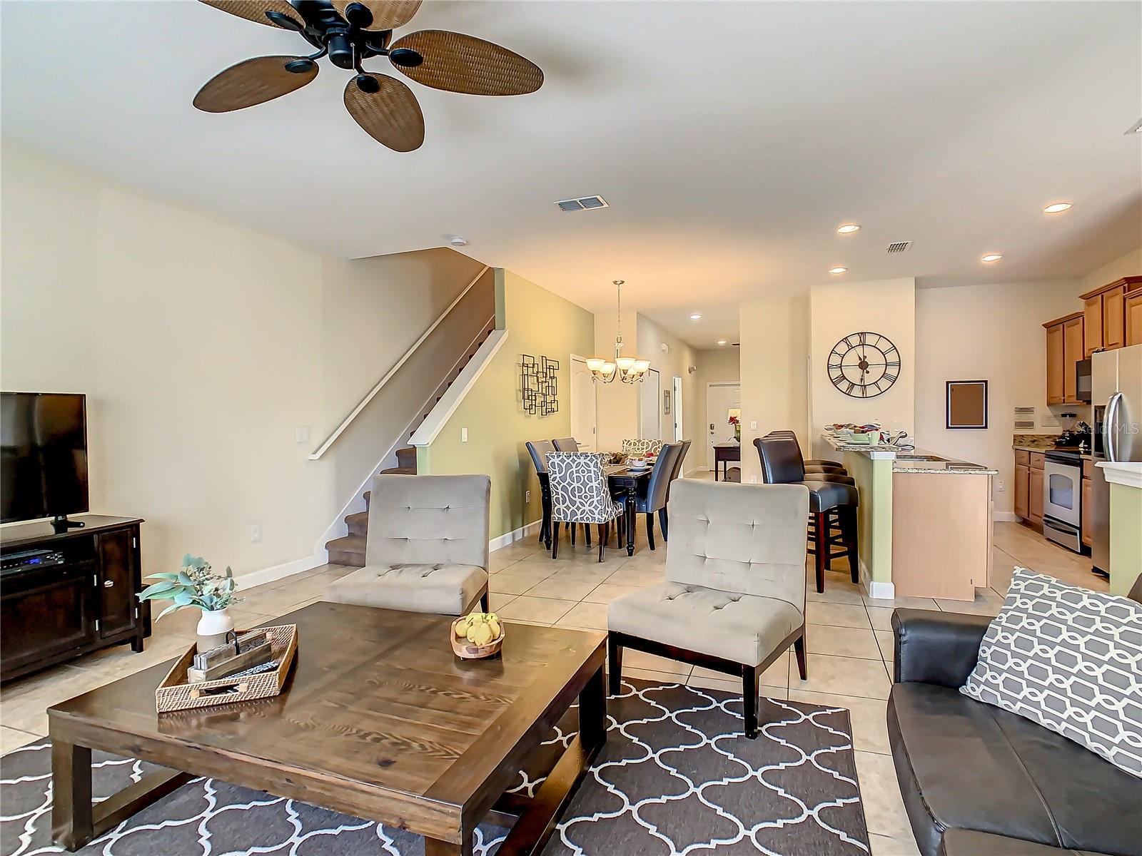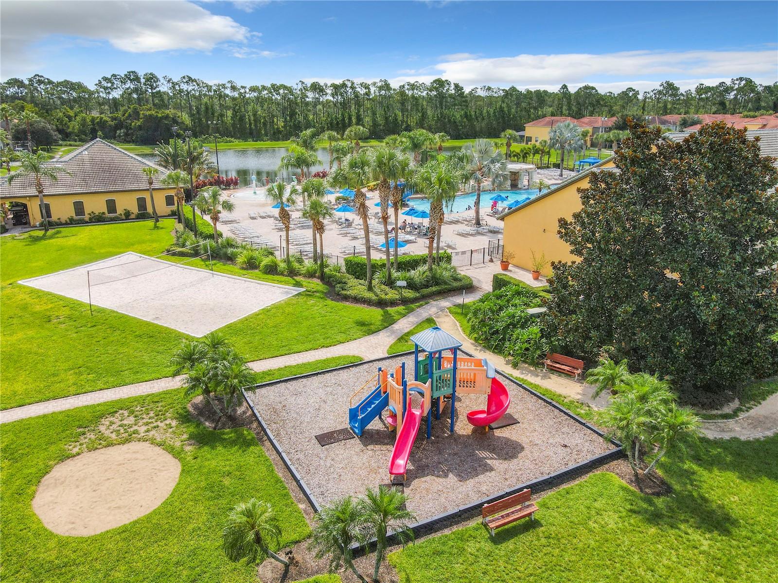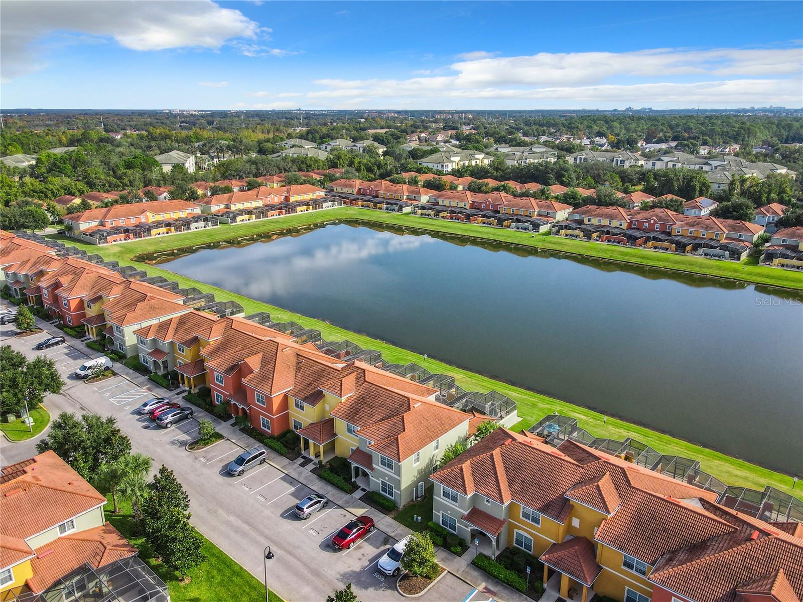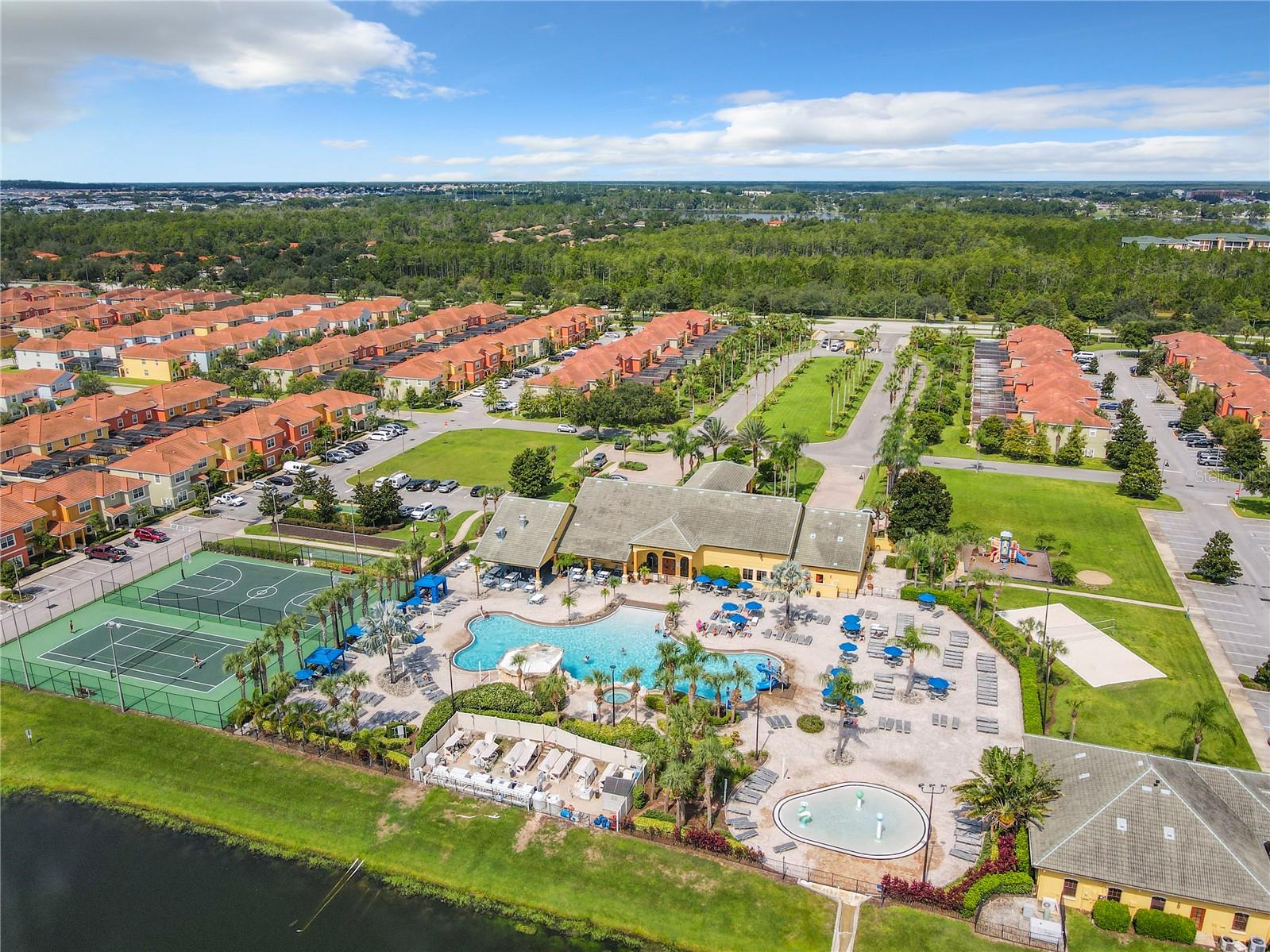 Experience the breathtaking beauty of this remarkable townhome in Paradise Palms, offering captivating views of the serene lake. With 5 bedrooms and 4 bathrooms, this stunning property features two bedrooms on the lower level and three bedrooms upstairs. It comes fully furnished, ensuring a seamless and hassle-free purchase. The kitchen boasts sleek stainless steel appliances, while the screened splash pool provides the perfect space for relaxation, sunbathing, and al fresco dining. Paradise Palms offers a secure living environment with a 24-hour manned security gate. The community clubhouse provides a host of amenities, including a theater, arcade, gym, conference room, sundry shop, tiki bar, grille, tennis courts, basketball and volleyball courts, and much more. Don't miss out on this incredible opportunity to own your own piece of paradise.