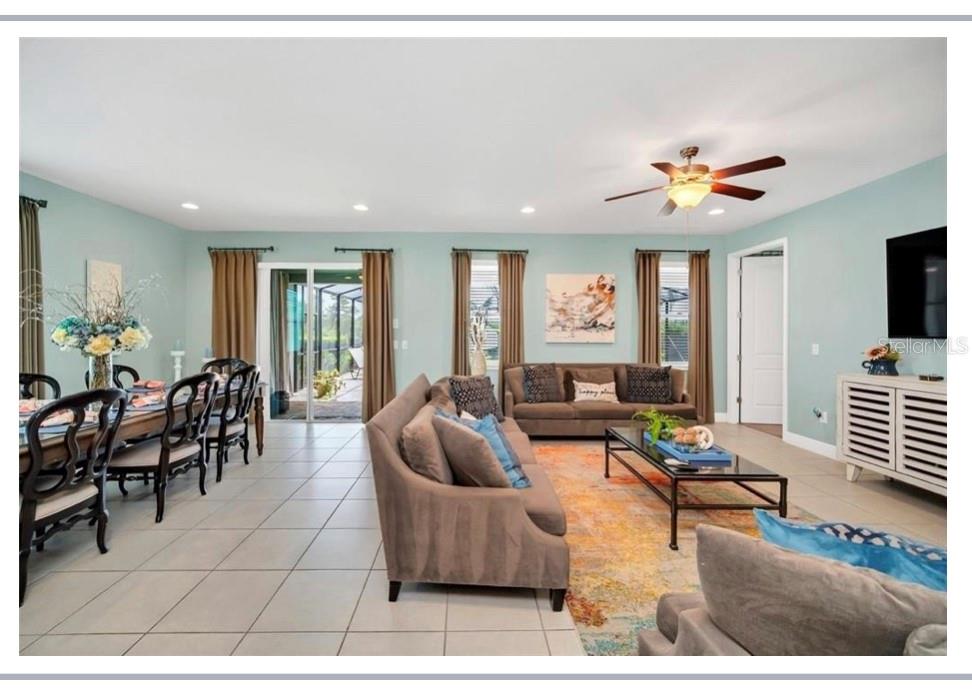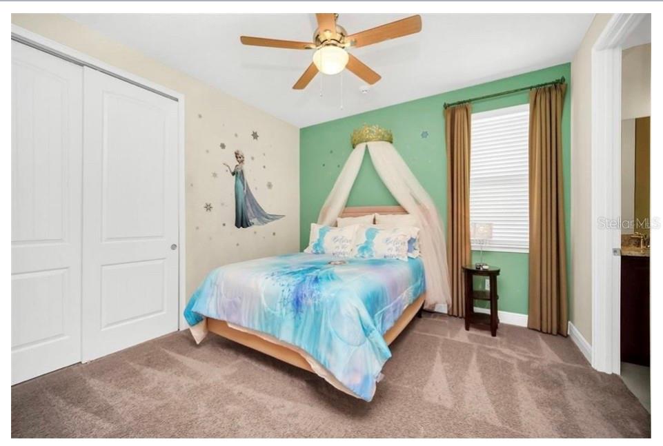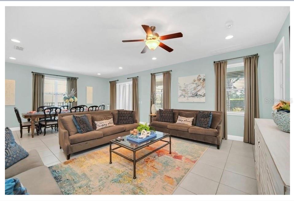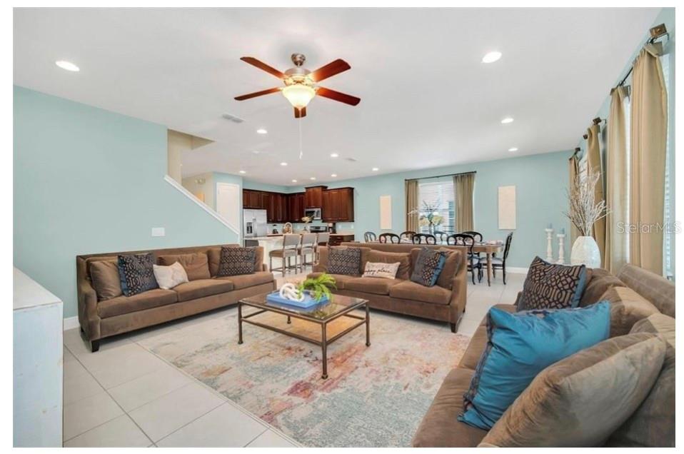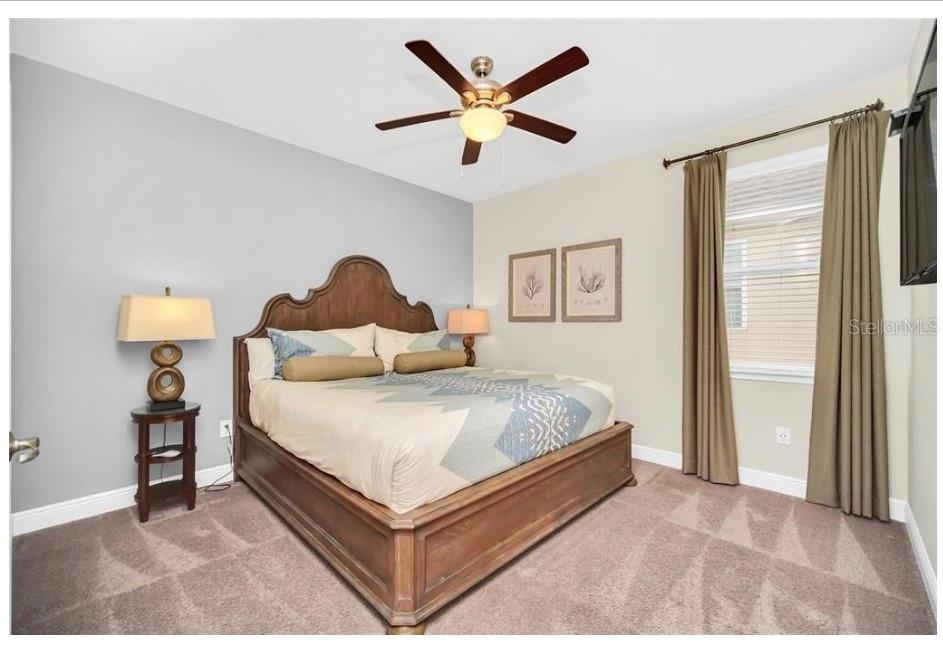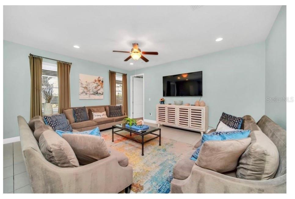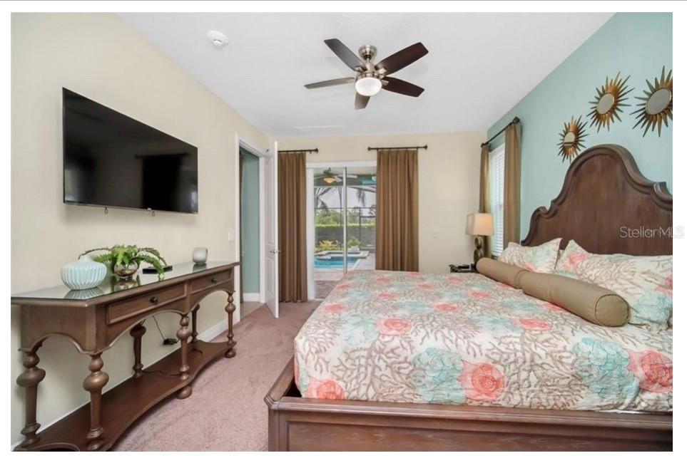 This exquisite two-story residence is situated in the exceptional Encore at Reunion Resort community. Fully furnished with impeccable taste, this home boasts 9 bedrooms (8 bedrooms and a spacious media room) and 5.5 bathrooms. Offering both elegance and privacy, the two master bedrooms are conveniently located on the first floor. Outside the great room and dining area, a covered lanai extends to a private screened-in heated pool and spa—ideal for year-round enjoyment in sunny Florida. The premium lot overlooks water with no rear neighbors. The kitchen is equipped for entertaining, featuring stainless steel appliances and a well-designed layout for the chef. Upstairs, a secondary living space and a sizable media room, perfect for movies, complement 6 additional themed bedrooms. The open floor plan is ideal for large family gatherings and guest enjoyment. The Encore Club, a private luxury resort community, is situated in a prime location with luxury homes and fantastic amenities. Just minutes from highway 192, the I-4, and toll road 429, this location allows for quick commuting to Orlando's renowned theme parks, outlet shopping, fine dining, and cultural attractions. Encore Club at Reunion Homes provides an exclusive club with amenities for an incredible vacation lifestyle and family-friendly atmosphere. These properties are suitable as primary residences, investments, or vacation homes. Community amenities include swimming pools, a water park with water slides and a lazy river, poolside service, a 24-hour front desk, on-site parks and attractions, digital concierge service, complimentary theme park shuttle service, and activities and grocery delivery. Don't miss the opportunity to make this home yours before it's too late!