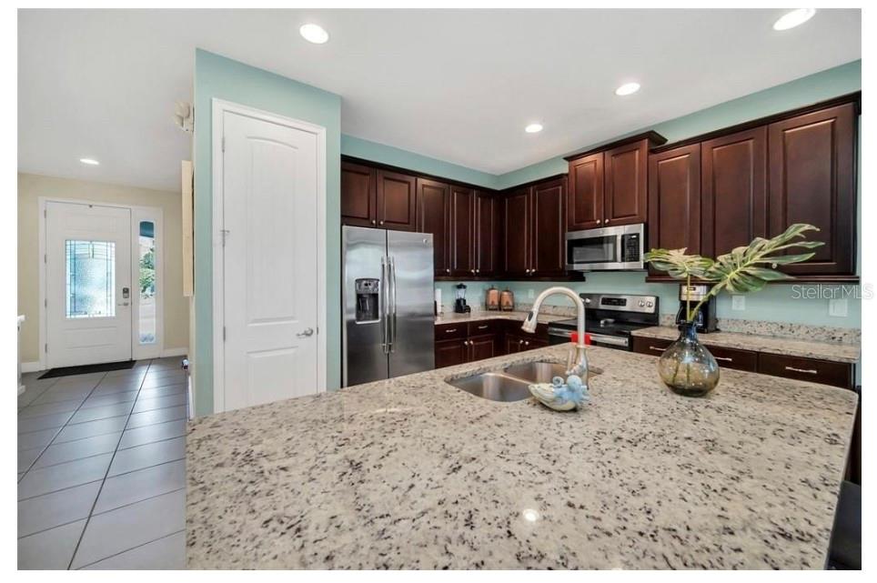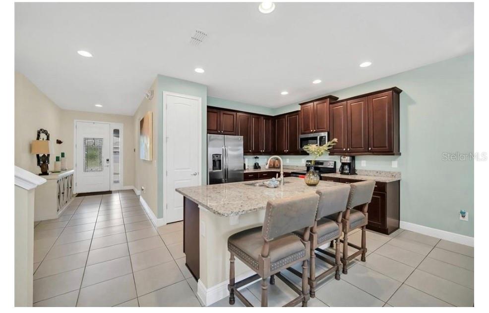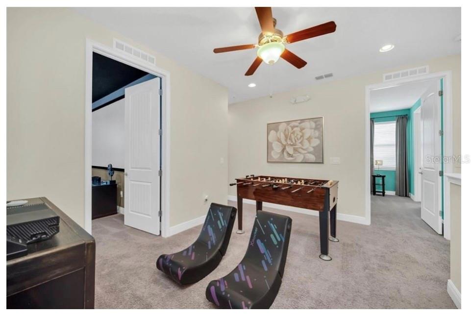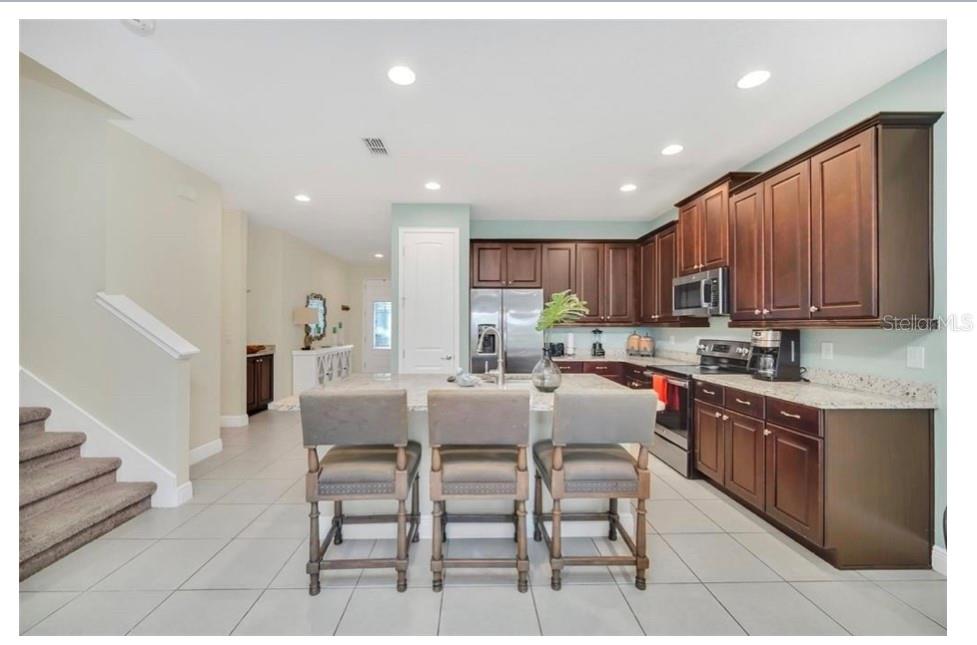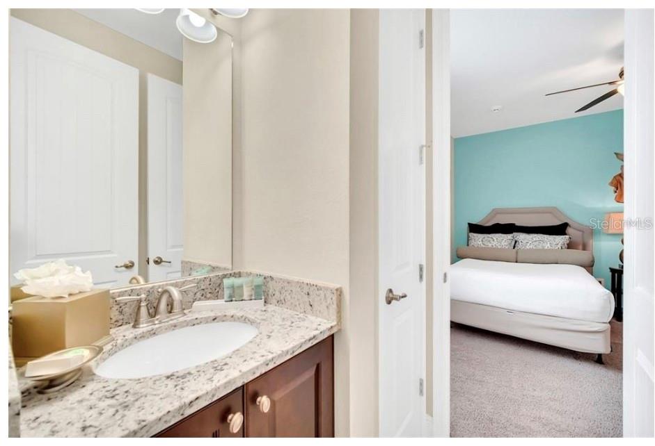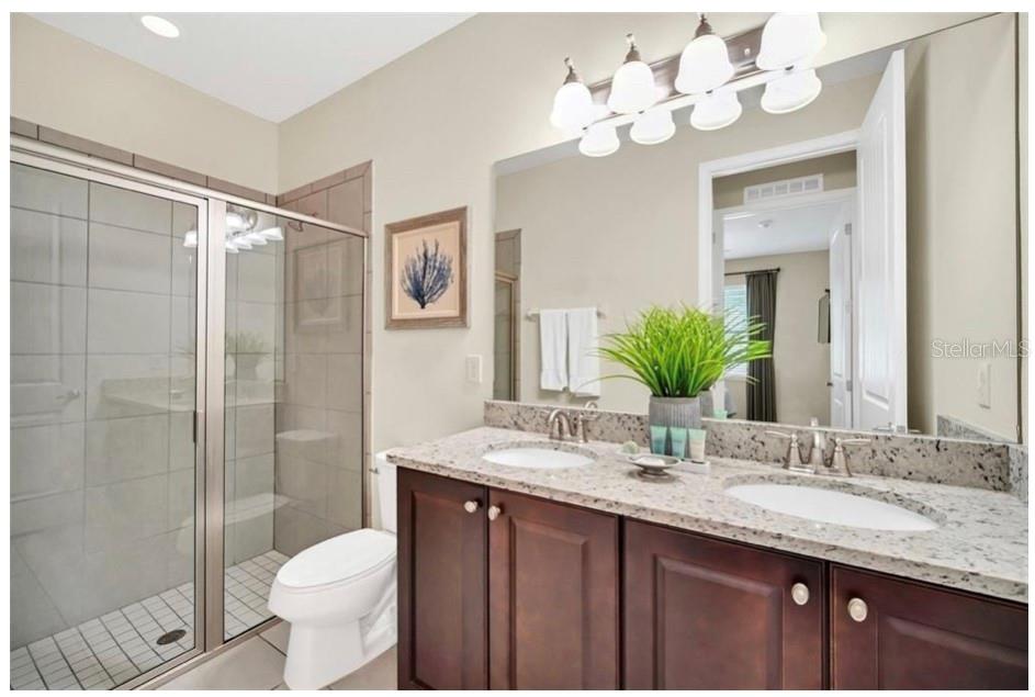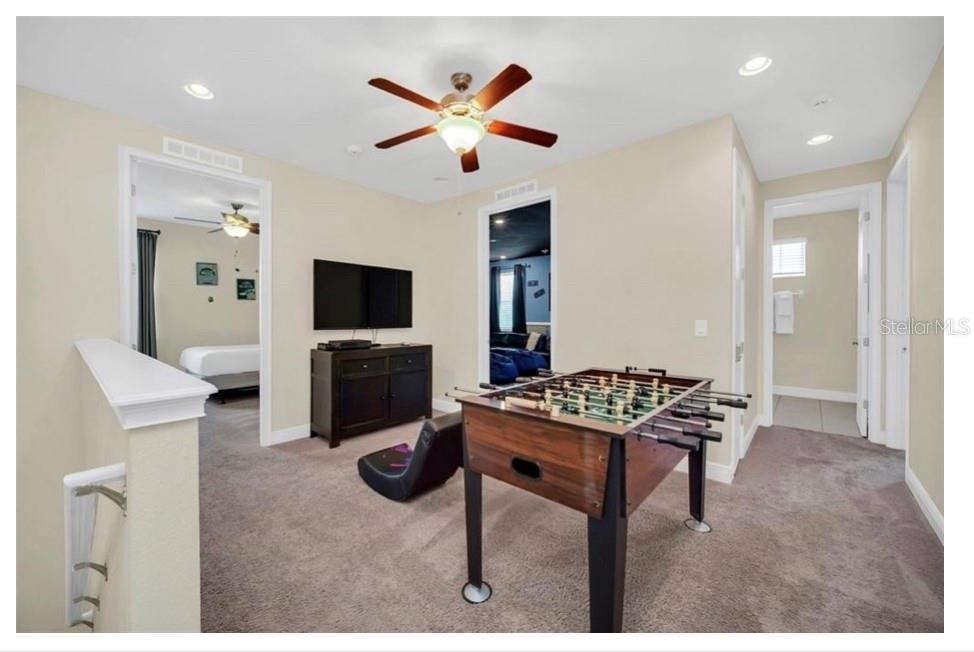 This exquisite two-story residence is situated in the exceptional Encore at Reunion Resort community. Fully furnished with impeccable taste, this home boasts 9 bedrooms (8 bedrooms and a spacious media room) and 5.5 bathrooms. Offering both elegance and privacy, the two master bedrooms are conveniently located on the first floor. Outside the great room and dining area, a covered lanai extends to a private screened-in heated pool and spa—ideal for year-round enjoyment in sunny Florida. The premium lot overlooks water with no rear neighbors. The kitchen is equipped for entertaining, featuring stainless steel appliances and a well-designed layout for the chef. Upstairs, a secondary living space and a sizable media room, perfect for movies, complement 6 additional themed bedrooms. The open floor plan is ideal for large family gatherings and guest enjoyment. The Encore Club, a private luxury resort community, is situated in a prime location with luxury homes and fantastic amenities. Just minutes from highway 192, the I-4, and toll road 429, this location allows for quick commuting to Orlando's renowned theme parks, outlet shopping, fine dining, and cultural attractions. Encore Club at Reunion Homes provides an exclusive club with amenities for an incredible vacation lifestyle and family-friendly atmosphere. These properties are suitable as primary residences, investments, or vacation homes. Community amenities include swimming pools, a water park with water slides and a lazy river, poolside service, a 24-hour front desk, on-site parks and attractions, digital concierge service, complimentary theme park shuttle service, and activities and grocery delivery. Don't miss the opportunity to make this home yours before it's too late!