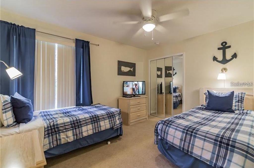 VACANT AGAIN!! COME SEE THIS BEAUTIFUL CONDO. This spacious condo is a rare find with 3 bedrooms & 3 full bathrooms. The open plan living area has a family room with 50" flat screen TV, fully stocked kitchen & breakfast bar, & a separate dining room. All living & wet areas are tiled while having cozy carpeting in the bedrooms. You'll enjoy 2 king master bedroom suites each with an oversize King bed, private en-suite bathroom, flat screen TV and both with sliding doors to a beautiful covered patio with table & chairs. Your 3rd bedroom has two twin beds, a flat screen TV and designed in exciting nautical decor. Enjoy the outdoors overlooking a private wooded area. This unit is fully furnished with everything needed. Located in a beautiful, gated resort with 2 community pools, tennis, club house & gym in the highly sought after Lindfield Estates area of Kissimmee, just 8 minutes from Disney World & 15-20 minutes from Universal Studios/Sea World. SCHEDULE YOUR SHOWING TODAY!!