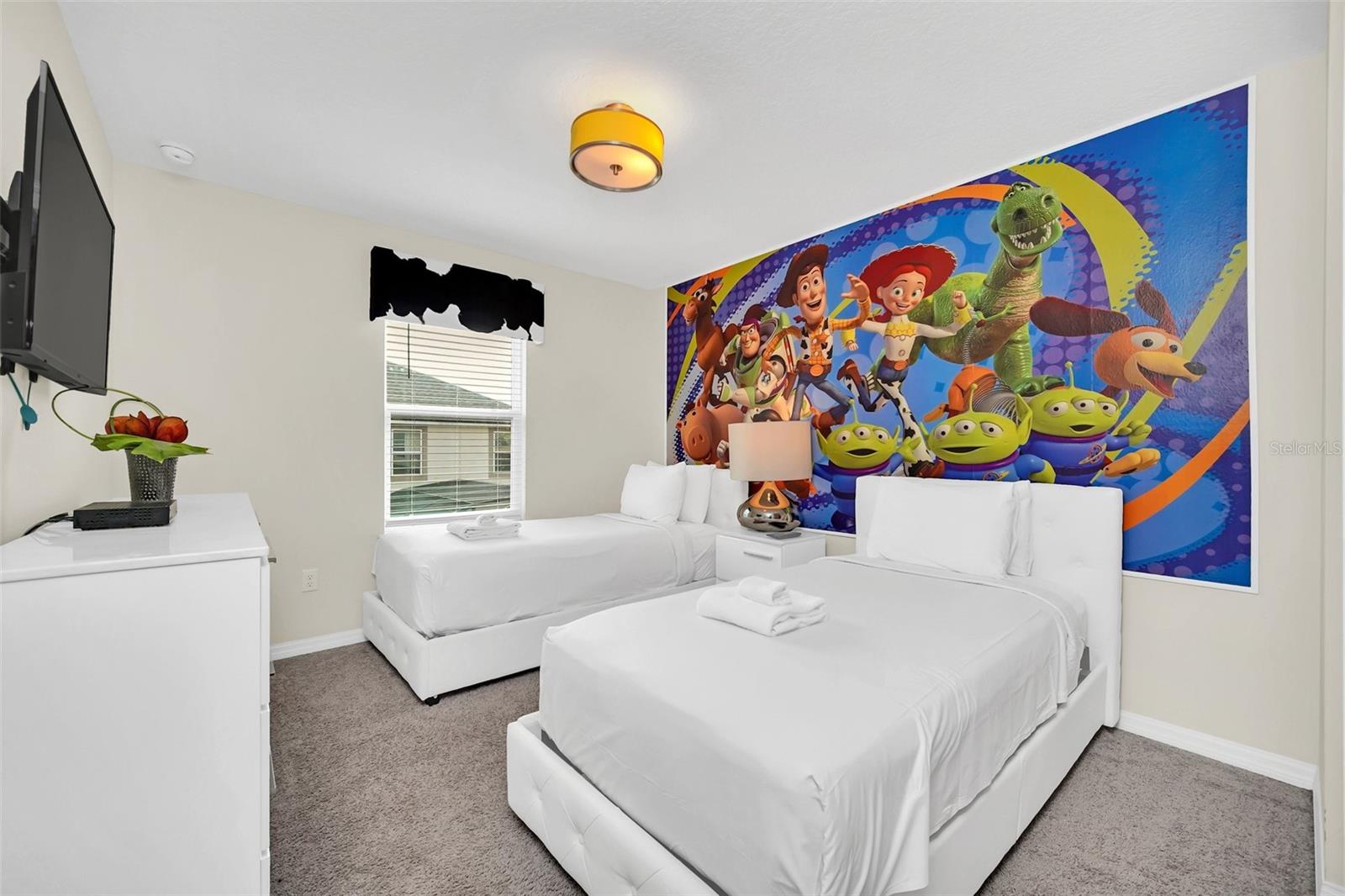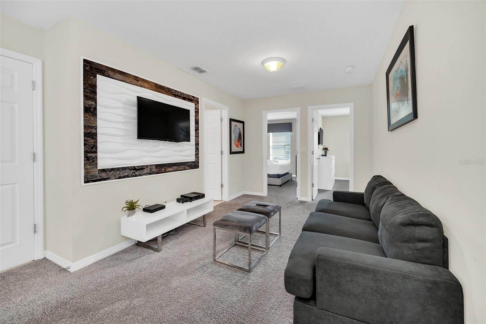 PRICED TO SELL!!! BEST LOCATION IN SOLARA - ON SAME STREET AS CLUBHOUSE - JUST STEPS AWAY! THIS PROFESSIONALLY FURNISHED RETREAT OFFERS THE MOST POPULAR FLOOR PLAN IN SOLARA! 4 BEDROOMS, 4.5 BATHROOMS - ALL COMPLETE AND READY TO RENT WITH CONTEMPORARY DECOR AND FURNISHINGS! EVERY ITEM IN CURRENTLY IN UNIT INCLUDED!! EARN PROFIT AND INCOME IN FIRST MONTH! GOURMET FULLY-STOCKED KITCHEN WITH STAINLESS STEEL APPLIANCES, STONE COUNTERTOPS, CONTEMPORARY 42' EXPRESSO CABINETS WITH CROWN MOULDING! EAT IN COUNTERTOP AREA PLUS SPACIOUS SEATING FOR 8 IN ADJACENT DINING AREA! PRIVATE KING ENSUITE ON FIRST FLOOR COMPLETE WITH GRANITE BATHROOM AND TUB SHOWER!! GREAT FOR GUESTS YOUNG AND OLD!! OUTDOOR SANCTUARY OFFERS AN EXCITING OASIS WITH HEATED SPLASH POOL, UPSCALE PAVER BRICK AND PLENTY OF RECLINING LOUNGES AND TABLE SEATING! ENTERTAINMENT LOFT UPSTAIRS CONTINUES CONTEMPORARY THEME WITH LARGE TV AND EXTENDED COUCH - LOTS OF SPACE - FOR MOVIE WATCHING, GAMING, AND SO MUCH MORE! THREE ADDITIONAL THEMED SUITES UPSTAIRS - EACH WITH A PRIVATE BATHROOM!! MASTER SUITE IS TRUE RETREAT WITH WALK IN CLOSET, DUAL SINKS WITH GRANITE COUNTERTOP AND WALK IN SHOWER!!! ALL BEDROOMS COMPLETE WITH LARGE TELEVISIONS AND FULL FURNITURE PACKAGE INCLUDING DRESSERS, NIGHTSTANDS AND WALL/WINDOW DECOR! THIS UNIT READY TO RENT AND IS A GREAT INCOME PRODUCER! THOUSANDS IN FUTURE BOOKING REVENUE IN PLACE! $$$ SOLARA COMMUNITY OFFERS HUGE ARRAY OF UPSCALE AMENITIES - SPRAWLING CLUBHOUSE, ZERO ENTRY POOL WITH FLOWRIDER, WATER SLIDES, SPLASH PAD, POOL BAR, ON-SITE RESTAURANT, COFFEE BAR, FITNESS CENTER, BASKETBALL AND VOLLEYBALL COURTS, SOCCER FIELD, PLAYGROUND, GAMING STATION AND SO MUCH MORE! MINUTES FROM PARKS, AIRPORT, AND WORLD CLASS ENTERTAINMENT! CASH OR FINANCE BUYERS WILL FIND THIS AN IRRESISTIBLE INVESTMENT AT THIS PRICE! DISCOUNTED TENS OF THOUSANDS OF DOLLARS FOR QUICK SALE! THIS IS AN ABSOLUTE INVESTMENT MUST FOR ANYONE INTERESTED IN VACATION OR INVESTMENT PROPERTY!!