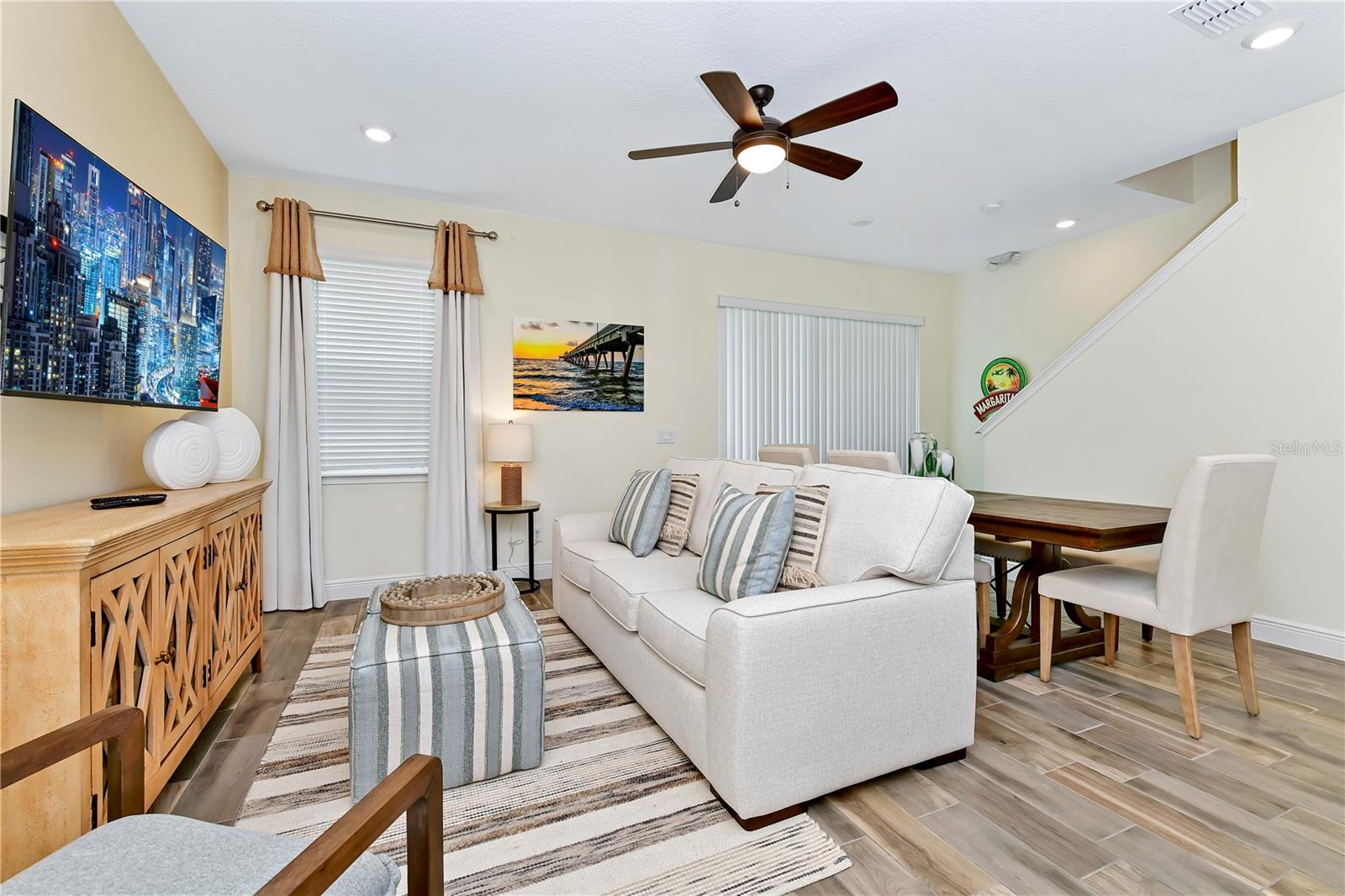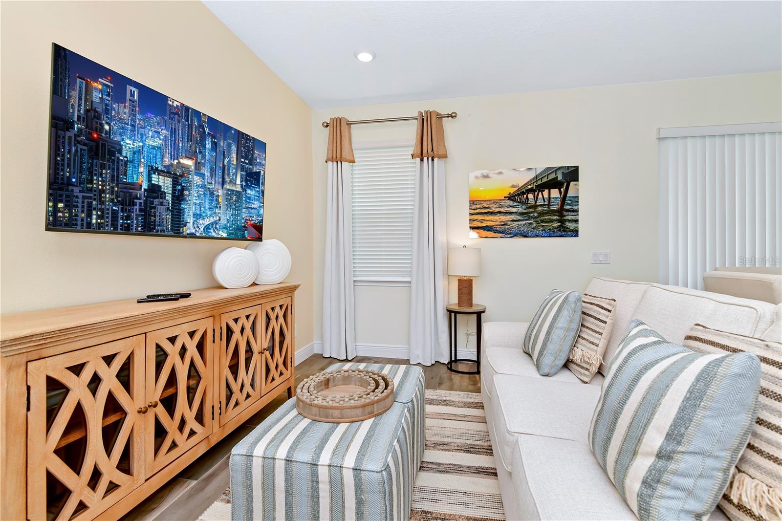 ***MAJOR Price Improvement *** Including Approved Furniture Package and Housewares Includes Blinds, Drapes, TVs, Artwork, Kitchen Necessities, Dishware, Linens, and so MUCH MORE! *** Discover the perfect blend of comfort and versatility in this charming 2 bedroom, 2.5 bath with a flex room. Ideal for those seeking additional space for a home office or guest room, the flex room offers endless possibilities. This Floor Plan features a spacious living room area and spacious kitchen. The kitchen is equipped with high-quality Samsung appliances, including a full-size washer and dryer. Take advantage of the resort-style amenities, including access to all 4 pools. Just minutes away from the Disney Parks. Whether you choose to use this villa for short-term rentals or enjoy it as your full-time residence, you'll have access to a full range of amenities, including pools, a hot tub, a full-service spa, a gym, and a variety of restaurants, bars, shops, and entertainment options. Don't miss the opportunity to own this villa in Margaritaville and start enjoying the resort lifestyle you and your family deserve today!