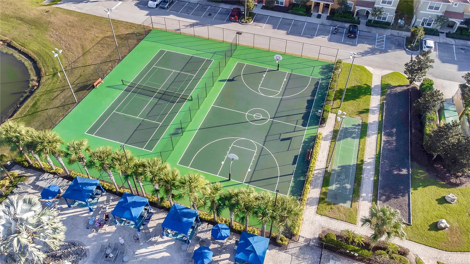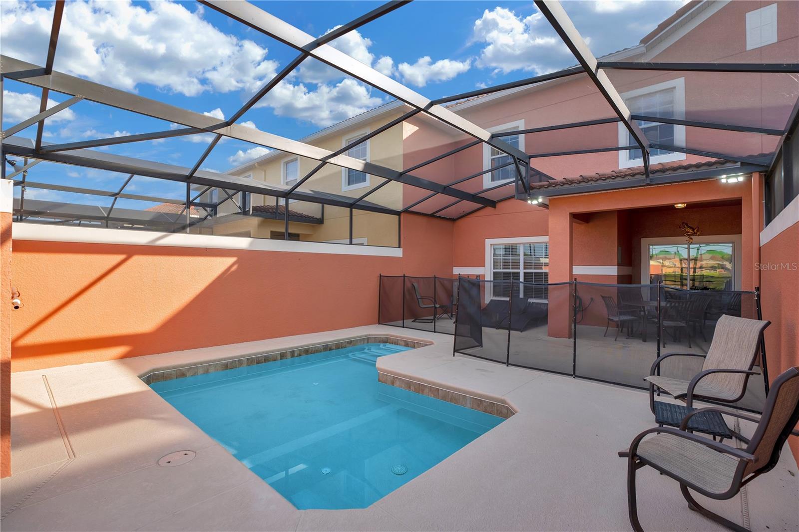 Discover Paradise Palms - Your Gateway to Exquisite Living! This meticulously designed 4-bedroom, 3-bathroom townhouse spans 2095 Sq Ft and boasts a private splash pool, offering breathtaking views of serene lakes and contemporary upgrades that define luxury living! Nestled within the gorgeous Paradise Palms, renowned for its resort-style allure, this townhouse stands out for its unparalleled features and coveted location. Positioned conveniently across from the clubhouse, it provides an unrivaled lifestyle coupled with stunning private lake vistas, fostering a tranquil ambiance with no rear neighbors and a picturesque pond view from its private splash pool—an inviting oasis bathed in endless sunshine. Indulge in the essence of luxury through recent enhancements, including a fully furnished interior adorned with granite countertops, opulent wood cabinets, brand-new kitchen appliances, luxurious vinyl flooring, a new washer and dryer, and an array of other captivating upgrades. Experience a wealth of resort-style amenities at Paradise Palms, from lounging by the expansive resort pool and engaging in tennis matches to enjoying cinematic thrills at the theater. Embrace convenience with an on-site store, prioritize wellness at the fitness center and sauna, and let the family revel in the joy of the playground. For the astute investor, this townhouse is enrolled in the short-term rental program, meticulously furnished and decorated—a turnkey opportunity poised to generate significant income with future bookings already secured. Additionally, the HOA has recently completed a community-wide paint job, ensuring a fresh, contemporary appeal for all residences. Strategically situated mere minutes away from Walt Disney World and Universal Studios, alongside seamless access to premier shopping and dining destinations, this property perfectly marries convenience with opulence. Whether you're eyeing a lucrative rental investment, a primary residence, or a tranquil retirement escape, this townhouse stands ready to fulfill your aspirations. Don't miss out on this exclusive chance to claim your slice of paradise in the esteemed Paradise Palms community! Reach out today to schedule a private viewing and seize this extraordinary real estate gem!
