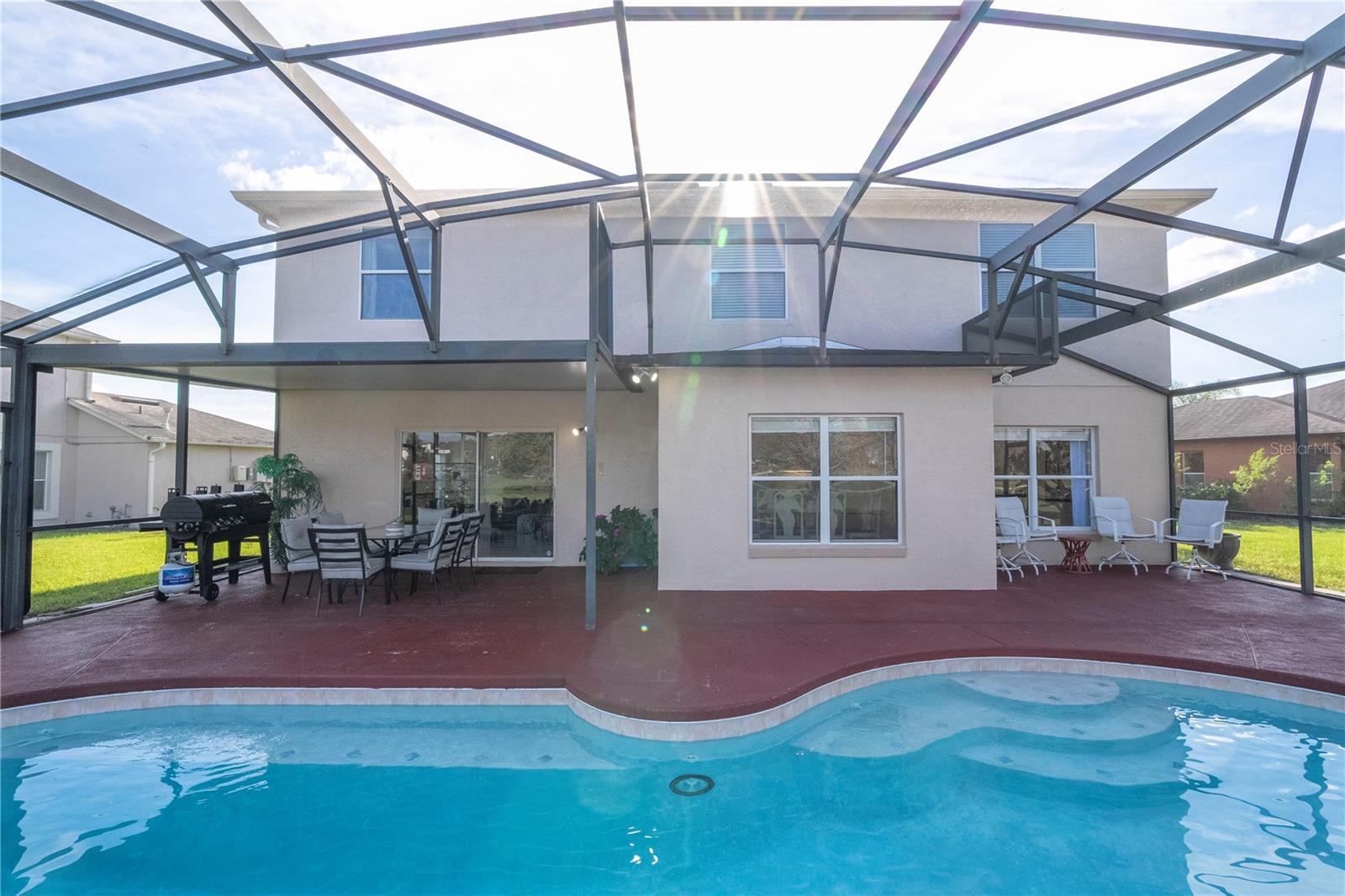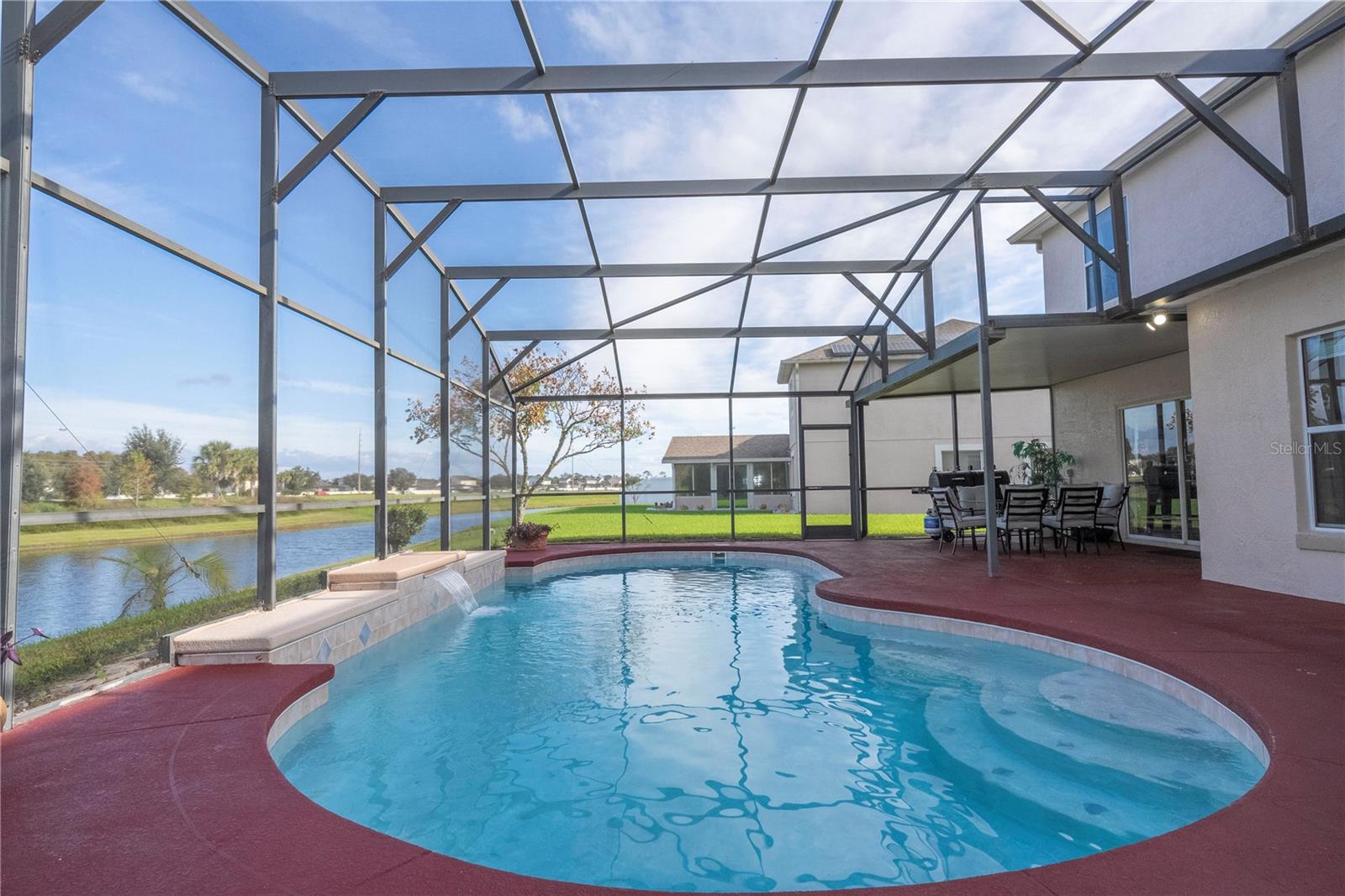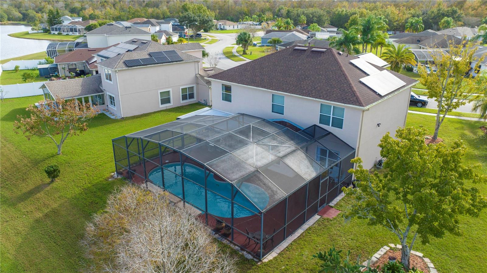 Beautiful WATERFRONT home located only 13 miles away from DISNEY that is perfect to be your RESIDENCE or VACATION HOME! Meticulously well maintained by its first and only owners, the home boasts ample spaces with a beautiful view of the lake, providing excellent opportunities for entertaining and hosting gatherings. Venture outside to discover your private paradise – a sparkling pool invites you to cool off on warm Florida days, while the expansive patio with a grill provides the perfect space for entertaining or simply unwinding with family and friends. The backyard offers breathtaking water views, creating a serene backdrop for your daily life. Energy efficient, this home's SOLAR PANELS will be paid off at closing and the BRAND NEW ROOF adds up in peace of mind for the new owners. The kitchen offers an ideal space for meal preparation and hosting guests, including a breakfast nook for an everyday breakfast and a formal dinning room for larger events. It opens to the family room that is spacious, comfortable and provides a cozy space for gatherings and quality time together, while the formal living room is well-suited for brief visits from guests. Smart features have been installed in the house allowing for voice control and activation of certain items. Upstairs the four bedrooms are thoughtfully designed to provide comfort and privacy, with the master suite boasting its own relaxing ensuite bathroom and two walk-in closets. Each room is a retreat, allowing you to escape the daily hustle and embrace the tranquility of your own space. A loft completes the scenario on the second floor and can be used as an office, a TV or a play room. Located at a tranquil neighborhood in the highly sought-after area of Kissimmee, only at about 25 min away from Disney this home is not just a residence, it's a lifestyle. Enjoy the convenience of being close to local attractions, shopping, dining, and great schools. Whether you're looking for a functional and comfortable home and a retreat, 5051 Heatherlake Terrace offers the best of both worlds. Don't miss the opportunity to make this house your home. Schedule your private tour today and step into the life you've been dreaming of at 5051 Heatherlake Terrace, Kissimmee. Your oasis awaits!