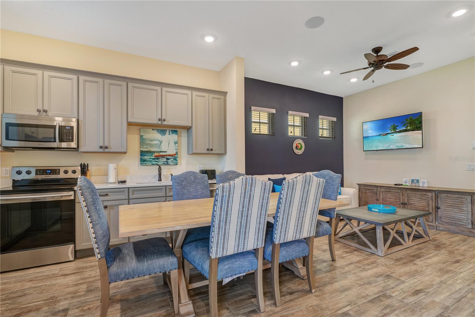 MOTIVATED SELLER! Unwind and soak up the tropical vibes! Get ready to experience the ultimate tropical escape and embrace the laid-back lifestyle at this enchanting three-bedroom cottage in the heart of Margaritaville Resort in Kissimmee, FL! You'll feel transported to your very own slice of paradise the moment you arrive, where the good life is calling your name. This immaculate oasis is the perfect blend of style, comfort, and adventure, featuring modern finishes and fully furnished with a top-of-the-line Ethan Allen "Son of Sailor" furniture package. Whip up your favorite island-inspired dishes in the well-equipped kitchen with sleek stainless steel appliances and quartz countertops. Then, head outside to unwind and recharge on the cozy patio surrounded by lush tropical flowers, seashell pathways, and stunning landscaping. Head upstairs, away from the hustle and bustle, to take a break from reality and indulge in the tranquil ambiance of the private balcony in the upstairs primary bedroom suite, offering breathtaking views of the Island Grove Winery. Margaritaville Resort is the ultimate haven for those seeking a fun-filled getaway, with endless entertainment options just a stone's throw away. There's something for everyone, from trendy restaurants and friendly bars to exhilarating activities, fabulous eclectic shops, sparkling resort pools, fitness spaces, and a luxurious spa. Plus, the theme parks and all of Orlando's world-famous entertainment options are less than 10 minutes away, making it the perfect location for relaxation and adventure. Whether you're looking for a private home, vacation retreat, or rental income property, this cottage is a dream come true. So what are you waiting for? Soak up the island time vibe, where the sunshine is endless, the music is live, and the bars are cool. Start living the good life today!