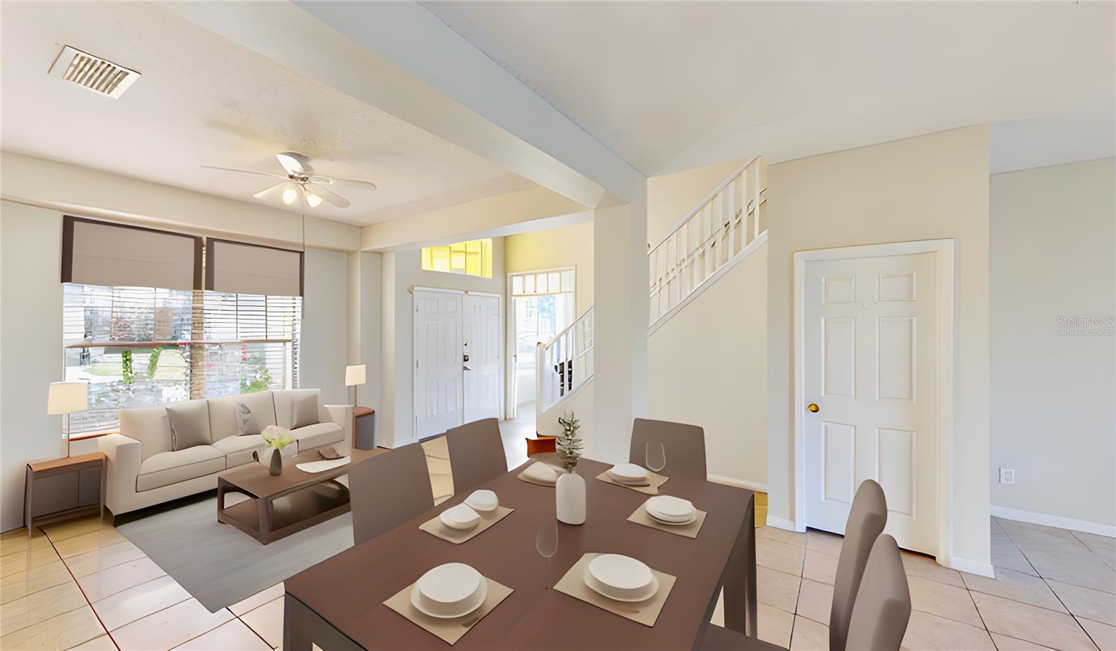 One or more photo(s) has been virtually staged. Seller may consider buyer concessions if made in an offer. Welcome to your vacation dream home, where convenience meets energy efficiency. This immaculate residence, nestled in a guarded gated community, offers a private pool and many amenities that cater to practical living and indulgent relaxation. As you approach the home, the first thing that catches your eye is the sleek and newly painted (Dec 2023) exterior. The vibrant color palette reflects the upbeat ambiance that awaits inside. The fresh paint extends into the closets, ensuring every nook and cranny exudes a sense of newness and cleanliness. One of the gems of this home is the private pool, an oasis of tranquility and fun. Enclosed with a screen to keep pesky insects at bay, the pool area is perfect for lounging, entertaining, or enjoying a refreshing dip. The spacious patio and deck provide plenty of room for outdoor furniture, making it an ideal spot for hosting barbecues or relaxing under the sun. Step inside, and you're greeted by the warmth of all-tile flooring on the first floor, creating a seamless flow throughout the open-concept space. The living and dining rooms, adjacent to the dedicated office with french doors, overlook the family room, kitchen, and dinette, making a sense of connectivity perfect for gatherings or entertaining friends. The ample windows flood the space with natural light, enhancing the inviting atmosphere. The kitchen is a cooking delight, equipped with all the modern appliances to whip up culinary delights. Ample cabinet space ensures an organized and clutter-free environment, and the numerous windows offer picturesque views and infuse the area with a refreshing natural brightness. Convenient access to the garage via the laundry room adds a practical touch to this thoughtfully designed space. The first floor also has a guest suite with an adjoining bath that conveniently opens to the pool area. This thoughtful design ensures guests have easy access to the bathroom without trapping through the entire house. Venture to the second floor, and you'll find brand-new carpeting (Dec 2023) underfoot, providing a plush and comfortable atmosphere. The six additional bedrooms with instant bath access offer ample space for family members or guests. Large windows in every room welcome natural light, creating bright, airy spaces perfect for relaxation. The primary suite is a haven unto itself, offering a backyard view. The spacious and indulgent private bath provides a perfect retreat after a long day. A large walk-in closet adds a touch of luxury, offering ample storage space for your wardrobe. Outside, the private pool beckons with its refreshing waters, surrounded by lush landscaping and ample deck space. Enjoy a morning swim or host a poolside soiree; this outdoor oasis epitomizes relaxation. The community is a haven of security and convenience, with guard-gated access ensuring peace of mind. Excellent amenities within the community provide recreational options for every age and interest. Walt Disney World is just a stone's throw away for those seeking adventure, promising endless entertainment for the whole family. Look no further if you crave the vibrant energy of central Florida's dining and entertainment scene. The home is conveniently located near Highway 192, providing easy access to the finest restaurants and entertainment venues. The town of Celebration is a 10-minute drive away, and the airport is easily accessible via the 417. This home is not just a place to live; it's a lifestyle upgrade.
