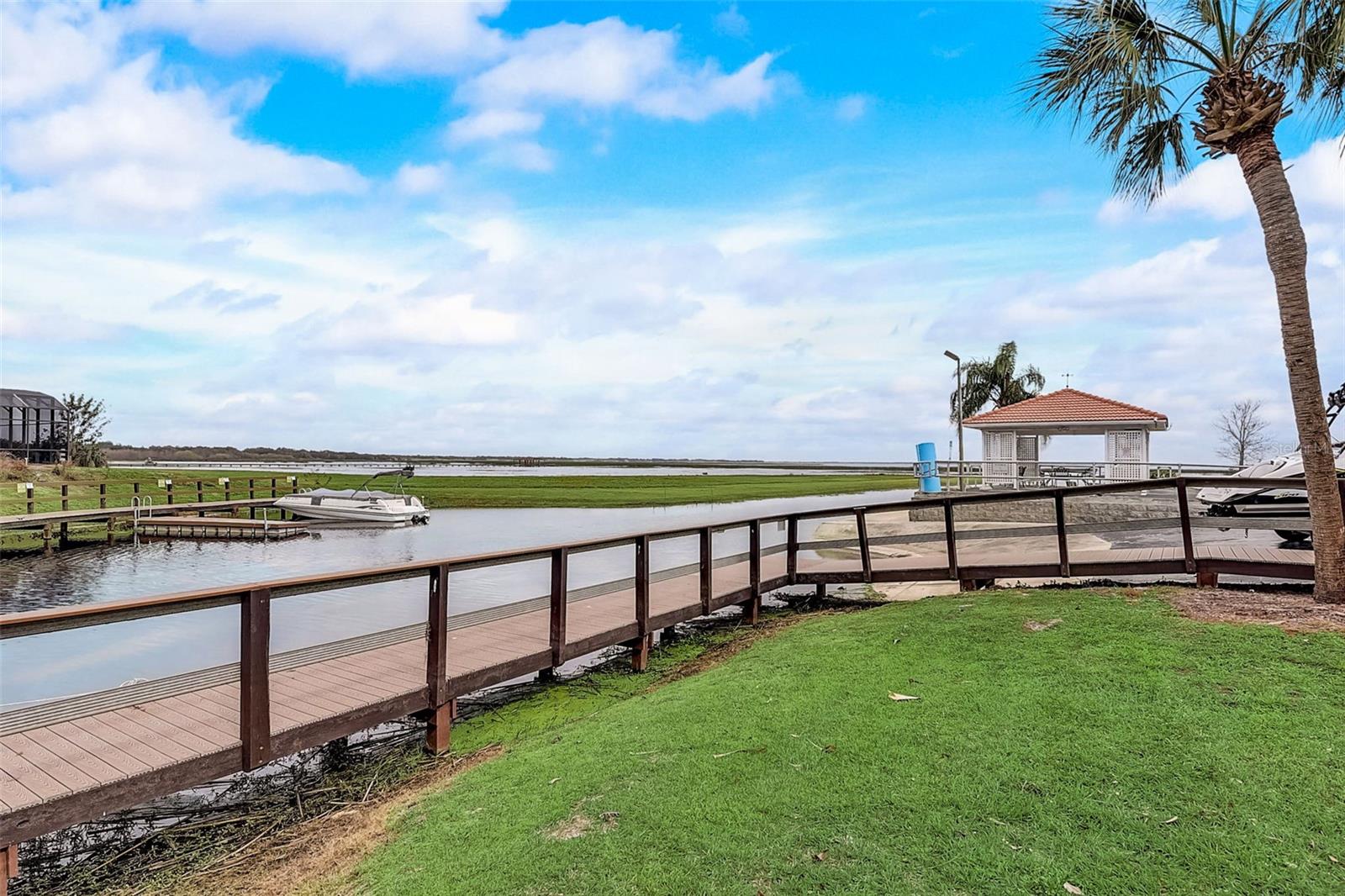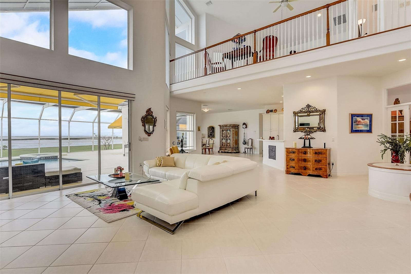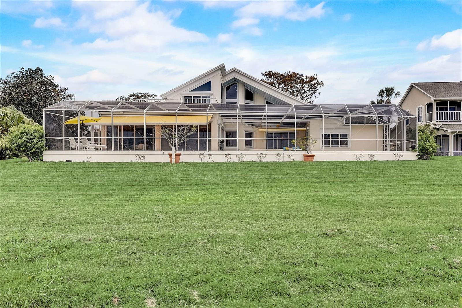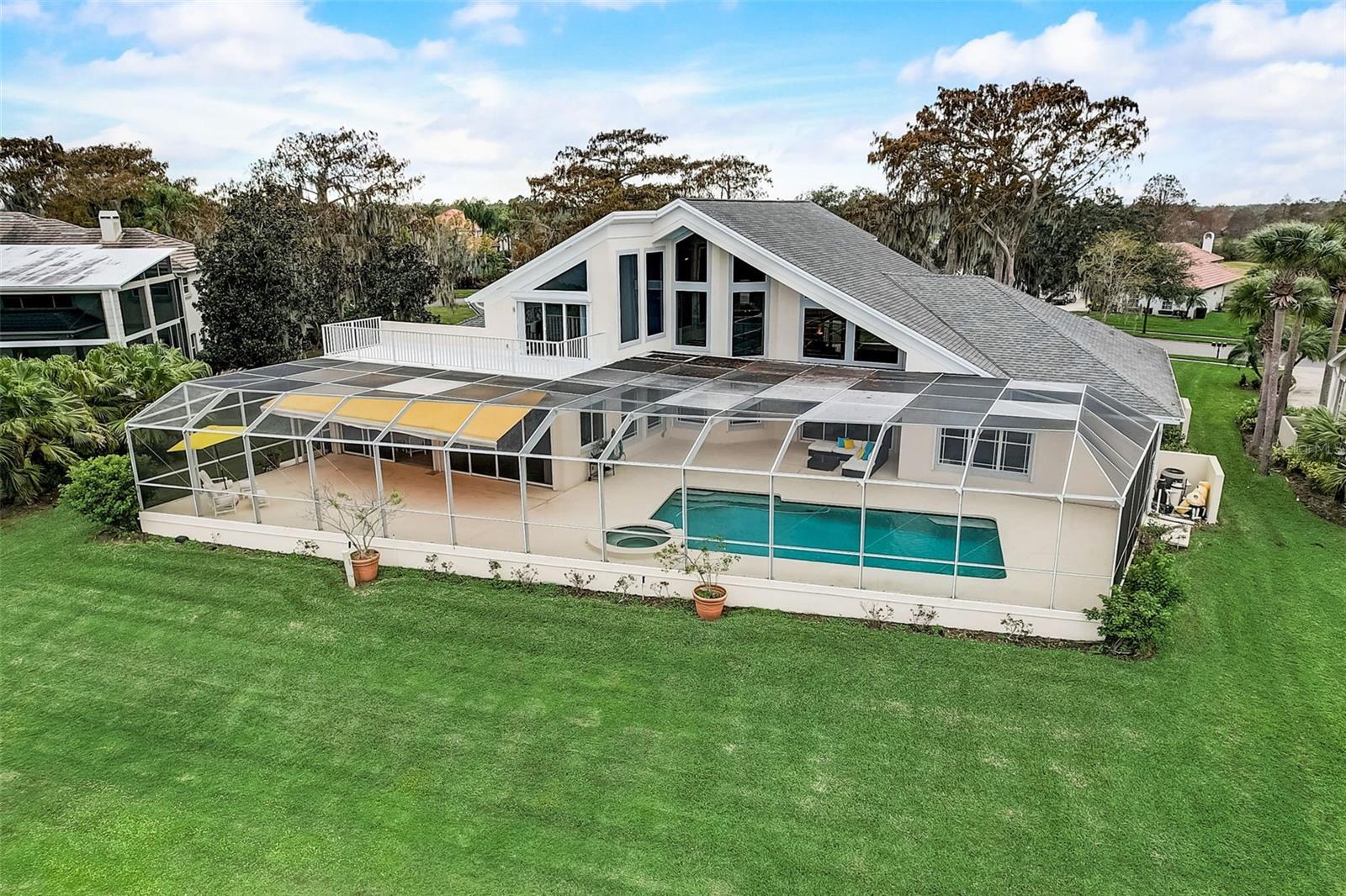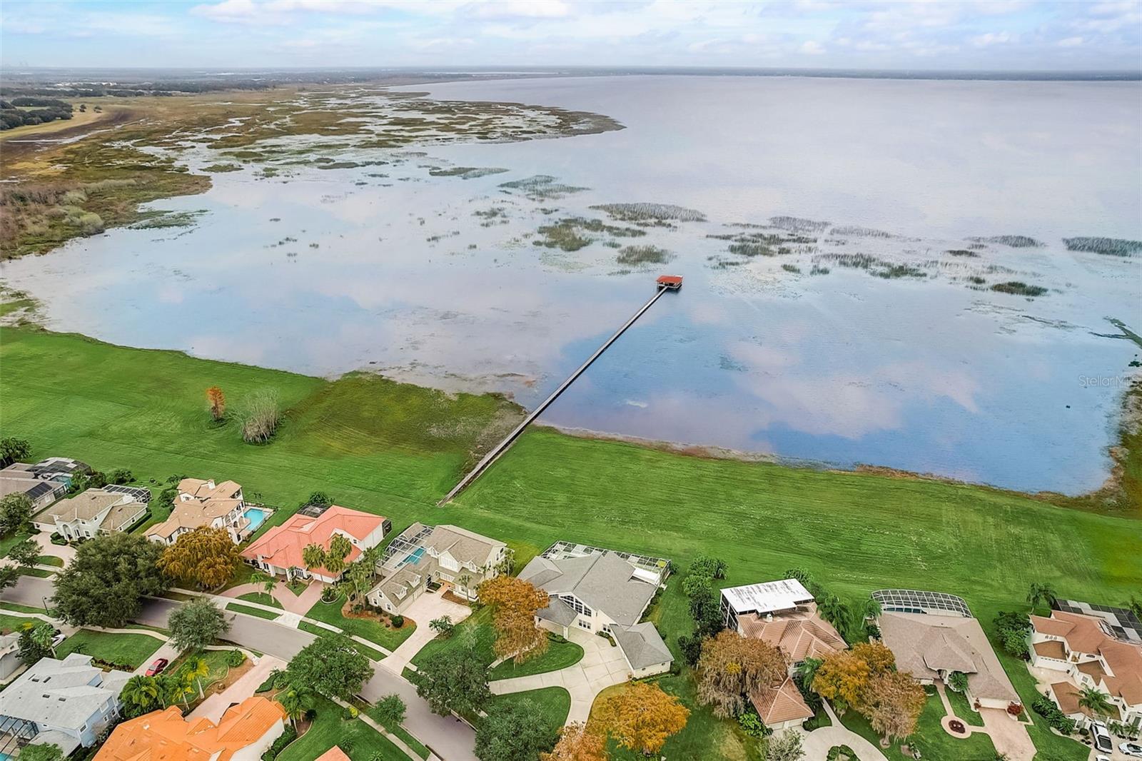 Welcome to luxury living at its finest! Presenting a stunning 5-bedroom designer manor, this contemporary masterpiece boasts over 5,000 square feet of modern elegance situated on a sprawling .73-acre lakefront lot in the highly sought-after gated community of Kissimmee Bay Golf and Country Club. As you approach this majestic residence by its circular driveway, you are greeted by the grand entrance, adorned with a mahogany door, open to reveal a soaring double-height foyer, a neutral color scheme and elegant windows showcasing the lake, mature foliage and breathtaking sunrises. Step inside, and you'll find a seamless open floor plan enhanced with exquisite tile flooring. The modern kitchen features an abundance of storage cabinets and closets. The expansive living spaces include 5 bedrooms, 3.5 bathrooms, 2 offices, as well as living and dining areas, providing versatility for various lifestyle. The allure of this home extends beyond its interiors to the covered enclosed outdoor lanai. Here, you'll discover a summer kitchen equipped with a dishwasher, refrigerator, sink, and a new Synergy wood ceiling – perfect for entertaining guests or enjoying quiet evenings by the pool. The pool area is a haven of relaxation, complemented by views of the bass-filled East Lake Toho. For added convenience and peace of mind, this technologically advanced property features a generator for the complete downstairs, a safe room used as a master closet, and 3 newer air conditioner units. A central vac system, 360 degrees surveillance cameras, electronic remote storm shutters, and 2 electronic lanai awnings contribute to the home's modern amenities. The 3-car side entry garage provides ample space for all your vehicles and showcases tiled flooring along with ceiling to floor built-in cabinets. Kissimmee Bay Golf and Country Club offers resort-style living with a community boat ramp, boat and RV storage, tennis courts, pickleball, basketball, a playground, a golf course, and a clubhouse with a restaurant. Additionally, the location is unbeatable – just minutes away from the Orlando International Airport, Disney World, medical facilities, shopping and dining. This location affords easy access to major highways, including the Florida Turnpike, 417, and the 528. The recent addition of the Brightline train allows seamless connectivity to the best of Florida. Make this exquisite lakefront residence in Kissimmee Bay your new home!