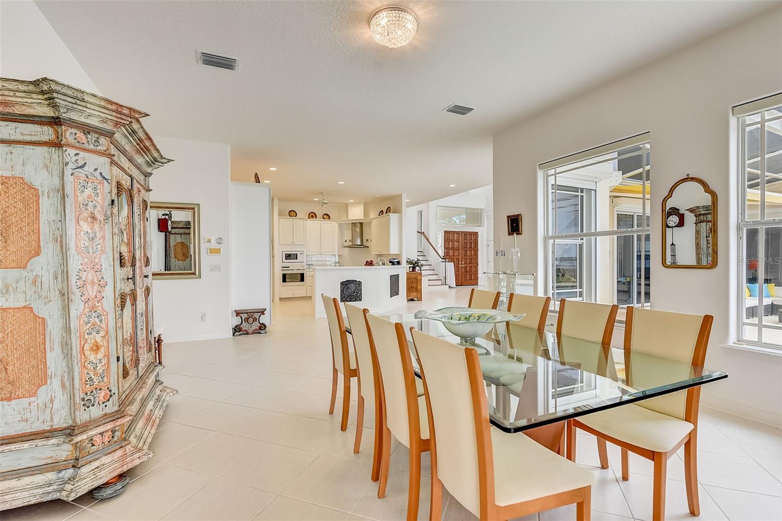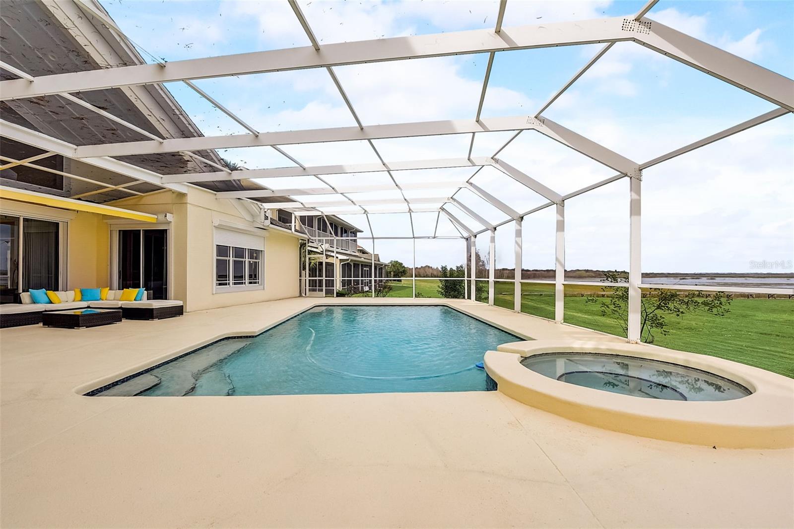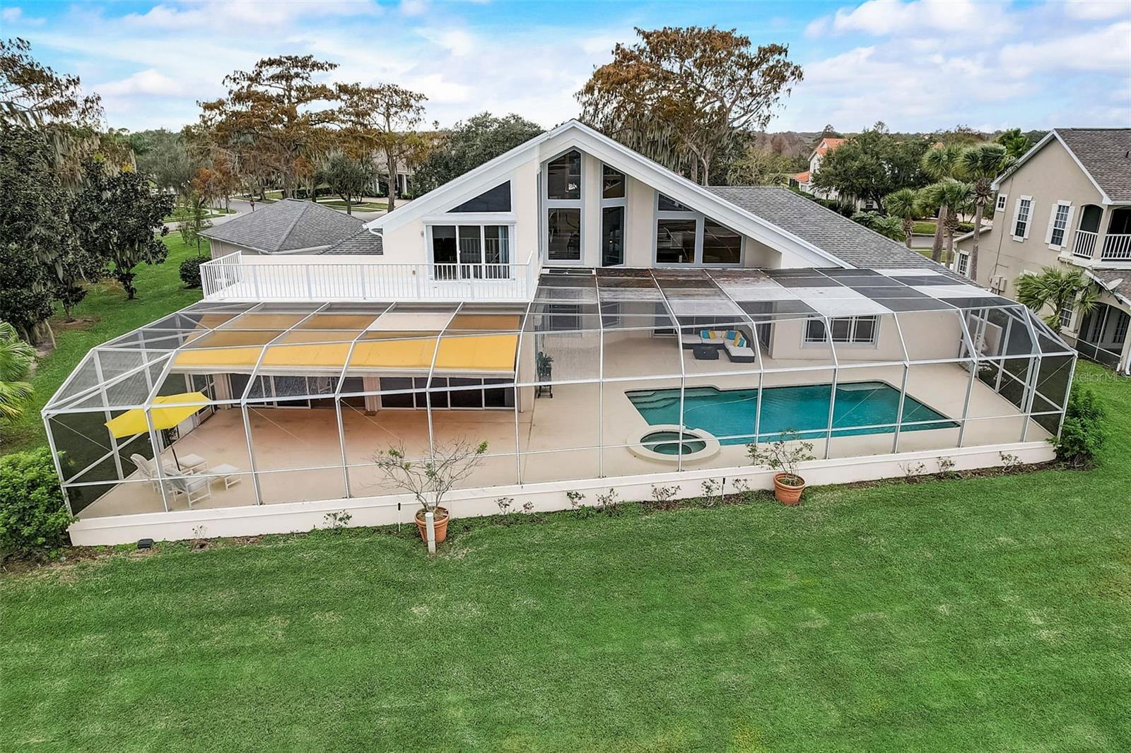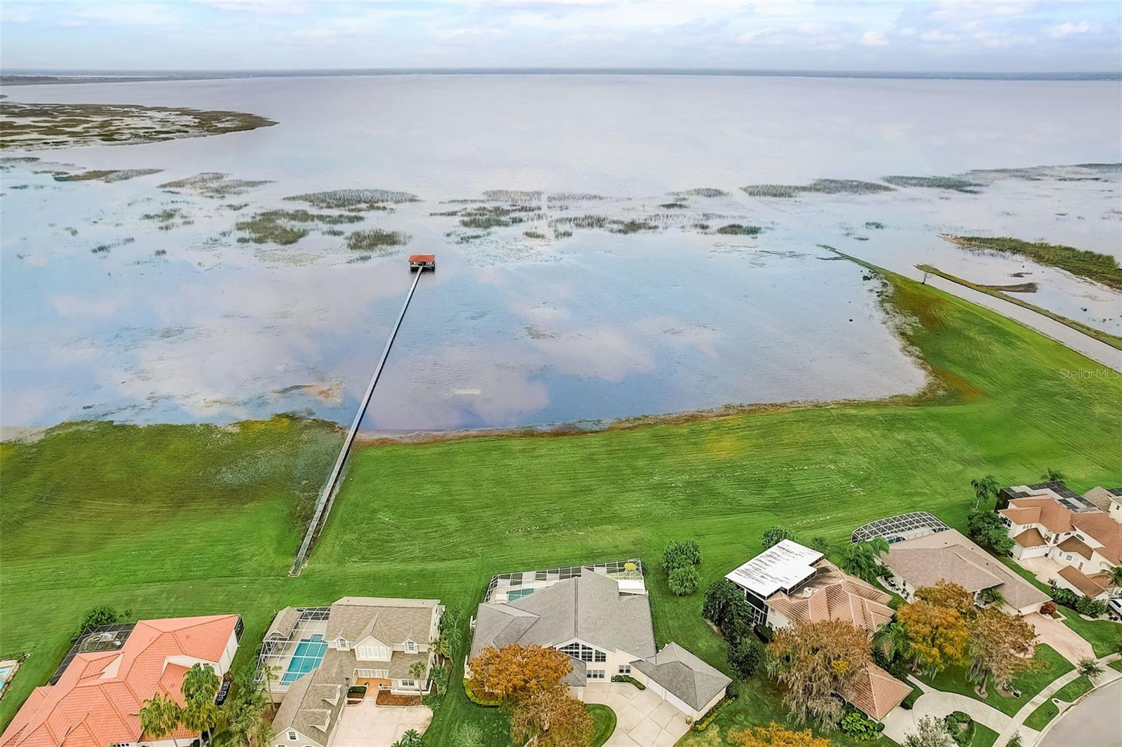 Welcome to luxury living at its finest! Presenting a stunning 5-bedroom designer manor, this contemporary masterpiece boasts over 5,000 square feet of modern elegance situated on a sprawling .73-acre lakefront lot in the highly sought-after gated community of Kissimmee Bay Golf and Country Club. As you approach this majestic residence by its circular driveway, you are greeted by the grand entrance, adorned with a mahogany door, open to reveal a soaring double-height foyer, a neutral color scheme and elegant windows showcasing the lake, mature foliage and breathtaking sunrises. Step inside, and you'll find a seamless open floor plan enhanced with exquisite tile flooring. The modern kitchen features an abundance of storage cabinets and closets. The expansive living spaces include 5 bedrooms, 3.5 bathrooms, 2 offices, as well as living and dining areas, providing versatility for various lifestyle. The allure of this home extends beyond its interiors to the covered enclosed outdoor lanai. Here, you'll discover a summer kitchen equipped with a dishwasher, refrigerator, sink, and a new Synergy wood ceiling – perfect for entertaining guests or enjoying quiet evenings by the pool. The pool area is a haven of relaxation, complemented by views of the bass-filled East Lake Toho. For added convenience and peace of mind, this technologically advanced property features a generator for the complete downstairs, a safe room used as a master closet, and 3 newer air conditioner units. A central vac system, 360 degrees surveillance cameras, electronic remote storm shutters, and 2 electronic lanai awnings contribute to the home's modern amenities. The 3-car side entry garage provides ample space for all your vehicles and showcases tiled flooring along with ceiling to floor built-in cabinets. Kissimmee Bay Golf and Country Club offers resort-style living with a community boat ramp, boat and RV storage, tennis courts, pickleball, basketball, a playground, a golf course, and a clubhouse with a restaurant. Additionally, the location is unbeatable – just minutes away from the Orlando International Airport, Disney World, medical facilities, shopping and dining. This location affords easy access to major highways, including the Florida Turnpike, 417, and the 528. The recent addition of the Brightline train allows seamless connectivity to the best of Florida. Make this exquisite lakefront residence in Kissimmee Bay your new home!
