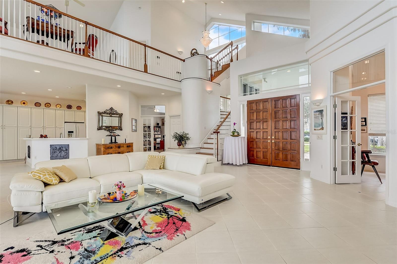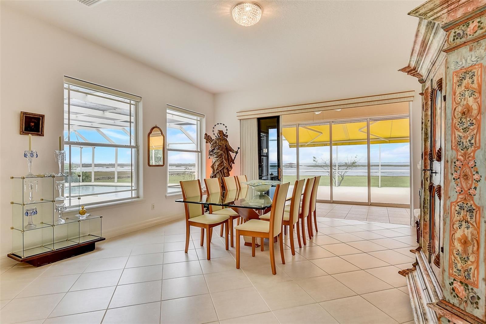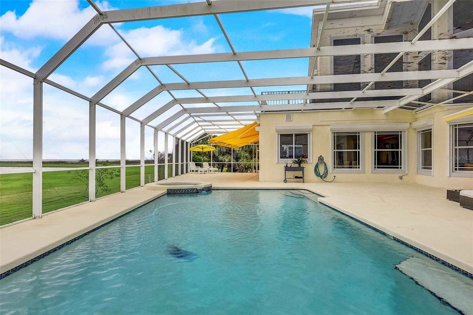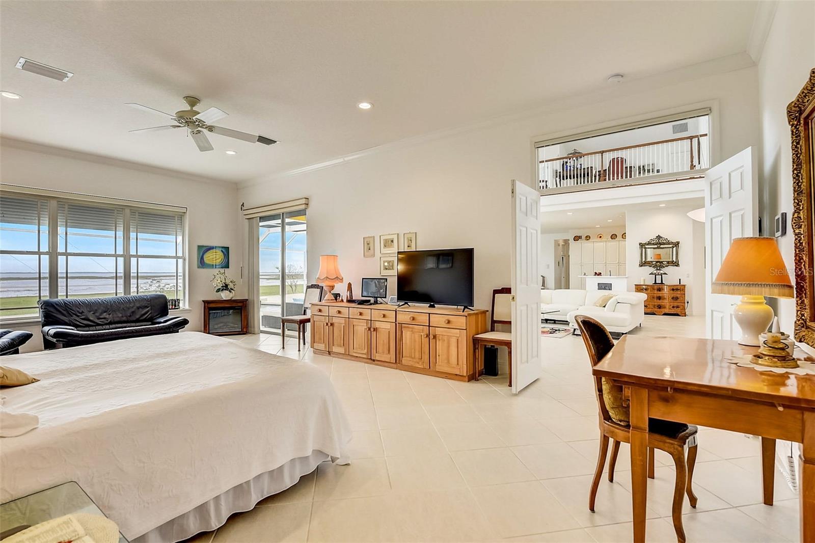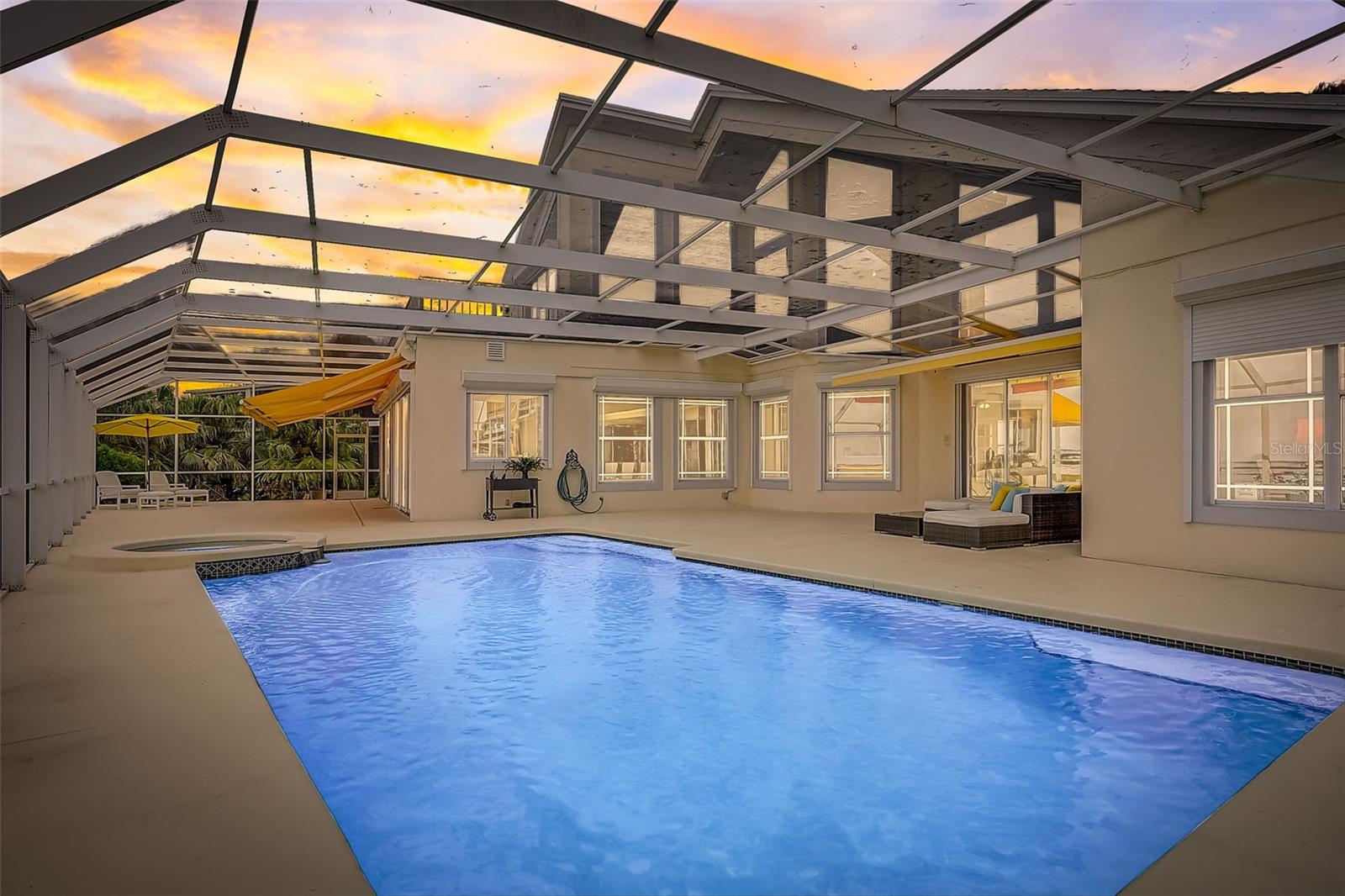 Welcome to luxury living at its finest! Presenting a stunning 5-bedroom designer manor, this contemporary masterpiece boasts over 5,000 square feet of modern elegance situated on a sprawling .73-acre lakefront lot in the highly sought-after gated community of Kissimmee Bay Golf and Country Club. As you approach this majestic residence by its circular driveway, you are greeted by the grand entrance, adorned with a mahogany door, open to reveal a soaring double-height foyer, a neutral color scheme and elegant windows showcasing the lake, mature foliage and breathtaking sunrises. Step inside, and you'll find a seamless open floor plan enhanced with exquisite tile flooring. The modern kitchen features an abundance of storage cabinets and closets. The expansive living spaces include 5 bedrooms, 3.5 bathrooms, 2 offices, as well as living and dining areas, providing versatility for various lifestyle. The allure of this home extends beyond its interiors to the covered enclosed outdoor lanai. Here, you'll discover a summer kitchen equipped with a dishwasher, refrigerator, sink, and a new Synergy wood ceiling – perfect for entertaining guests or enjoying quiet evenings by the pool. The pool area is a haven of relaxation, complemented by views of the bass-filled East Lake Toho. For added convenience and peace of mind, this technologically advanced property features a generator for the complete downstairs, a safe room used as a master closet, and 3 newer air conditioner units. A central vac system, 360 degrees surveillance cameras, electronic remote storm shutters, and 2 electronic lanai awnings contribute to the home's modern amenities. The 3-car side entry garage provides ample space for all your vehicles and showcases tiled flooring along with ceiling to floor built-in cabinets. Kissimmee Bay Golf and Country Club offers resort-style living with a community boat ramp, boat and RV storage, tennis courts, pickleball, basketball, a playground, a golf course, and a clubhouse with a restaurant. Additionally, the location is unbeatable – just minutes away from the Orlando International Airport, Disney World, medical facilities, shopping and dining. This location affords easy access to major highways, including the Florida Turnpike, 417, and the 528. The recent addition of the Brightline train allows seamless connectivity to the best of Florida. Make this exquisite lakefront residence in Kissimmee Bay your new home!