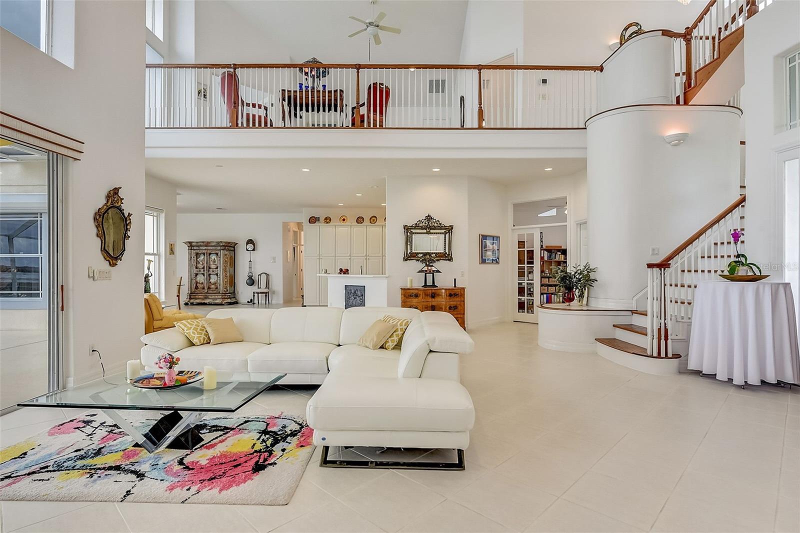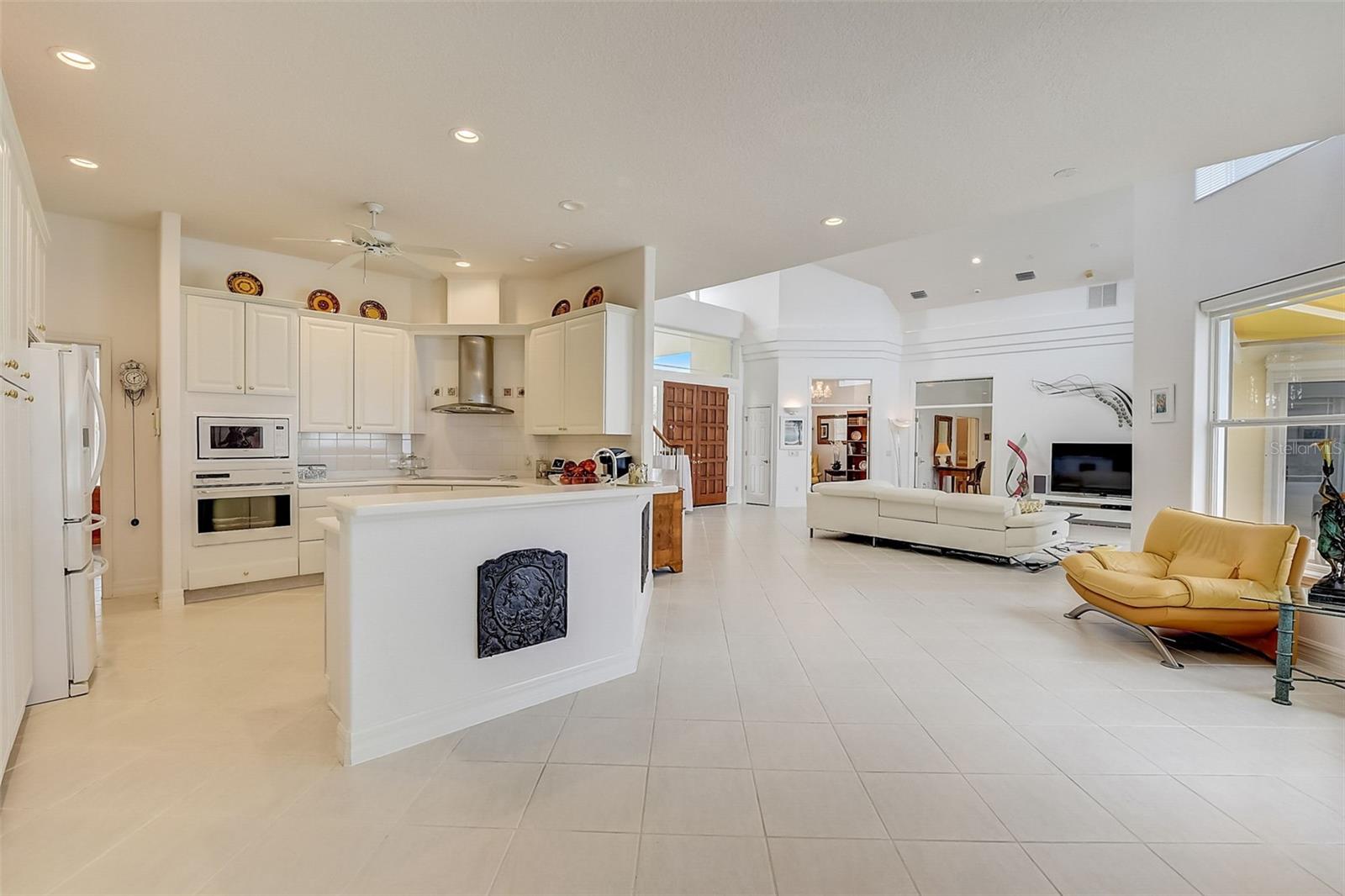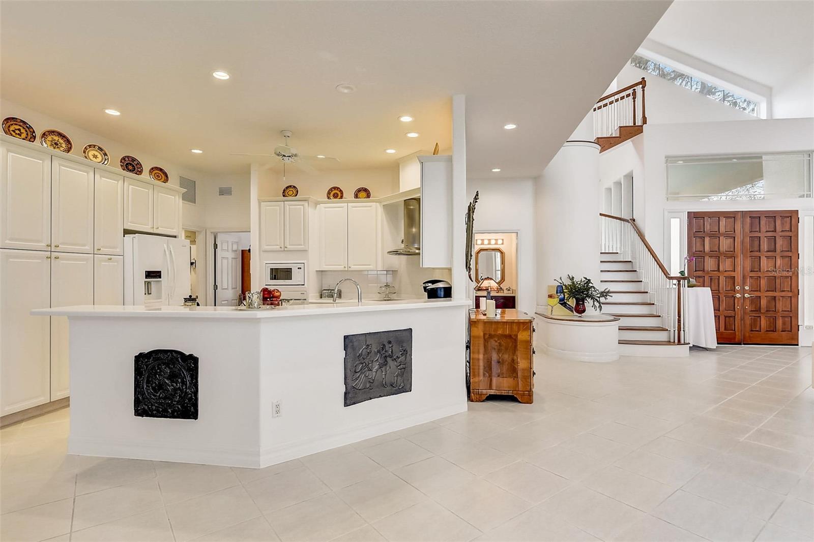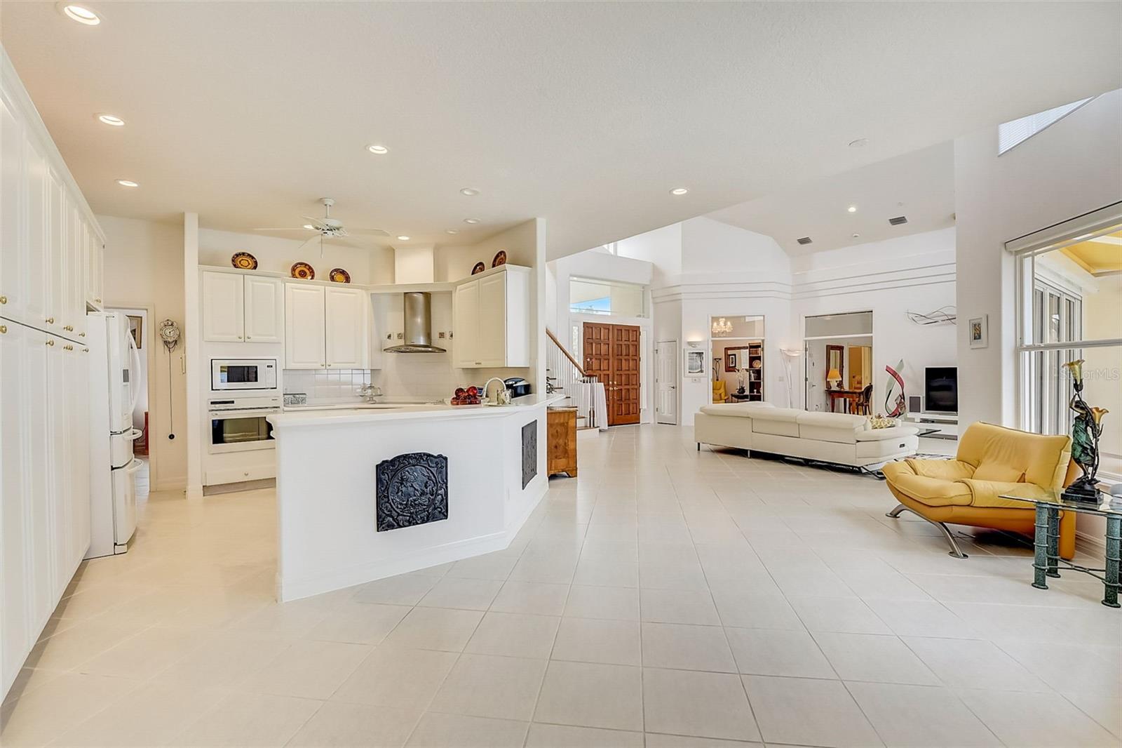 Welcome to luxury living at its finest! Presenting a stunning 5-bedroom designer manor, this contemporary masterpiece boasts over 5,000 square feet of modern elegance situated on a sprawling .73-acre lakefront lot in the highly sought-after gated community of Kissimmee Bay Golf and Country Club. As you approach this majestic residence by its circular driveway, you are greeted by the grand entrance, adorned with a mahogany door, open to reveal a soaring double-height foyer, a neutral color scheme and elegant windows showcasing the lake, mature foliage and breathtaking sunrises. Step inside, and you'll find a seamless open floor plan enhanced with exquisite tile flooring. The modern kitchen features an abundance of storage cabinets and closets. The expansive living spaces include 5 bedrooms, 3.5 bathrooms, 2 offices, as well as living and dining areas, providing versatility for various lifestyle. The allure of this home extends beyond its interiors to the covered enclosed outdoor lanai. Here, you'll discover a summer kitchen equipped with a dishwasher, refrigerator, sink, and a new Synergy wood ceiling – perfect for entertaining guests or enjoying quiet evenings by the pool. The pool area is a haven of relaxation, complemented by views of the bass-filled East Lake Toho. For added convenience and peace of mind, this technologically advanced property features a generator for the complete downstairs, a safe room used as a master closet, and 3 newer air conditioner units. A central vac system, 360 degrees surveillance cameras, electronic remote storm shutters, and 2 electronic lanai awnings contribute to the home's modern amenities. The 3-car side entry garage provides ample space for all your vehicles and showcases tiled flooring along with ceiling to floor built-in cabinets. Kissimmee Bay Golf and Country Club offers resort-style living with a community boat ramp, boat and RV storage, tennis courts, pickleball, basketball, a playground, a golf course, and a clubhouse with a restaurant. Additionally, the location is unbeatable – just minutes away from the Orlando International Airport, Disney World, medical facilities, shopping and dining. This location affords easy access to major highways, including the Florida Turnpike, 417, and the 528. The recent addition of the Brightline train allows seamless connectivity to the best of Florida. Make this exquisite lakefront residence in Kissimmee Bay your new home!