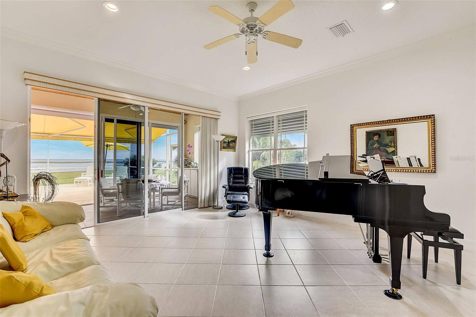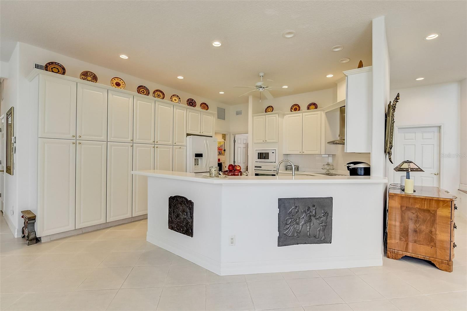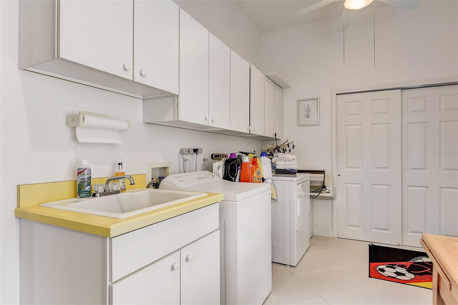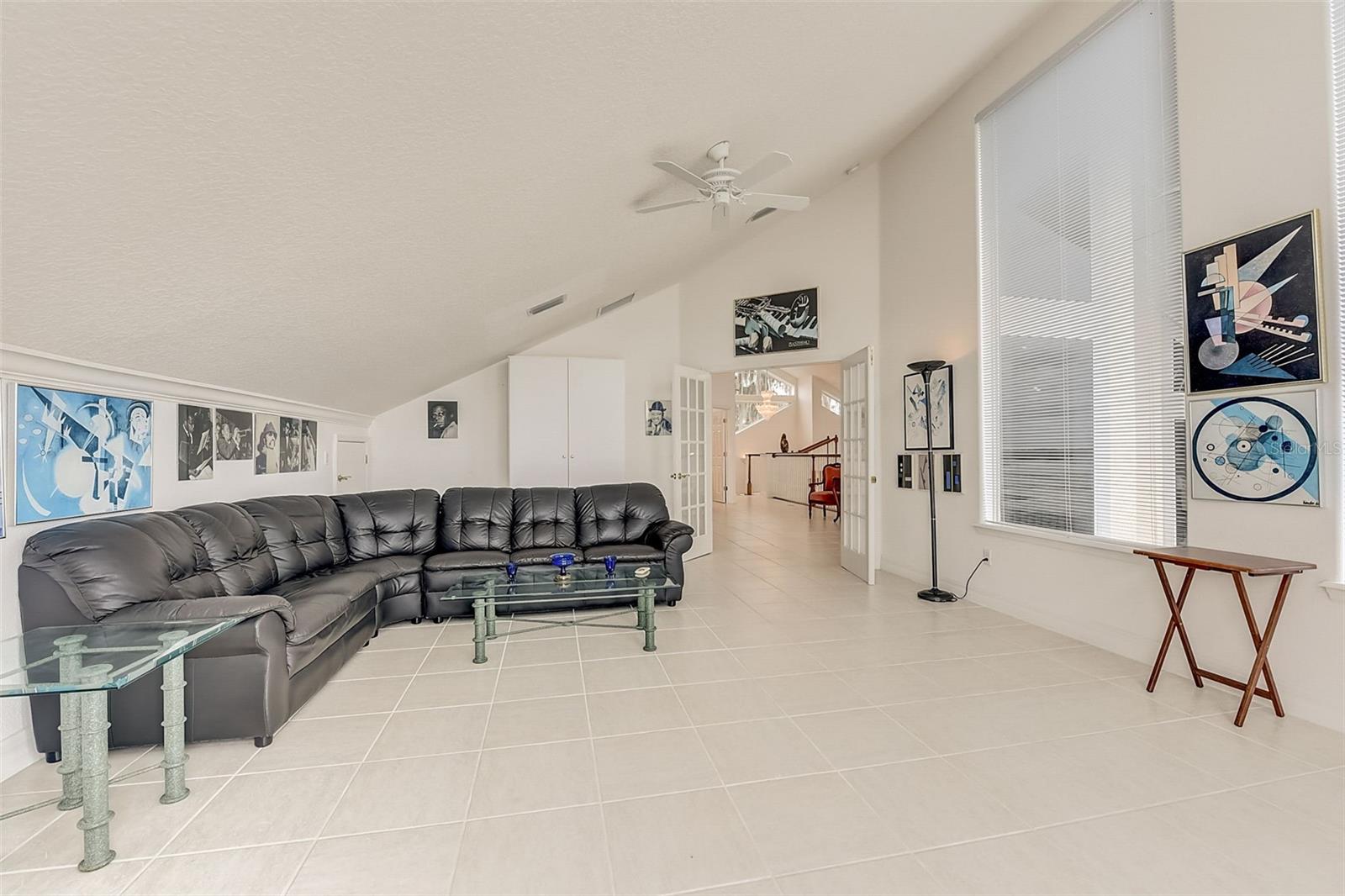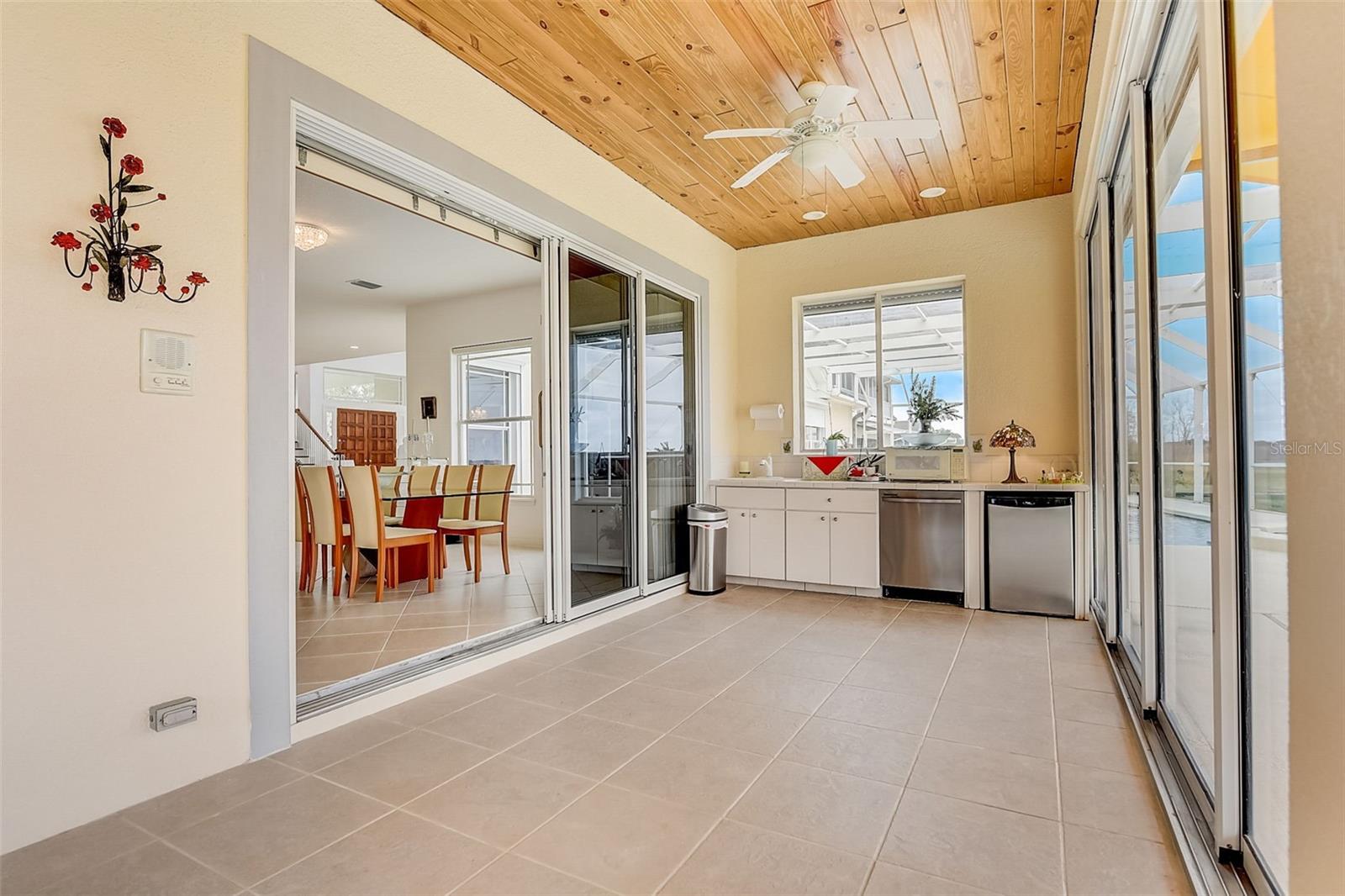 Welcome to luxury living at its finest! Presenting a stunning 5-bedroom designer manor, this contemporary masterpiece boasts over 5,000 square feet of modern elegance situated on a sprawling .73-acre lakefront lot in the highly sought-after gated community of Kissimmee Bay Golf and Country Club. As you approach this majestic residence by its circular driveway, you are greeted by the grand entrance, adorned with a mahogany door, open to reveal a soaring double-height foyer, a neutral color scheme and elegant windows showcasing the lake, mature foliage and breathtaking sunrises. Step inside, and you'll find a seamless open floor plan enhanced with exquisite tile flooring. The modern kitchen features an abundance of storage cabinets and closets. The expansive living spaces include 5 bedrooms, 3.5 bathrooms, 2 offices, as well as living and dining areas, providing versatility for various lifestyle. The allure of this home extends beyond its interiors to the covered enclosed outdoor lanai. Here, you'll discover a summer kitchen equipped with a dishwasher, refrigerator, sink, and a new Synergy wood ceiling – perfect for entertaining guests or enjoying quiet evenings by the pool. The pool area is a haven of relaxation, complemented by views of the bass-filled East Lake Toho. For added convenience and peace of mind, this technologically advanced property features a generator for the complete downstairs, a safe room used as a master closet, and 3 newer air conditioner units. A central vac system, 360 degrees surveillance cameras, electronic remote storm shutters, and 2 electronic lanai awnings contribute to the home's modern amenities. The 3-car side entry garage provides ample space for all your vehicles and showcases tiled flooring along with ceiling to floor built-in cabinets. Kissimmee Bay Golf and Country Club offers resort-style living with a community boat ramp, boat and RV storage, tennis courts, pickleball, basketball, a playground, a golf course, and a clubhouse with a restaurant. Additionally, the location is unbeatable – just minutes away from the Orlando International Airport, Disney World, medical facilities, shopping and dining. This location affords easy access to major highways, including the Florida Turnpike, 417, and the 528. The recent addition of the Brightline train allows seamless connectivity to the best of Florida. Make this exquisite lakefront residence in Kissimmee Bay your new home!