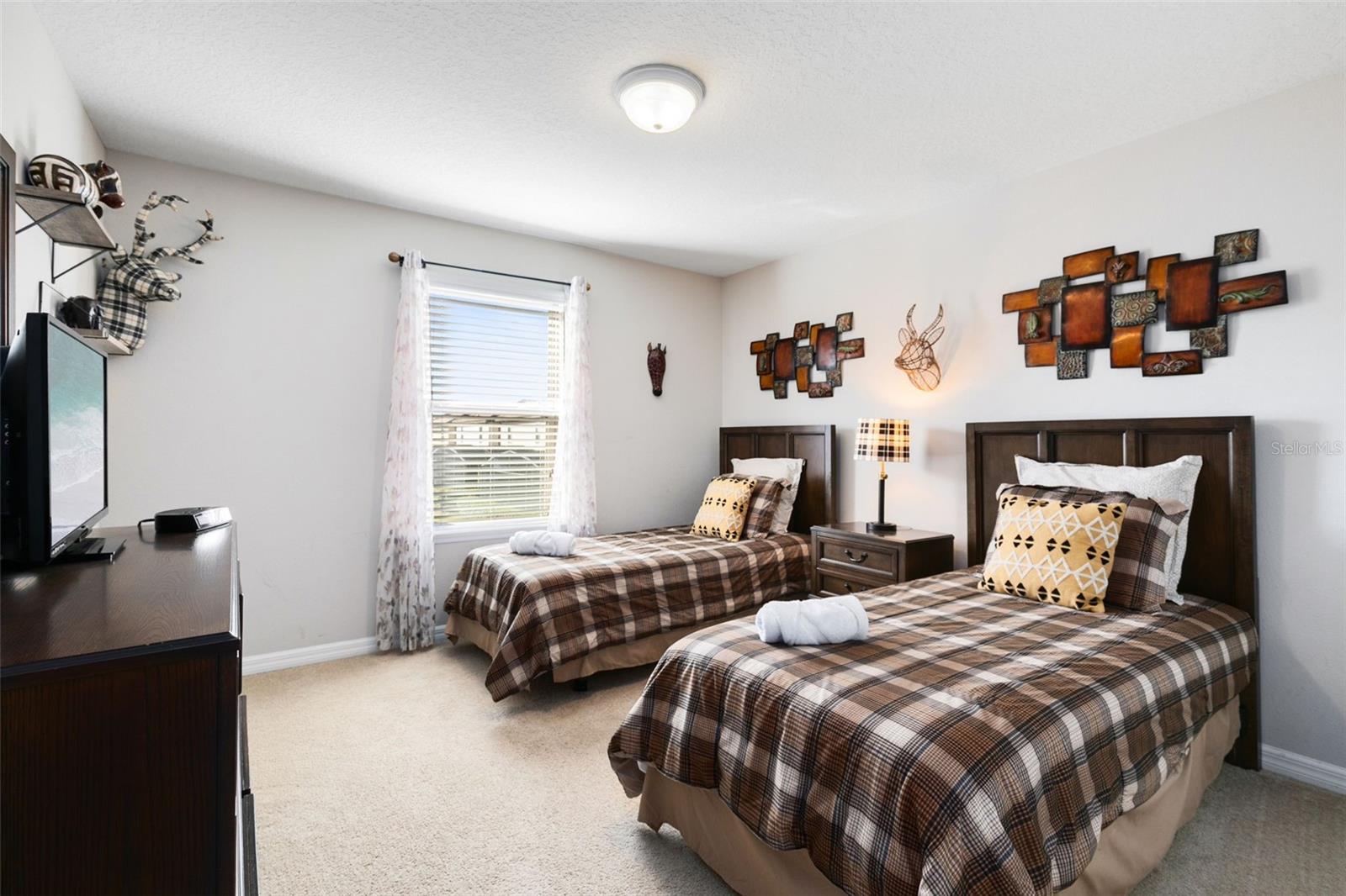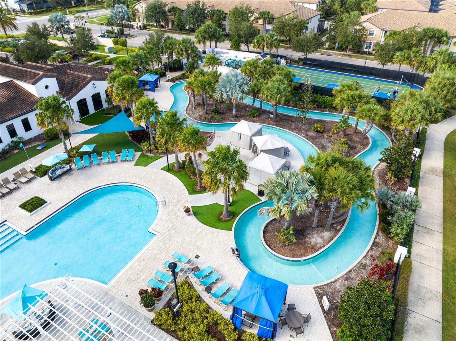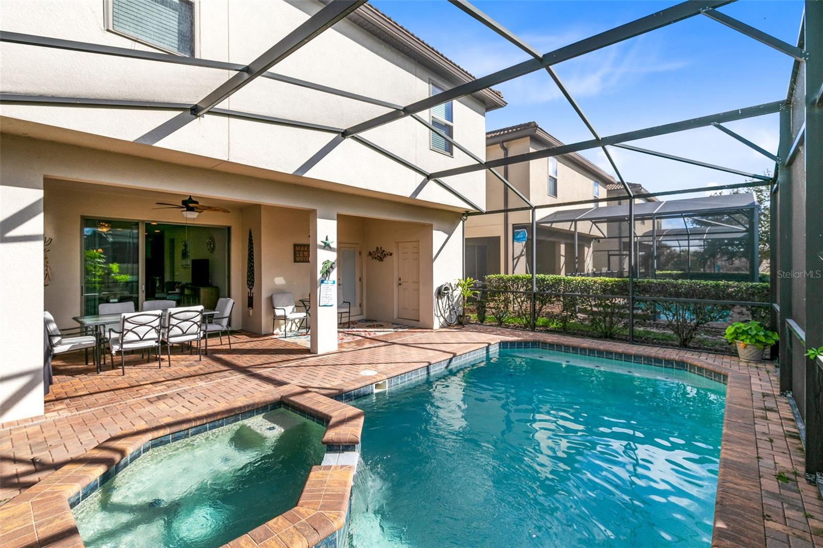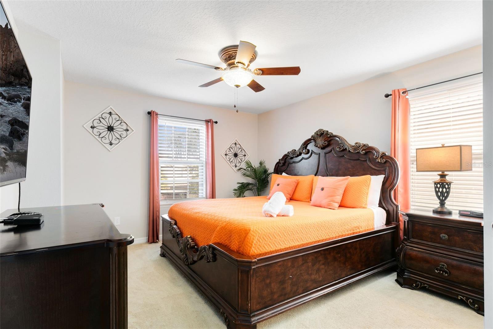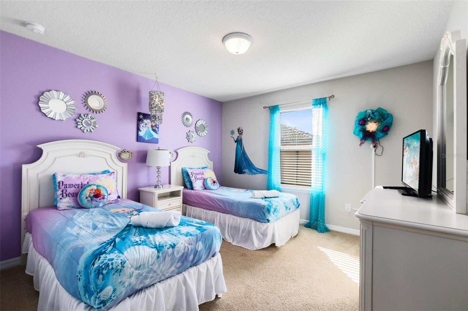 Excellent value - fantastic vacation rental property in the guard-gated Windsor at Westside Resort with future rentals already in place for immediate revenue. This fully furnished and well-maintained turnkey house has a great floor plan and everything needed for the perfect vacation. First, it can accommodate up to fourteen in comfort and privacy offering three primary suites (one on the ground floor), three additional color-themed bedrooms and a Frozen-themed bedroom for the little ones. There is plenty of interior space for entertaining and relaxing - the kitchen with large island that opens into the spacious living area, the second-floor movie loft and gaming area and the fun games room in the garage – lots of room to spread out. Moving outside, the enjoyment continues in the well-sized pool and soothing spa fully screened for day or evening activities and with a covered dining area and outdoor grill for those famous Florida cookouts. Finally the house is perfectly situated very close to the resort’s clubhouse and amenity center offering a zero-entry heated resort pool and spa, poolside cabanas, lazy river, splash pad with waterslides, tennis/volleyball courts, playground, poolside restaurant and lounge with a fireplace seating area, arcade, and fitness center. All of this is just minutes away and an easy drive to the Walt Disney World® Resort entrance and a short drive to all of the world-famous Central Florida attractions. This house really is the complete package that will assure years of vacation enjoyment for you as well as for a continued stream of rental guests.