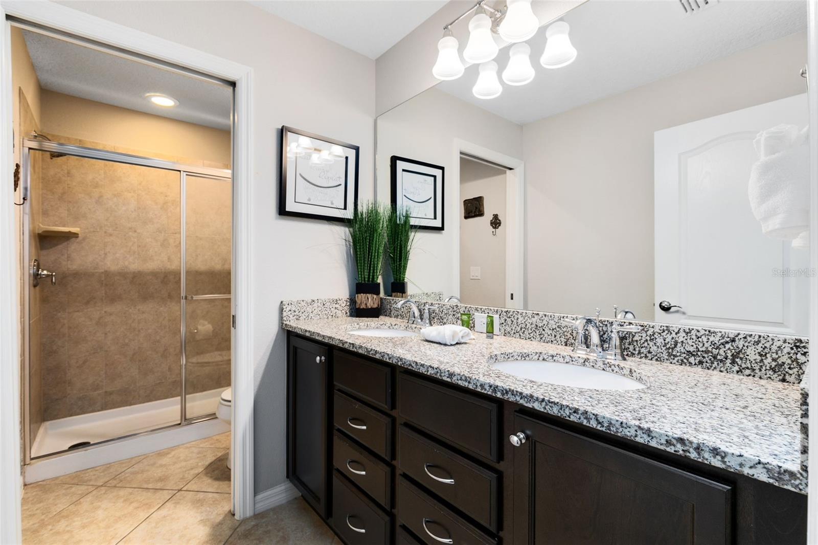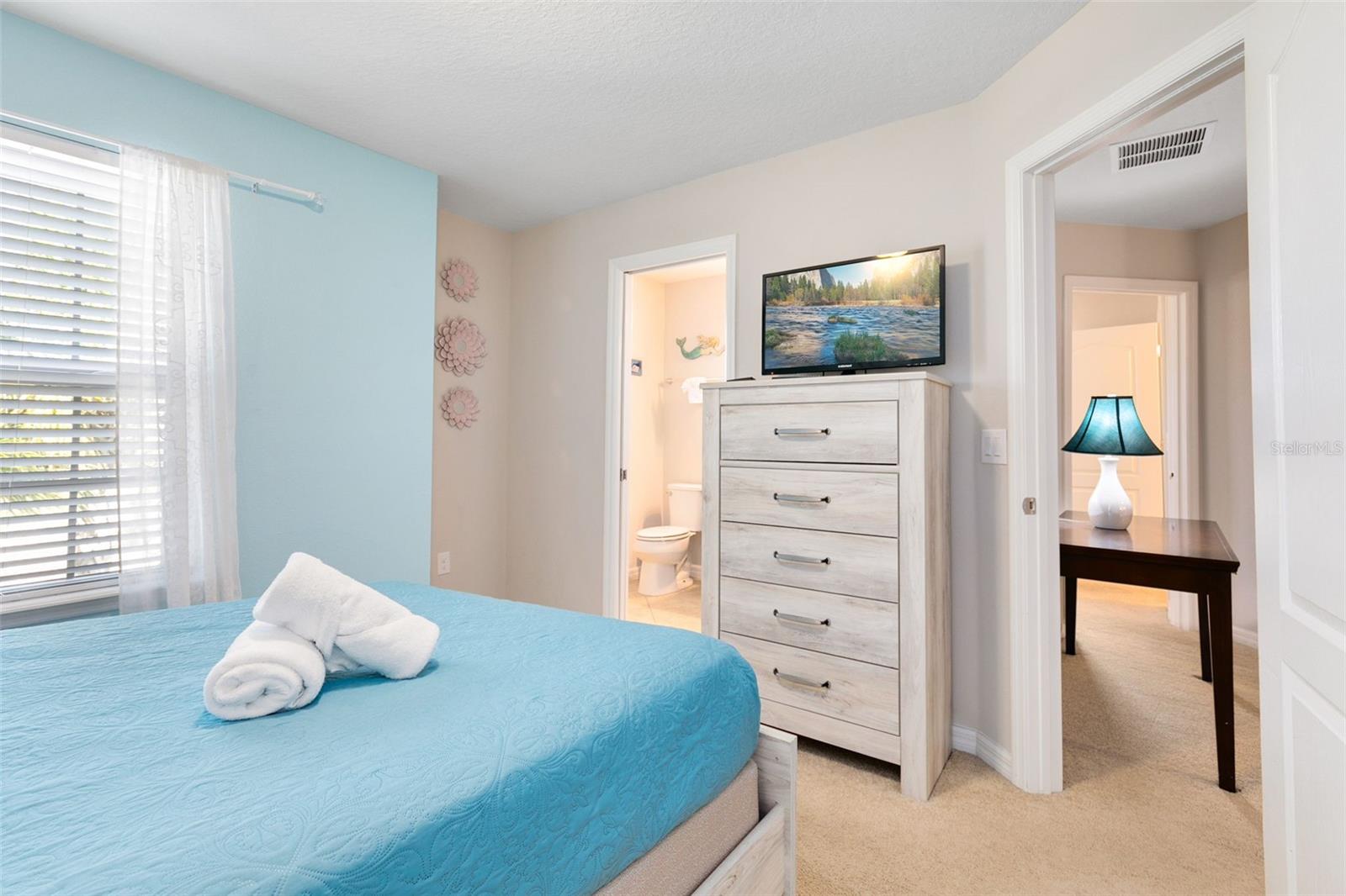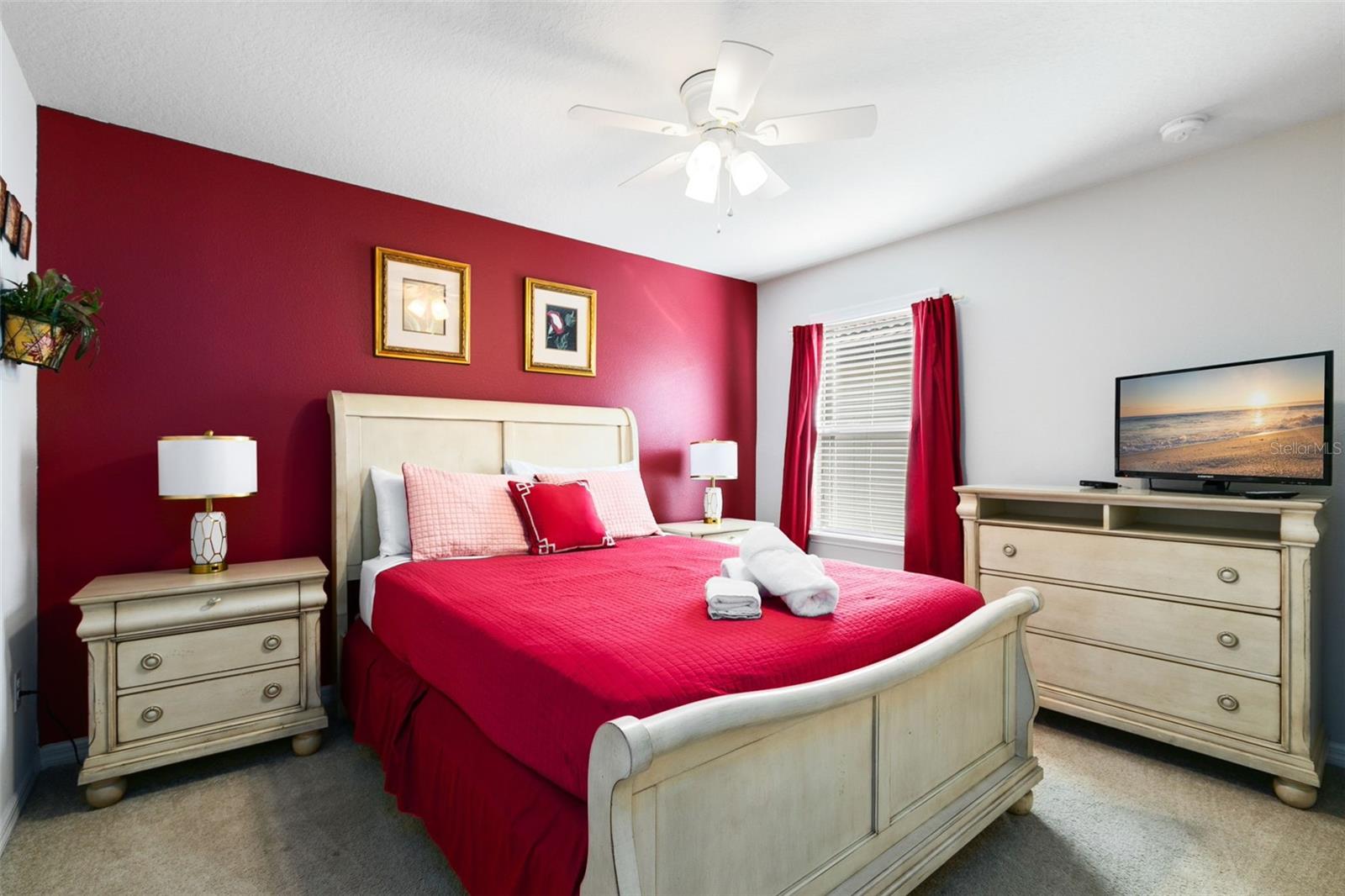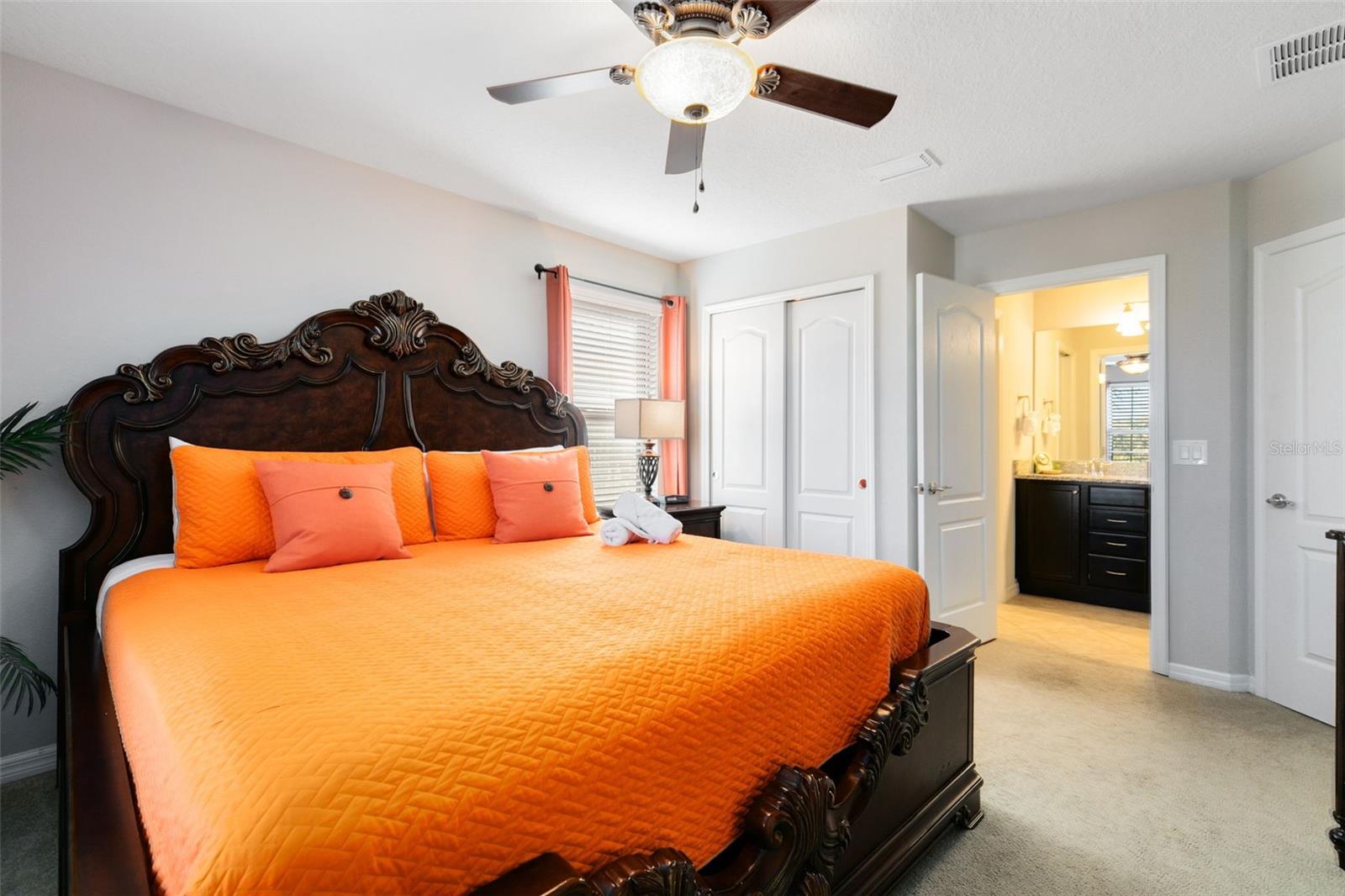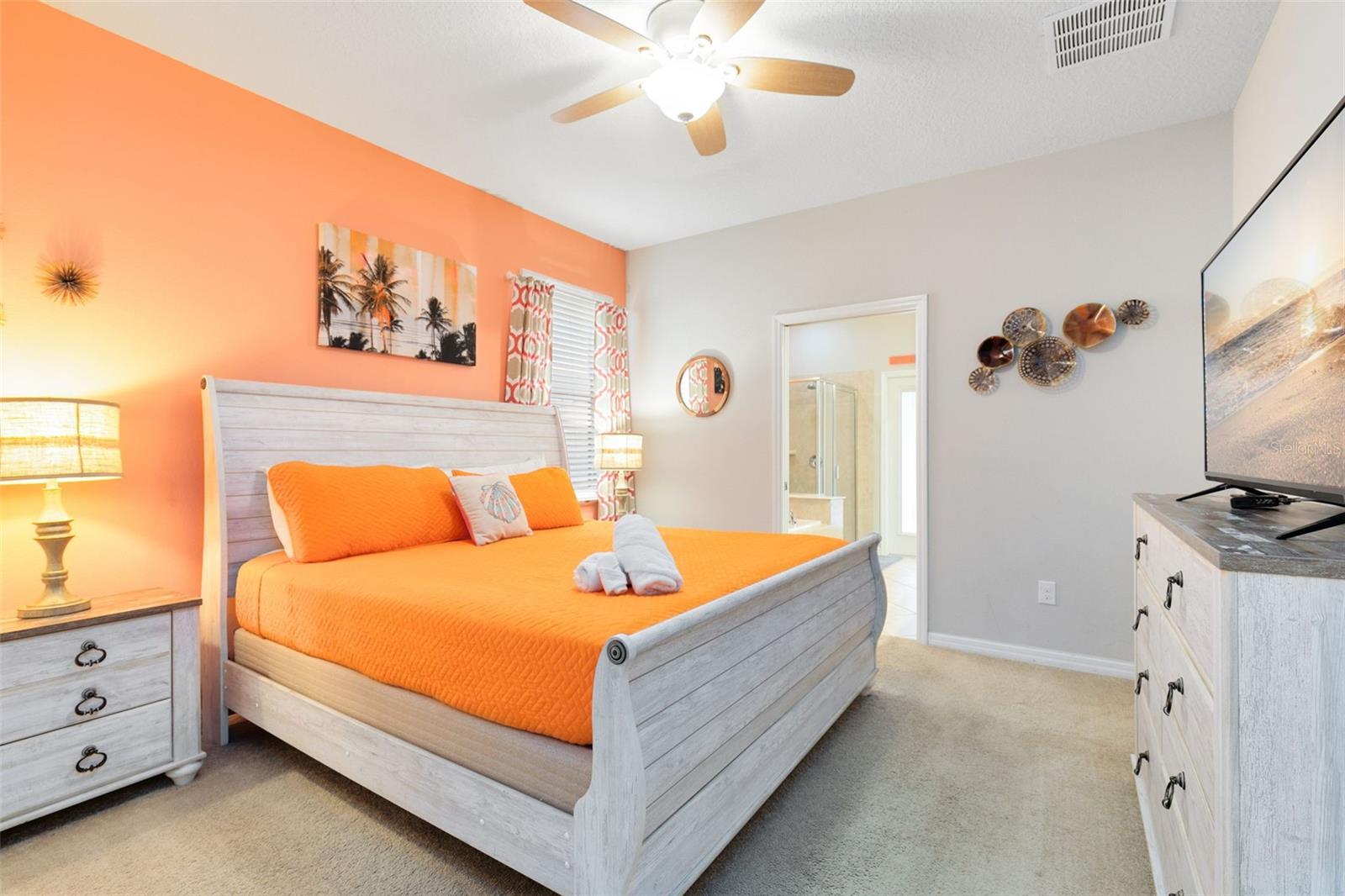 Excellent value - fantastic vacation rental property in the guard-gated Windsor at Westside Resort with future rentals already in place for immediate revenue. This fully furnished and well-maintained turnkey house has a great floor plan and everything needed for the perfect vacation. First, it can accommodate up to fourteen in comfort and privacy offering three primary suites (one on the ground floor), three additional color-themed bedrooms and a Frozen-themed bedroom for the little ones. There is plenty of interior space for entertaining and relaxing - the kitchen with large island that opens into the spacious living area, the second-floor movie loft and gaming area and the fun games room in the garage – lots of room to spread out. Moving outside, the enjoyment continues in the well-sized pool and soothing spa fully screened for day or evening activities and with a covered dining area and outdoor grill for those famous Florida cookouts. Finally the house is perfectly situated very close to the resort’s clubhouse and amenity center offering a zero-entry heated resort pool and spa, poolside cabanas, lazy river, splash pad with waterslides, tennis/volleyball courts, playground, poolside restaurant and lounge with a fireplace seating area, arcade, and fitness center. All of this is just minutes away and an easy drive to the Walt Disney World® Resort entrance and a short drive to all of the world-famous Central Florida attractions. This house really is the complete package that will assure years of vacation enjoyment for you as well as for a continued stream of rental guests.
