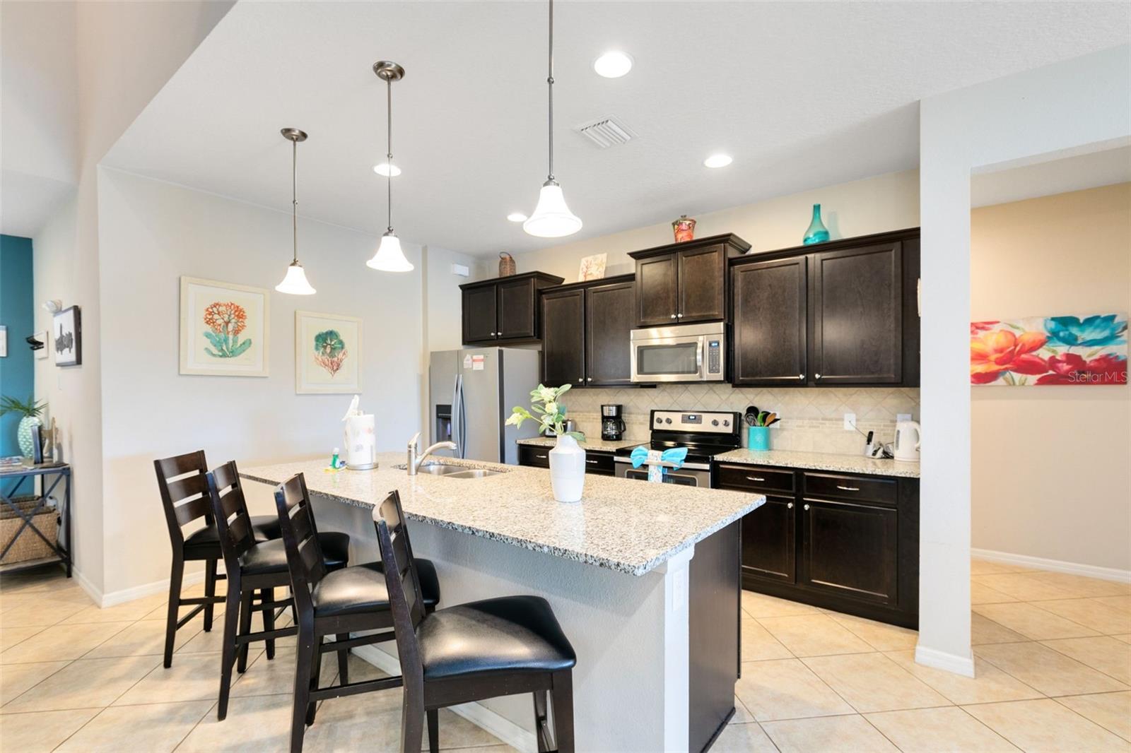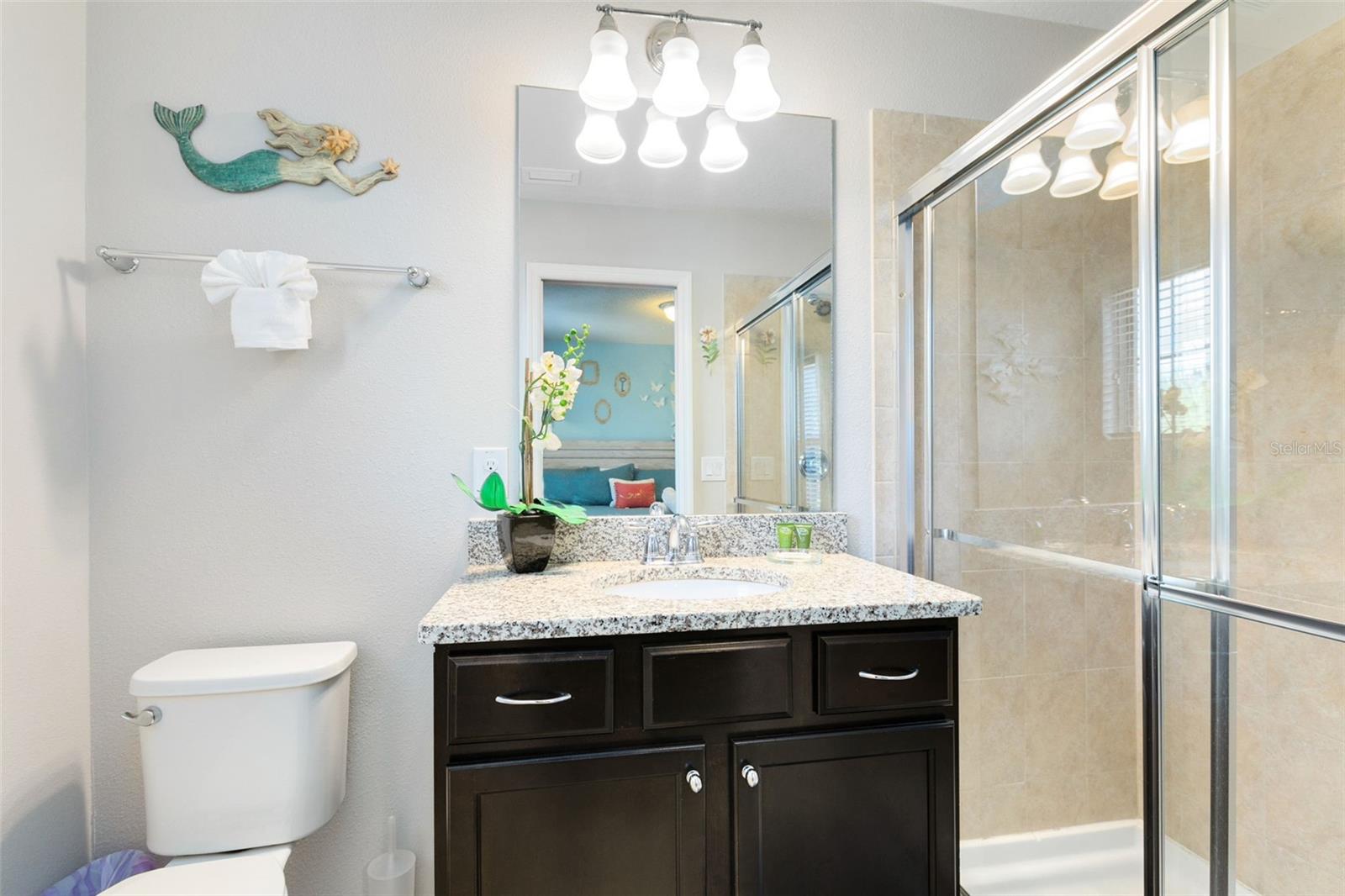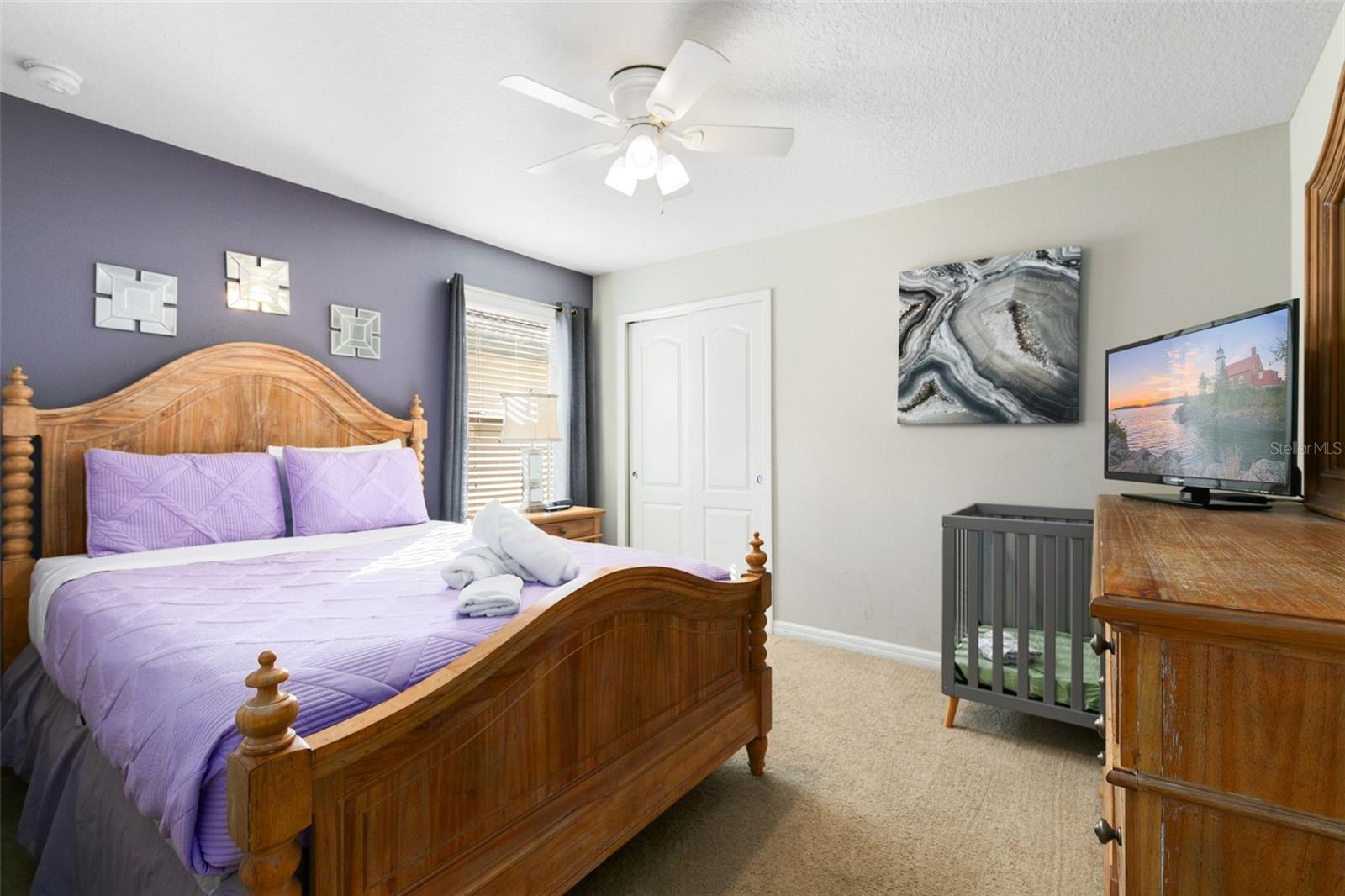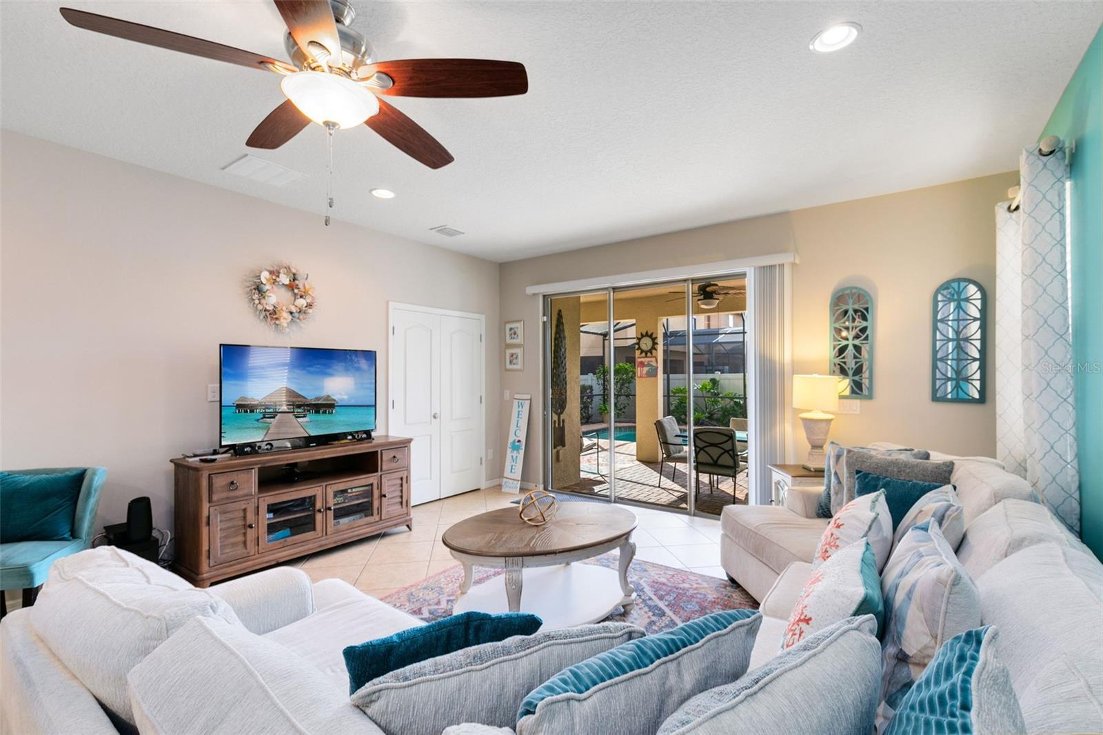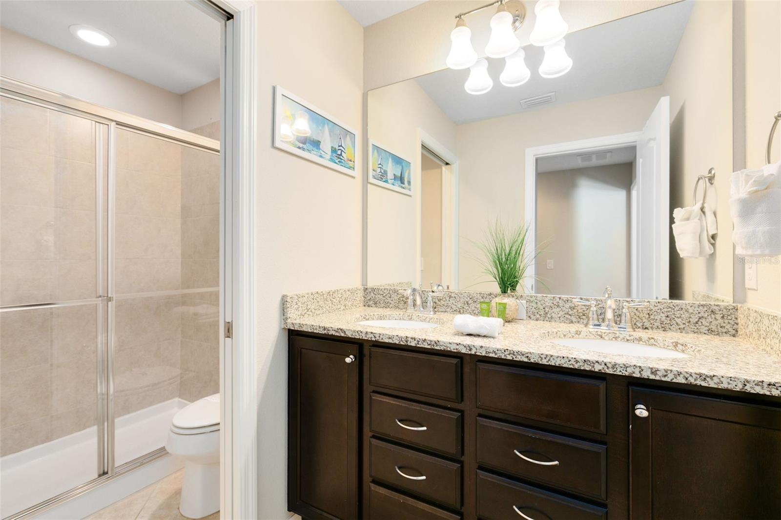 Excellent value - fantastic vacation rental property in the guard-gated Windsor at Westside Resort with future rentals already in place for immediate revenue. This fully furnished and well-maintained turnkey house has a great floor plan and everything needed for the perfect vacation. First, it can accommodate up to fourteen in comfort and privacy offering three primary suites (one on the ground floor), three additional color-themed bedrooms and a Frozen-themed bedroom for the little ones. There is plenty of interior space for entertaining and relaxing - the kitchen with large island that opens into the spacious living area, the second-floor movie loft and gaming area and the fun games room in the garage – lots of room to spread out. Moving outside, the enjoyment continues in the well-sized pool and soothing spa fully screened for day or evening activities and with a covered dining area and outdoor grill for those famous Florida cookouts. Finally the house is perfectly situated very close to the resort’s clubhouse and amenity center offering a zero-entry heated resort pool and spa, poolside cabanas, lazy river, splash pad with waterslides, tennis/volleyball courts, playground, poolside restaurant and lounge with a fireplace seating area, arcade, and fitness center. All of this is just minutes away and an easy drive to the Walt Disney World® Resort entrance and a short drive to all of the world-famous Central Florida attractions. This house really is the complete package that will assure years of vacation enjoyment for you as well as for a continued stream of rental guests.