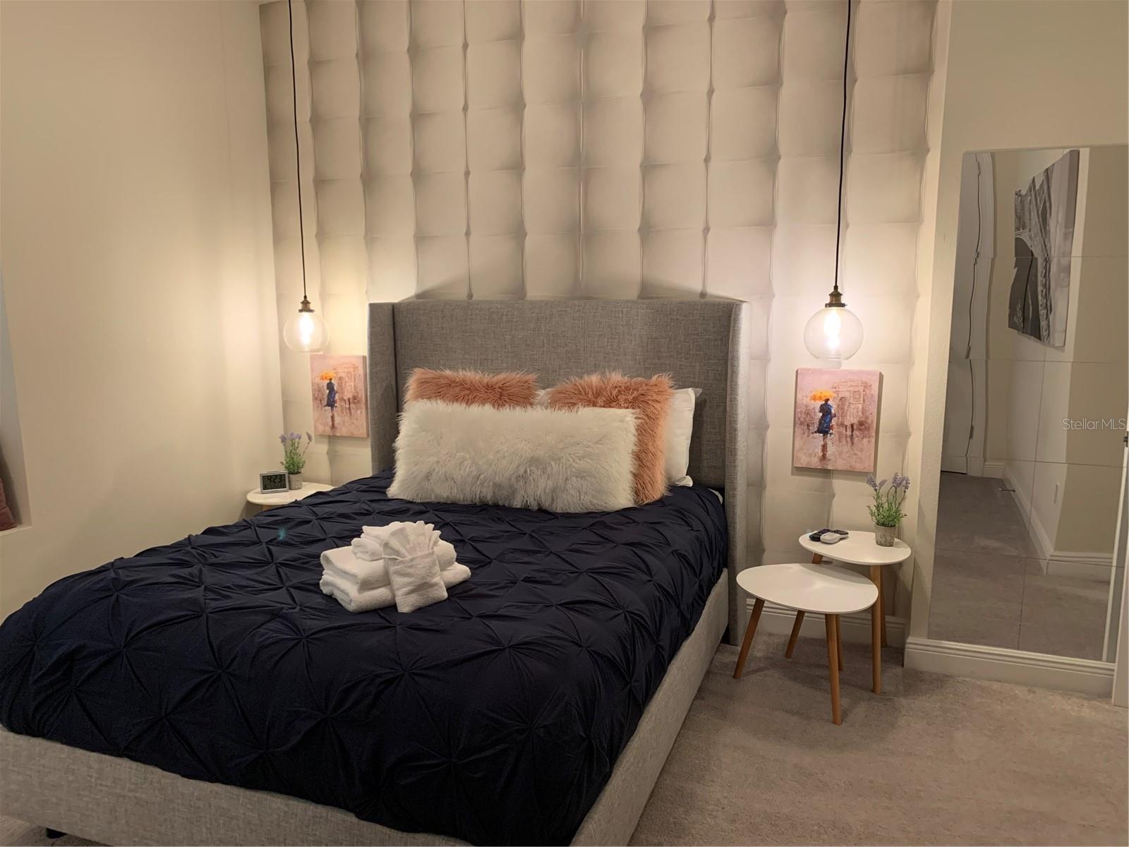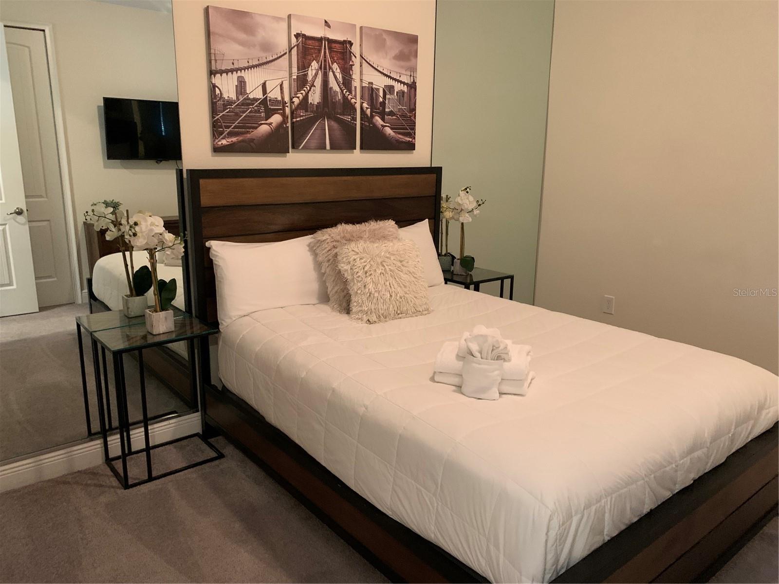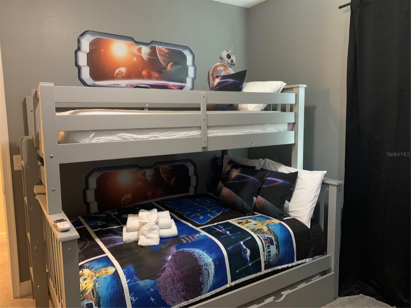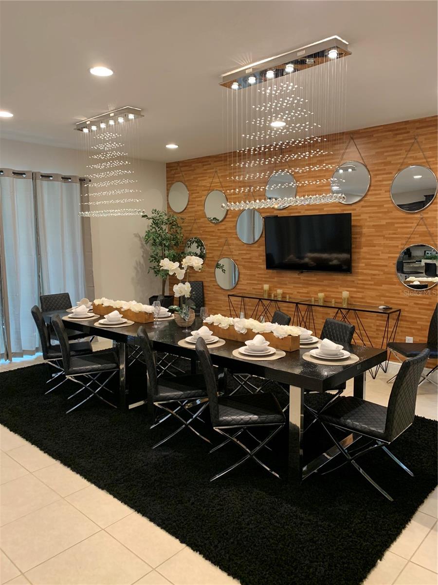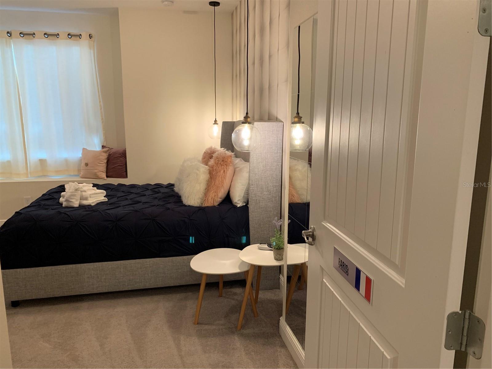 Welcome to Encore at Reunion! This luxury Vacation home is fully furnished 6 bedroom, 6 bathrooms and two car garage will not disappoint! Each bedroom was professionally designed with contemporary decor and themed in a home magazine, with its own themed destination: Santorini, London, NY, Pandora, Star Wars and Paris. Each bedroom is equipped with a flat screen tv, WiFi and its own bathroom. The dining table has plenty of room with its Venetian theme to seat 12! With the home only being less than 15 minutes to Disney, and under 30 minutes from Universal Studios and Sea World, relaxing in the pool or hot tub quickly transports you into your own oasis. There are two king beds, two queen beds, two full twin beds and a set of bunk beds. The kitchen is fully equipped and even has two dishwashers to make cleanup a breeze. The home also features leased solar panels which allow for exceptional savings on the electric bill.