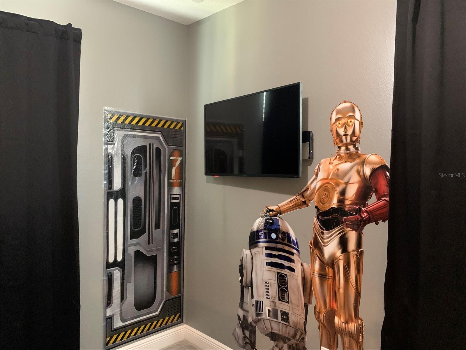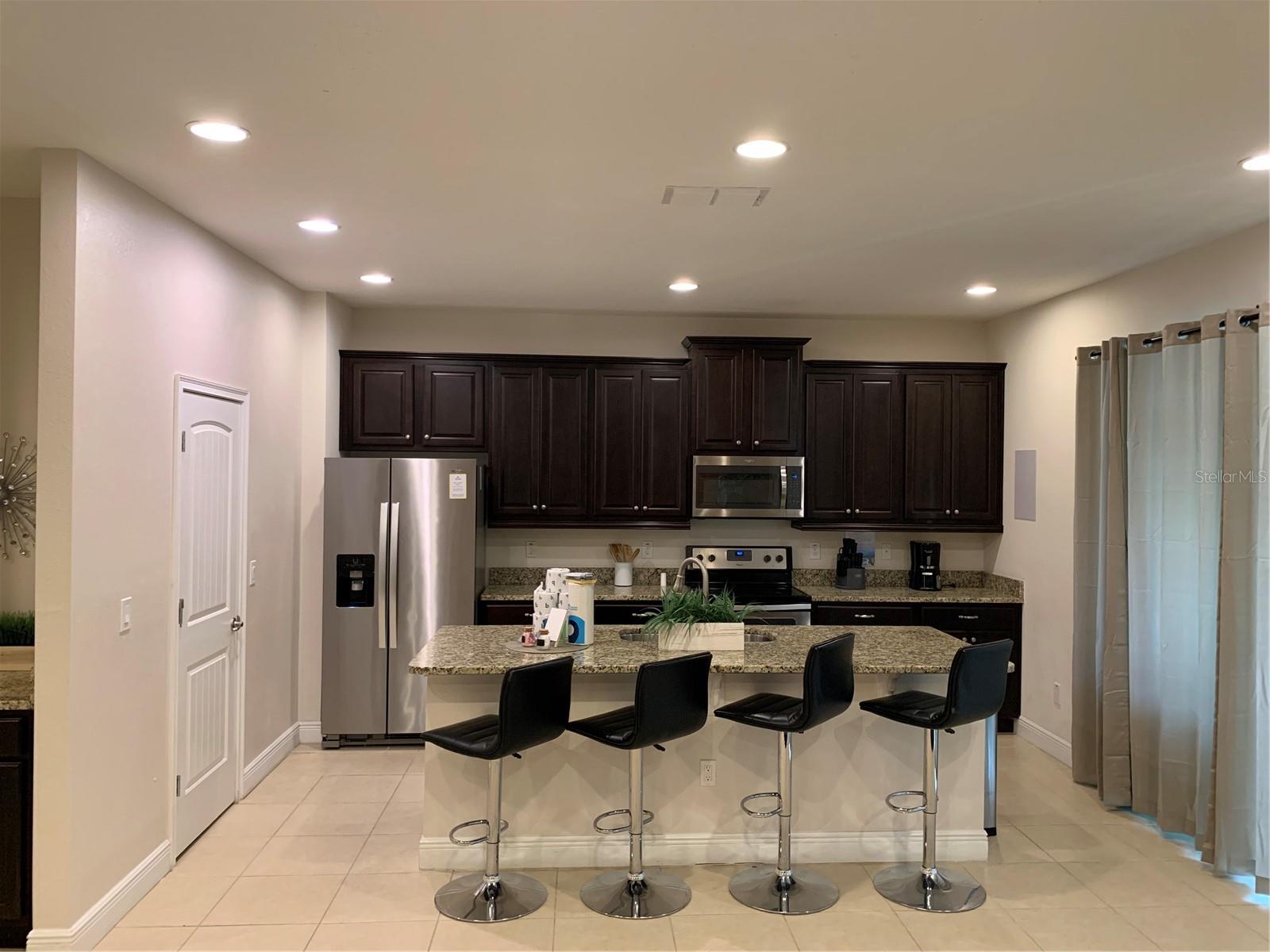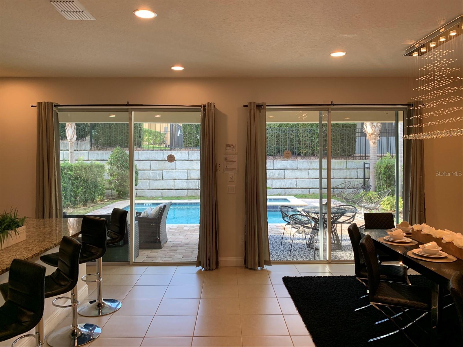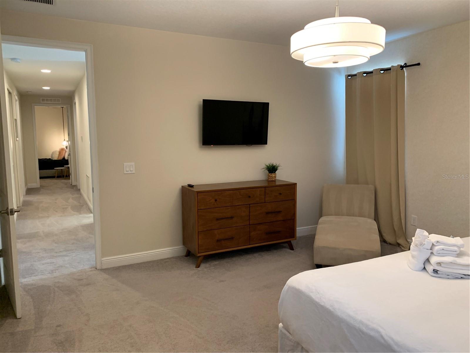 Welcome to Encore at Reunion! This luxury Vacation home is fully furnished 6 bedroom, 6 bathrooms and two car garage will not disappoint! Each bedroom was professionally designed with contemporary decor and themed in a home magazine, with its own themed destination: Santorini, London, NY, Pandora, Star Wars and Paris. Each bedroom is equipped with a flat screen tv, WiFi and its own bathroom. The dining table has plenty of room with its Venetian theme to seat 12! With the home only being less than 15 minutes to Disney, and under 30 minutes from Universal Studios and Sea World, relaxing in the pool or hot tub quickly transports you into your own oasis. There are two king beds, two queen beds, two full twin beds and a set of bunk beds. The kitchen is fully equipped and even has two dishwashers to make cleanup a breeze. The home also features leased solar panels which allow for exceptional savings on the electric bill.