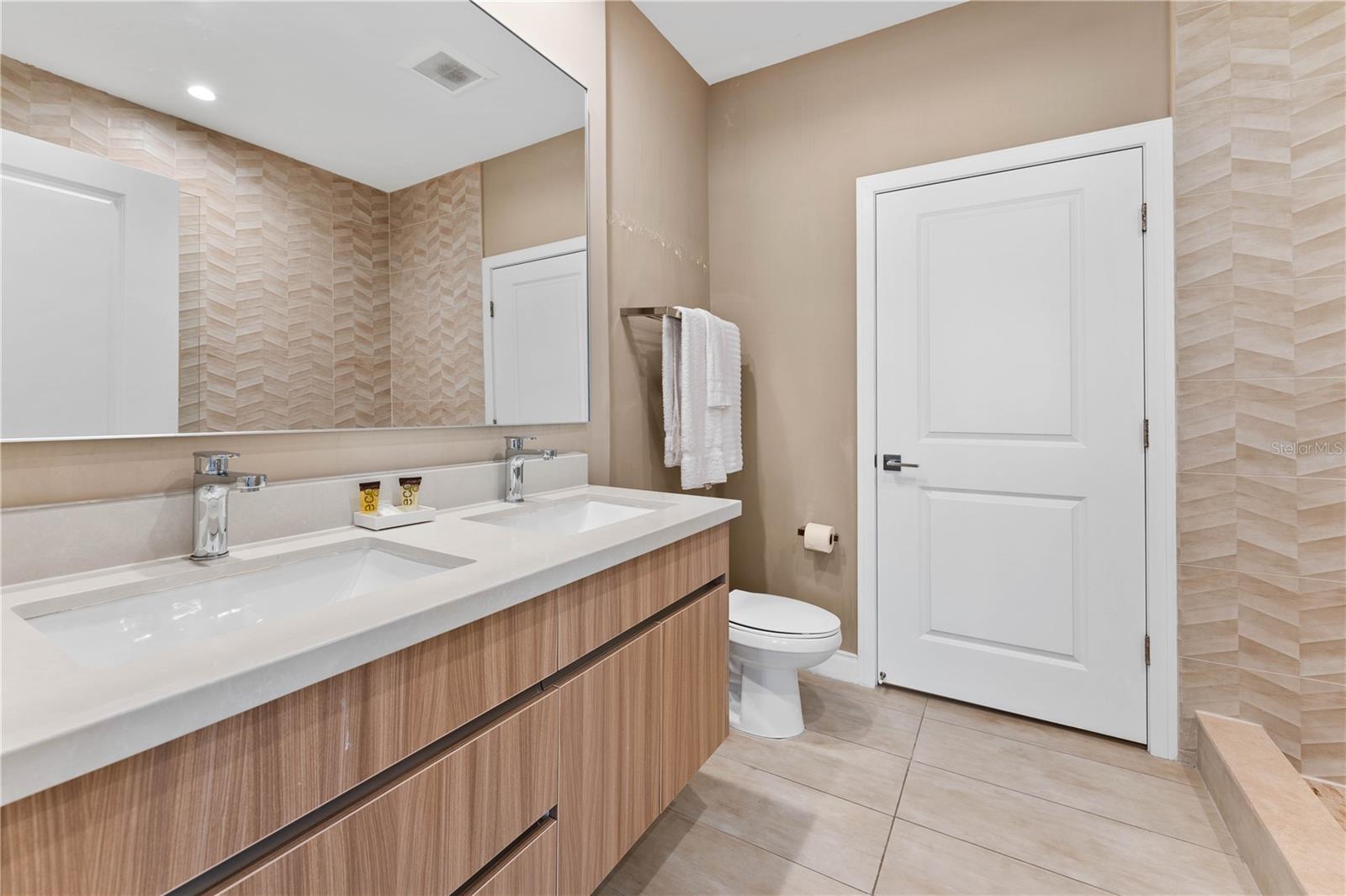 Unique opportunity, being one of the homes closest to the clubhouse. The house is a great investment and it is very well boked all over the year.. Proudly located in what is considered the best-constructed building by the development company, this house is distinguished by its extended front and lanai. .Open floor plan and high celling. Very large primary suite with a room with sofa and table for working or relax .Inside, the home is designed for both functionality and elegance. The laundry room is fully equipped with cabinets and a sink, enhancing practicality. Each bathroom is meticulously designed with dual circuit breakers, one for lighting and another for the exhaust fan. . This 3-bedroom, 3.5-bathroom home in Magic Village Views is just a short distance from Disney's main gate, making it an ideal choice for families or as a strategic investment. The large private patio features a summer kitchen and a heated spa.