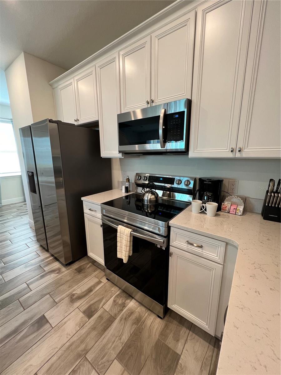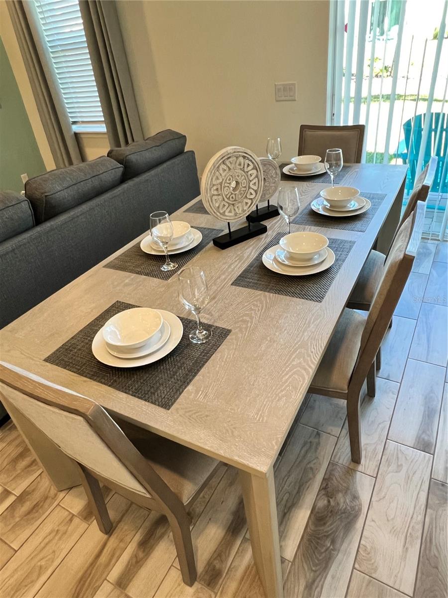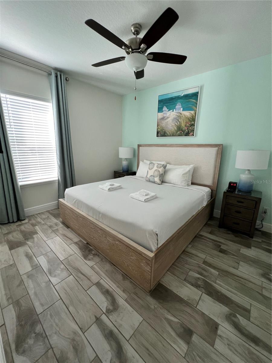 Indulge in the epitome of Caribbean-style resort living within this stunning 4-bedroom, 3-bath villa. Positioned as a corner unit, it provides an exclusive retreat for those desiring enhanced privacy. The well-thought-out floor plan of the villa creates a spacious living and dining area, fostering a serene and tranquil ambiance. The modern kitchen is equipped with top-of-the-line Samsung appliances, elevating both convenience and luxury. The inclusion of a Samsung Washer and Dryer adds further convenience. Immerse yourself in the charm of this Key West-inspired community, where access to all four pools is just moments away from the enchantment of the Disney Parks. Whether you're contemplating short-term rentals or year-round living, this villa boasts a plethora of amenities. From multiple pools and a hot tub to a comprehensive spa, gym, and a variety of dining, entertainment, and shopping options, the villa caters to diverse lifestyles. Don't let this golden opportunity slip away—seize the chance to own this fresh and inviting villa in Margaritaville and embark on your resort-inspired lifestyle today. Additionally, included in the list price is the MargaritaVille Approved City Furniture/Housewares Package, encompassing everything from blinds, drapes, and TVs to artwork, kitchen necessities, dishware, linens, and much more for your comfort.