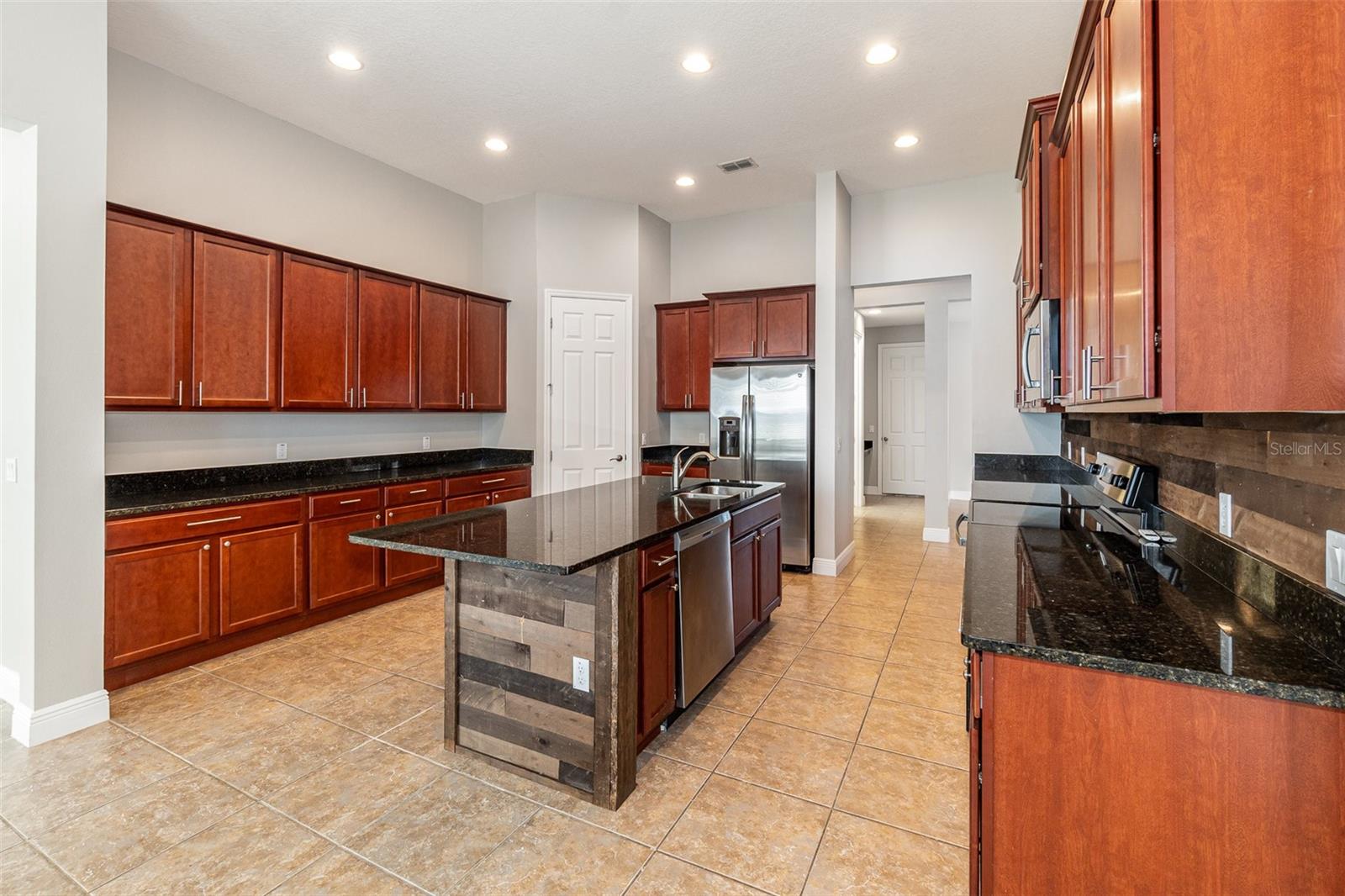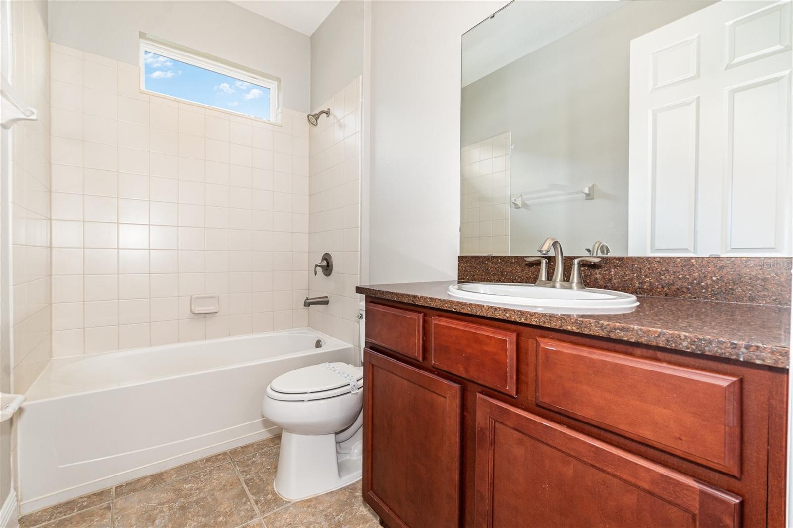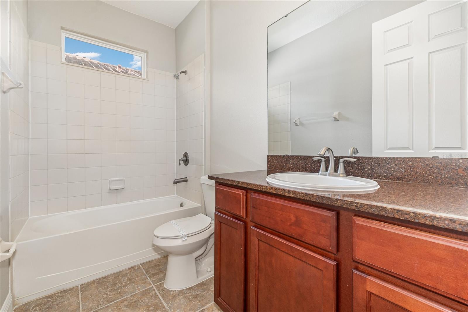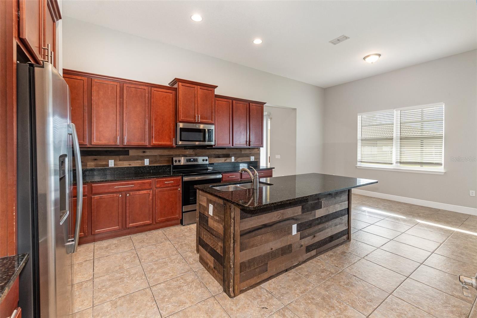 Welcome to your dream home, where every day feels like a vacation. This beautiful 3-bedroom, 3-bathroom house with a 3-car garage features a large covered lanai perfect for sunsets and an oversized flex room ideal as an office or extra bedroom. The kitchen includes a spacious island, pantry, granite countertops, stainless steel appliances, and a bright eat-in area. The split floor plan is perfect for entertaining in the living and family rooms, as well as a separate dining area, while offering a peaceful retreat in the master suite with its ensuite bathroom, dual sinks, walk-in shower, and two walk-in closets. This gated community offers 24-hour security, a clubhouse, resort-style pool with water slide, gym, sports courts, play areas, walking paths, ponds, and fishing spots. Schedule a showing today and start enjoying the resort lifestyle.