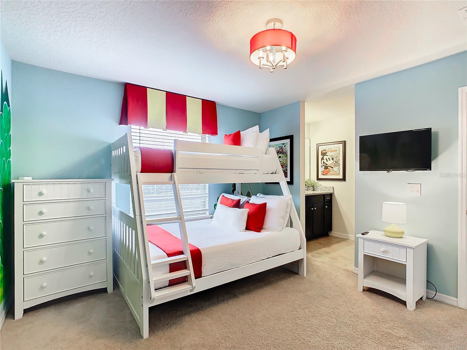 Motivated Seller. Exquisite 8-bedroom, 6-bathroom residence featuring a heated in-ground pool and spa, situated in the highly-desirable Windsor at Westside community! This home exudes a bright and airy ambiance with a perfect blend of sophistication and themed rooms to create the ideal home away from home. Superbly located just minutes from the Disney theme parks, and within a short walking distance to community amenities such as a spacious clubhouse with an outdoor pavilion, resort-style pool and spa, a relaxing lazy river, poolside cabanas, fitness center, multi-purpose sports field, sand volleyball, and tennis court. Experience firsthand this immaculately appointed home, adorned with all the comforts necessary for an exceptional family vacation, whether for yourself or for your guests.