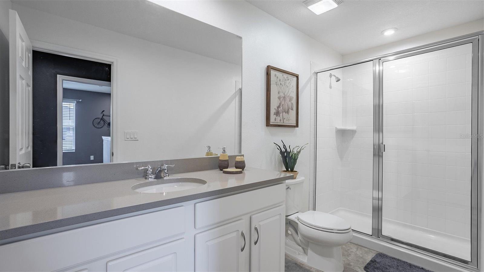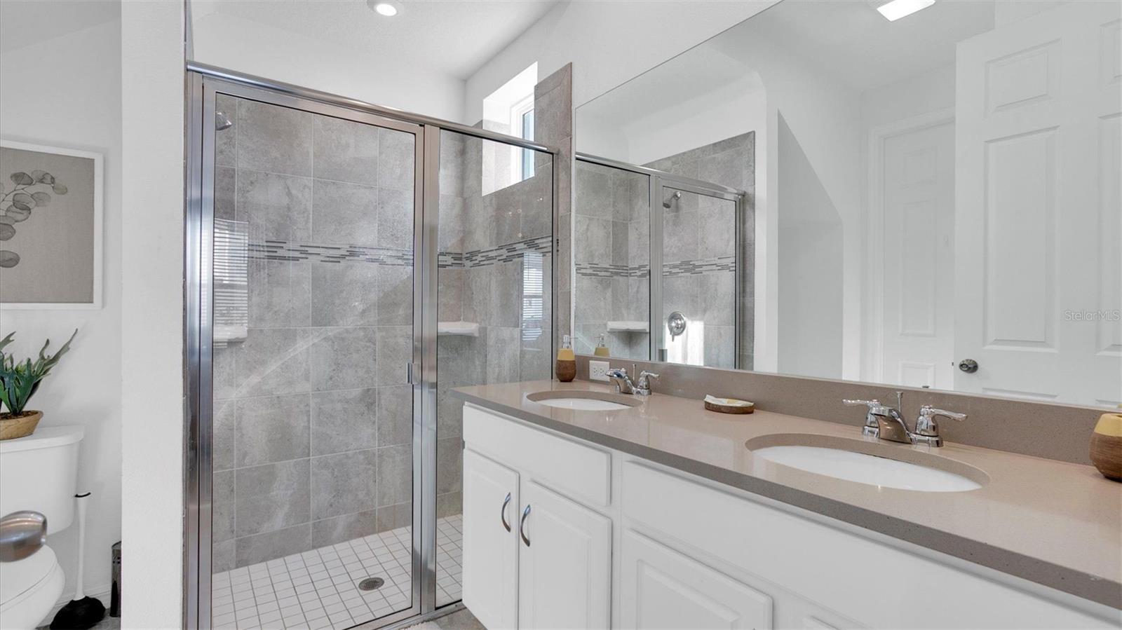 Absolutely stunning 5 bedroom, 4.5 bath corner unit with a private pool zoned for short term rentals located in the gated community of Solara resort in Kissimmee. Fully furnished and professionally decorated, this home is almost 2300 ft.² and offers an open concept floor plan with a large kitchen and family room, overlooking the covered patio and screened in pool area.One master en-suite, downstairs, and one master upstairs and a loft. The resort has a grande clubhouse, including a fitness center, indoor and outdoor lounges and restaurant. Solara also had splash pad area, large pool with cabanas, basketball court, sand, volleyball, soccer field and a playground area. This home is great for a vacation home or investment property!