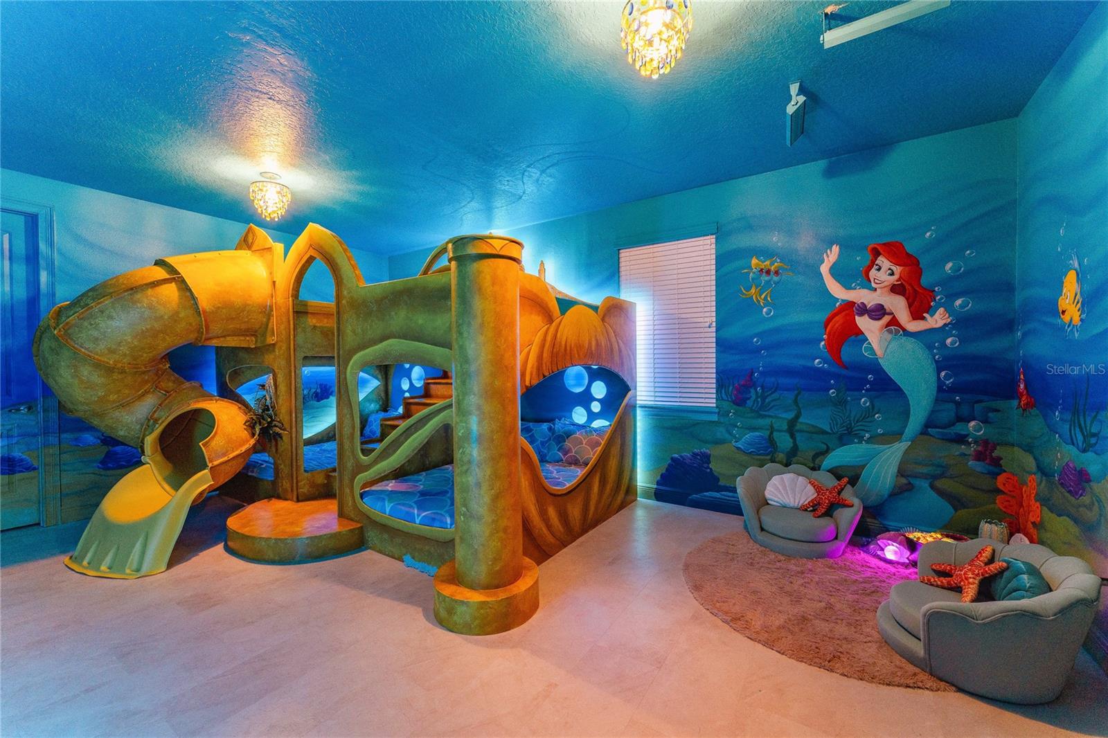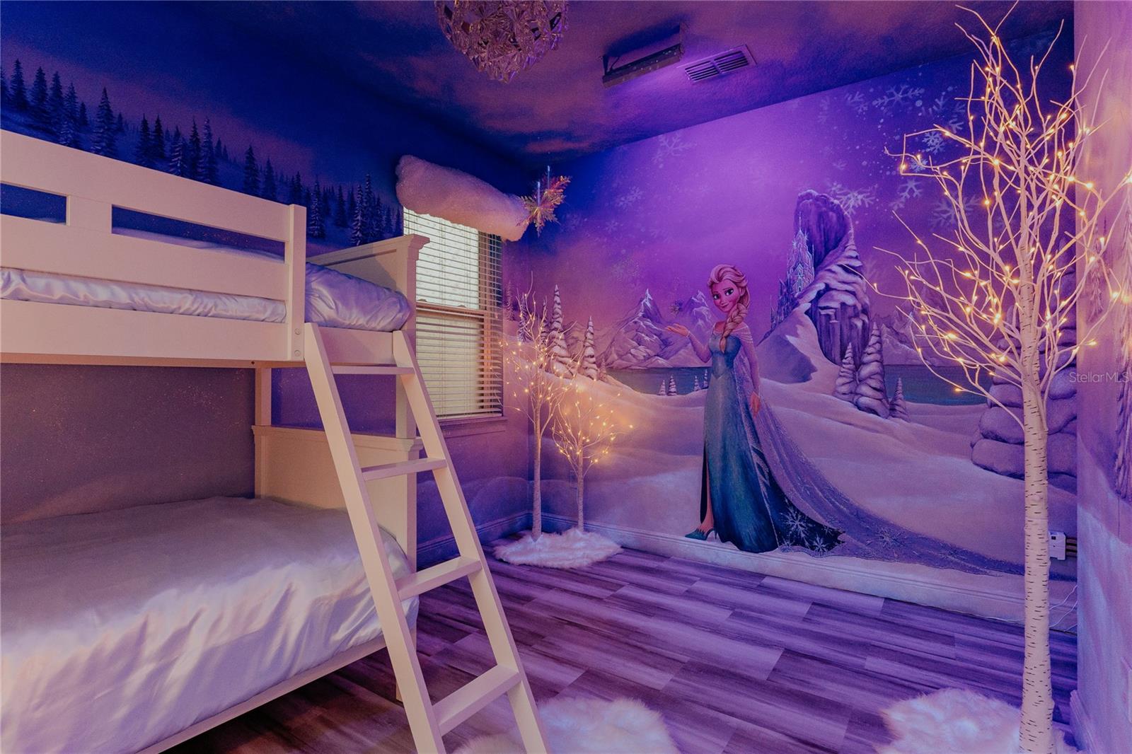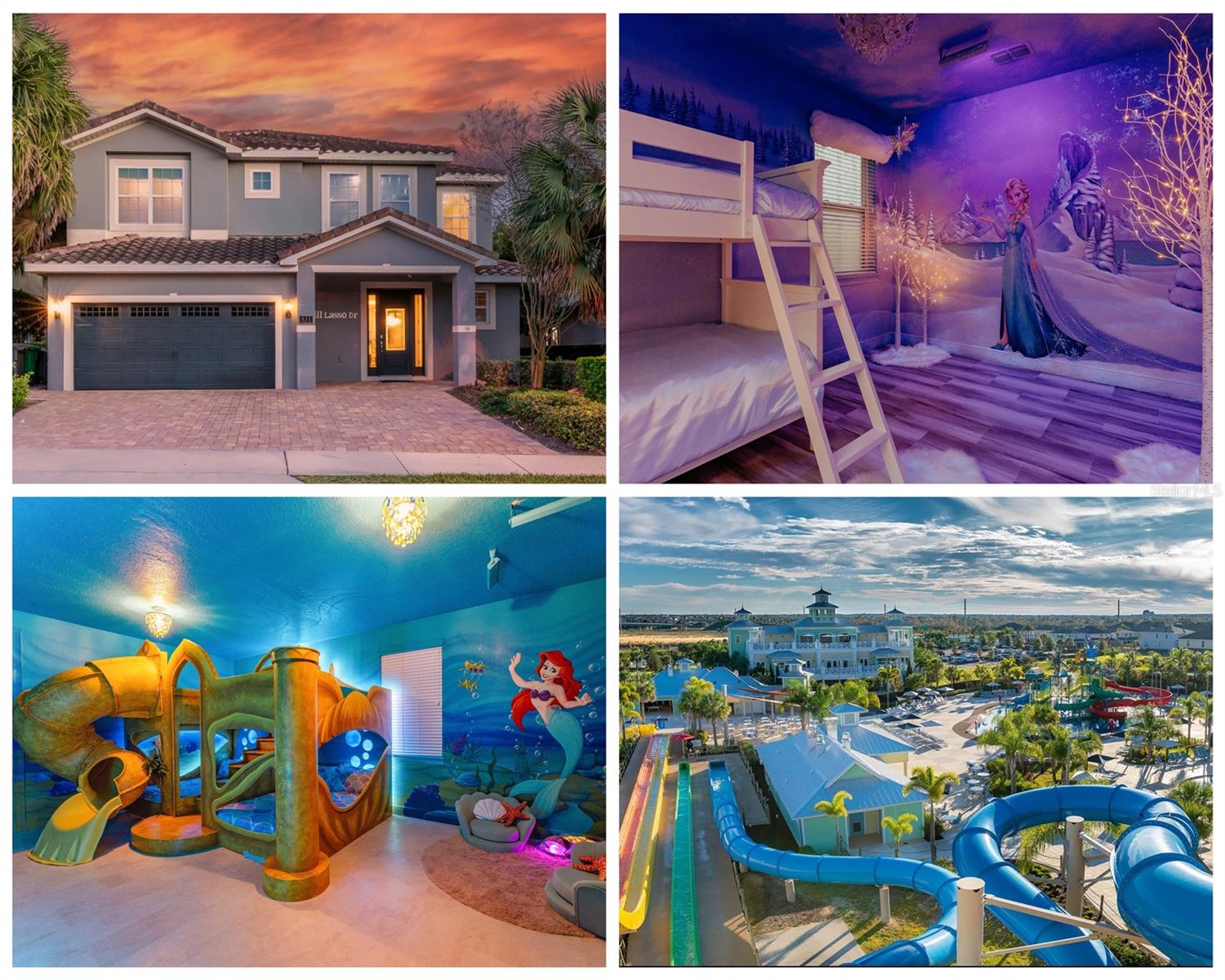 Welcome to 111 Lasso Drive, an 8 bedroom (originally 9 bedroom) VACATION HOME situated across the street from the exclusive ENCORE RESORT clubhouse and amenity center in REUNION. This uniquely crafted FULLY FURNISHED AIRBNB, featuring a PRIVATE POOL and SPA was meticulously designed by Magic Interiors, and sits a SHORT DRIVE FROM DISNEY WORLD. With over $180k in upgrades, including 3 PROFESSIONALLY THEMED BEDROOMS and a fully THEMED GAME ROOM, 111 Lasso Drive is the perfect choice for Disney aficionados and discerning short-term rental investors, offering immersive experiences unrivaled in detail and craftsmanship. Dive into “THE LITTLE MERMAID" themed bedroom, where oceanic murals, a custom sand castle bed, and hand crafted coral treasures transform sleep into an underwater dream. Guests will be thrilled to bunk in the “Superhero Headquarters,” a vibrant bedroom decorated with murals and motifs of legendary AVENGERS. The "FROZEN” THEMED BEDROOM offers a frosty escape with its snowy landscapes and royal adornments, ensuring dreams filled with magic and adventure. Beyond the enchantment of the themed bedrooms, this vacation home provides a seamless blend of luxury and comfort. The state-of-the-art STAR WARS THEMED game room invites guests into an intergalactic journey of fun with its fluorescent space-themed ambiance and a plethora of games suitable for all. Step outside to a private pool and spa area, perfect for relaxing under the sunny Florida skies. Owners and guests can also take advantage of Encore Resort's exclusive water park, dining options, and convenient shuttle service to Disney World, among many other amenities. Designed to accommodate up to 18 guests, this villa is not just a stay—it's a multi-sensory experience that promises strong rental appeal and unforgettable vacations. Claim your piece of magic and invest in a property that brings stories to life at Encore Resort. Schedule your showing today!