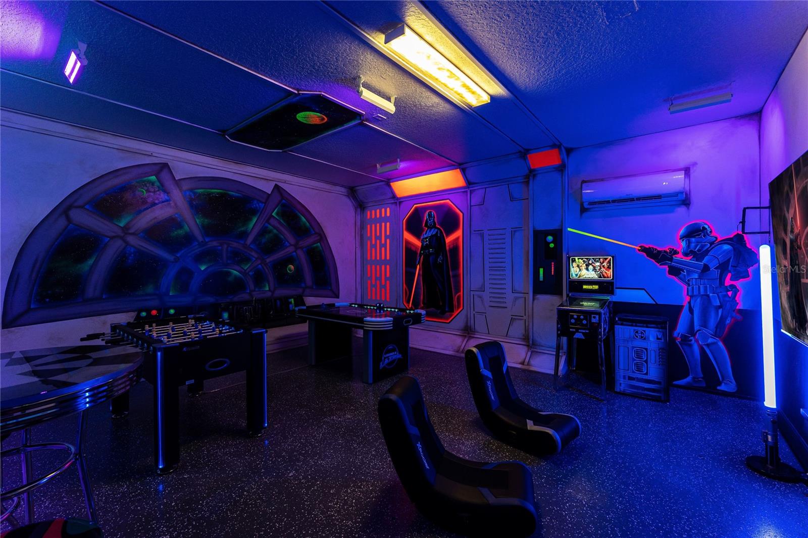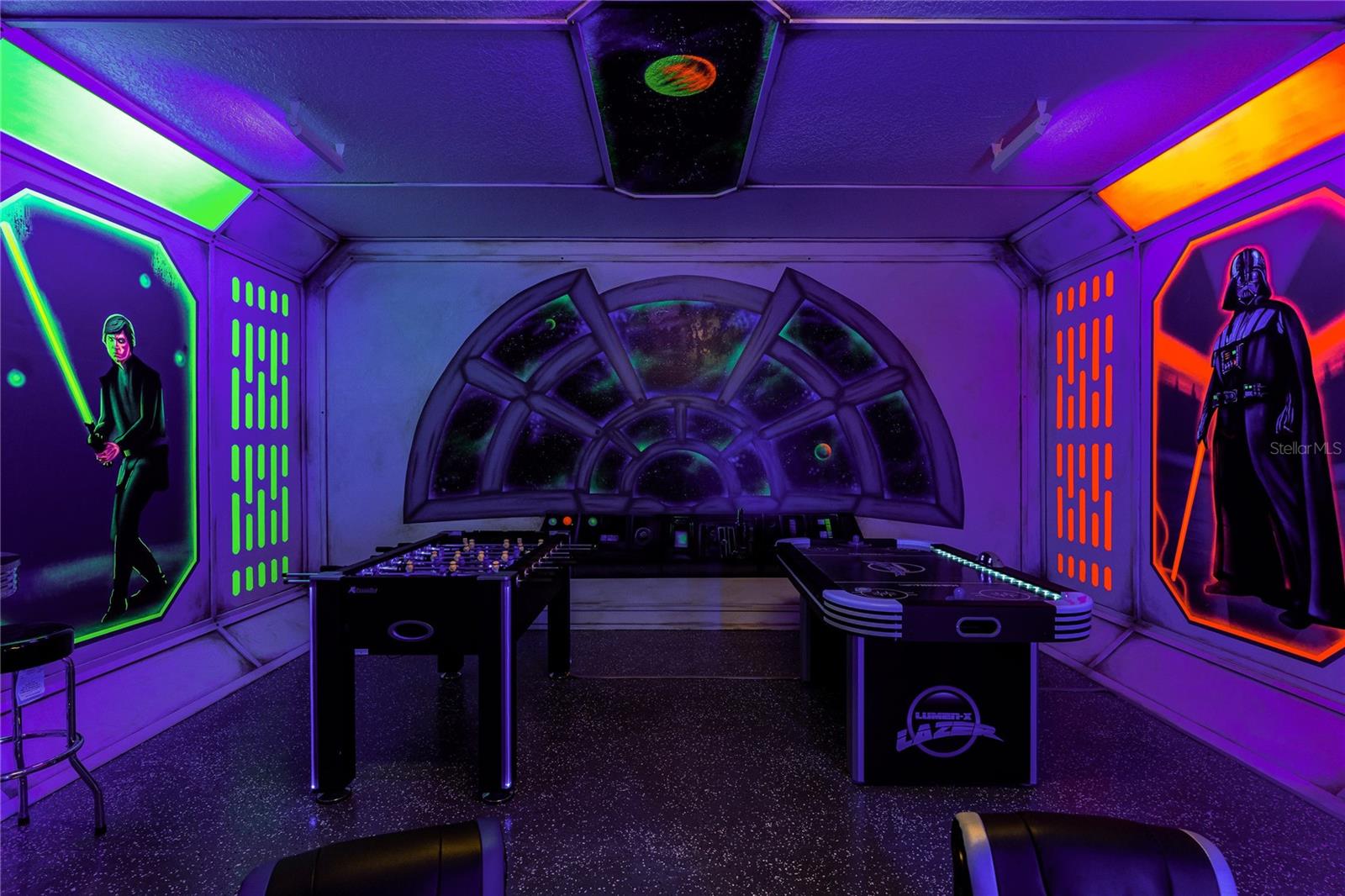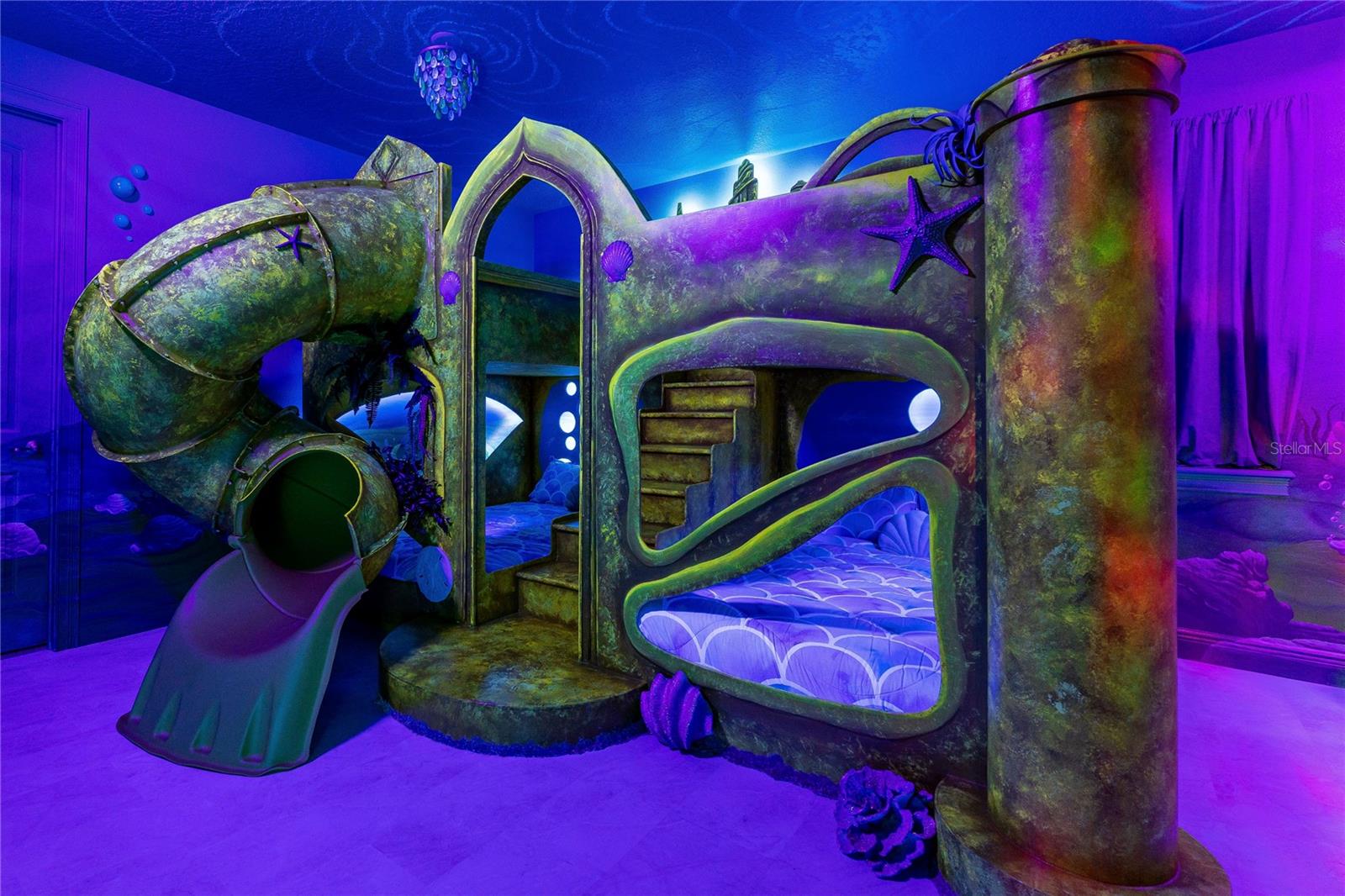 Welcome to 111 Lasso Drive, an 8 bedroom (originally 9 bedroom) VACATION HOME situated across the street from the exclusive ENCORE RESORT clubhouse and amenity center in REUNION. This uniquely crafted FULLY FURNISHED AIRBNB, featuring a PRIVATE POOL and SPA was meticulously designed by Magic Interiors, and sits a SHORT DRIVE FROM DISNEY WORLD. With over $180k in upgrades, including 3 PROFESSIONALLY THEMED BEDROOMS and a fully THEMED GAME ROOM, 111 Lasso Drive is the perfect choice for Disney aficionados and discerning short-term rental investors, offering immersive experiences unrivaled in detail and craftsmanship. Dive into “THE LITTLE MERMAID" themed bedroom, where oceanic murals, a custom sand castle bed, and hand crafted coral treasures transform sleep into an underwater dream. Guests will be thrilled to bunk in the “Superhero Headquarters,” a vibrant bedroom decorated with murals and motifs of legendary AVENGERS. The "FROZEN” THEMED BEDROOM offers a frosty escape with its snowy landscapes and royal adornments, ensuring dreams filled with magic and adventure. Beyond the enchantment of the themed bedrooms, this vacation home provides a seamless blend of luxury and comfort. The state-of-the-art STAR WARS THEMED game room invites guests into an intergalactic journey of fun with its fluorescent space-themed ambiance and a plethora of games suitable for all. Step outside to a private pool and spa area, perfect for relaxing under the sunny Florida skies. Owners and guests can also take advantage of Encore Resort's exclusive water park, dining options, and convenient shuttle service to Disney World, among many other amenities. Designed to accommodate up to 18 guests, this villa is not just a stay—it's a multi-sensory experience that promises strong rental appeal and unforgettable vacations. Claim your piece of magic and invest in a property that brings stories to life at Encore Resort. Schedule your showing today!