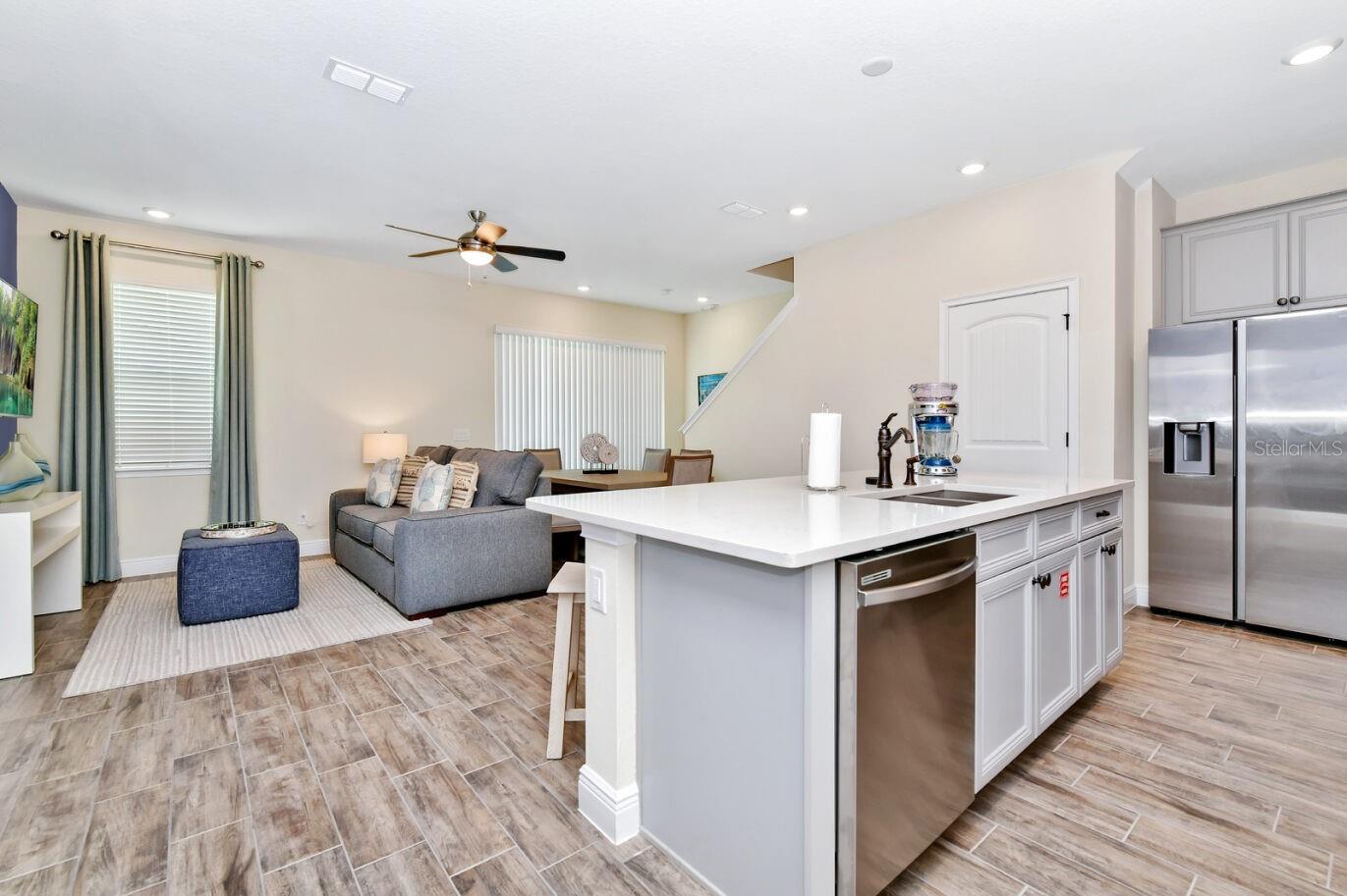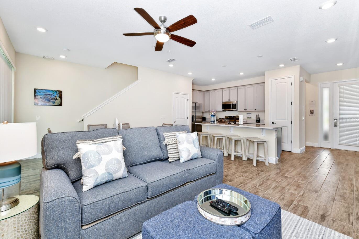 STOP THE CAR! DON'T MISS OUT ON THIS ONE!! HUGE PRICE REDUCTION on this fantastic 2 bed PLUS extra flex bedroom Villa. Gorgeous Margaritaville Resort Orlando Townhome with 2 Bedroom 2.5 Bathroom + Bonus Room and 1,350+ square feet of living space in the gated section of Resort with beautiful furnishings! Enter through the front door into the foyer with coffee bar/butler pantry area and downstairs bath before reaching the upgraded kitchen and open living /dining combo space with 10' ceilings. Glass sliders open to a back patio area and open green-space to lounge and relax, only steps away from 1 of the 4 pools exclusive to this phase. Upstairs is the owners bedroom & en suite bath with granite topped dual vanity and walk in shower, another full bedroom & bathroom, and A BONUS FLEX ROOM with single bed, TV, and closet! Margaritaville Resort Orlando is located just minutes away from Walt Disney World. Don't let your clients miss out on owning this Vacation Home!!