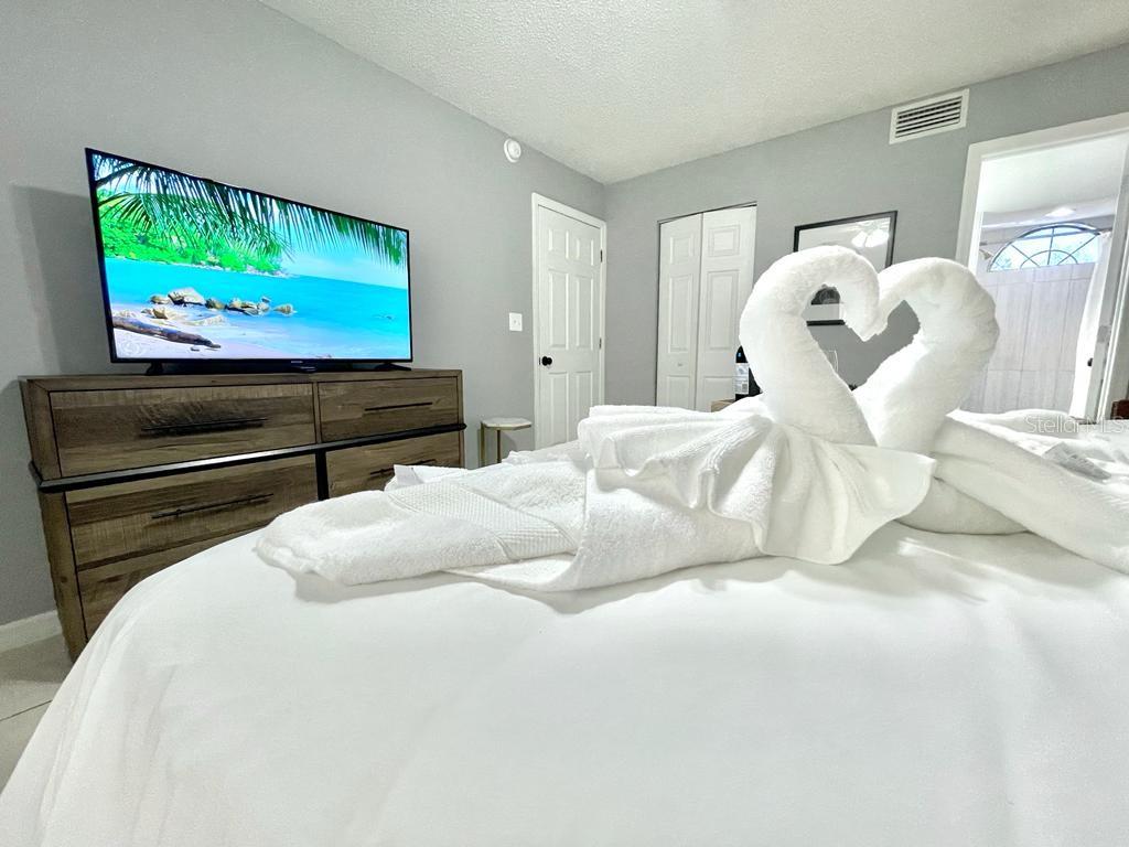 Fully furnished condo, suitable for short-term or long-term rentals. First floor unit, completely renovated with high end materials, tile flooring throughout, stainless steel appliances, larger bedrooms with two walk-in closets, and two reserved parking spaces. This unit has a newer AC (2020), Water Heater, Electrical Panel and Plumbing (2022), Roof (2018). Located just minutes away from major attractions and theme parks, making it a desirable location for tourists. The Loop (outdoor mall) is a 10-minute drive. Disney Parks are only 25 minutes away. Additionally, this condo has been a successful Airbnb, generating passive income for the owners. Bookings already in place. This is an excellent turnkey investment opportunity. Start generating income immediately by making your money work for you!