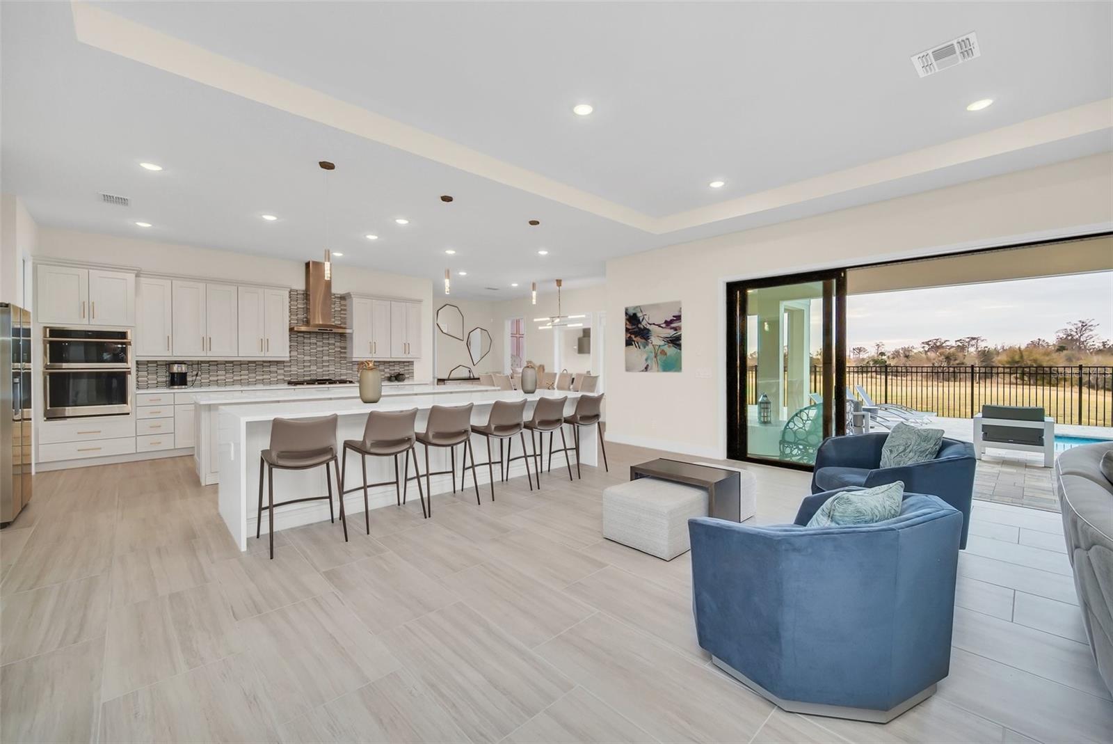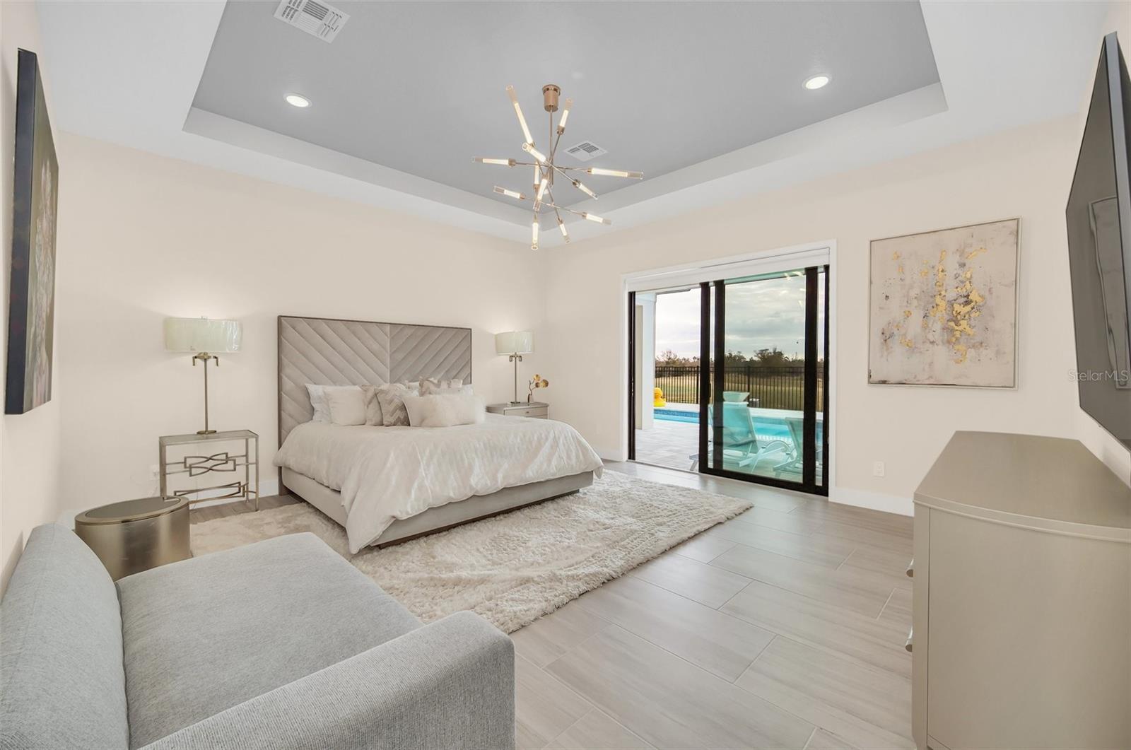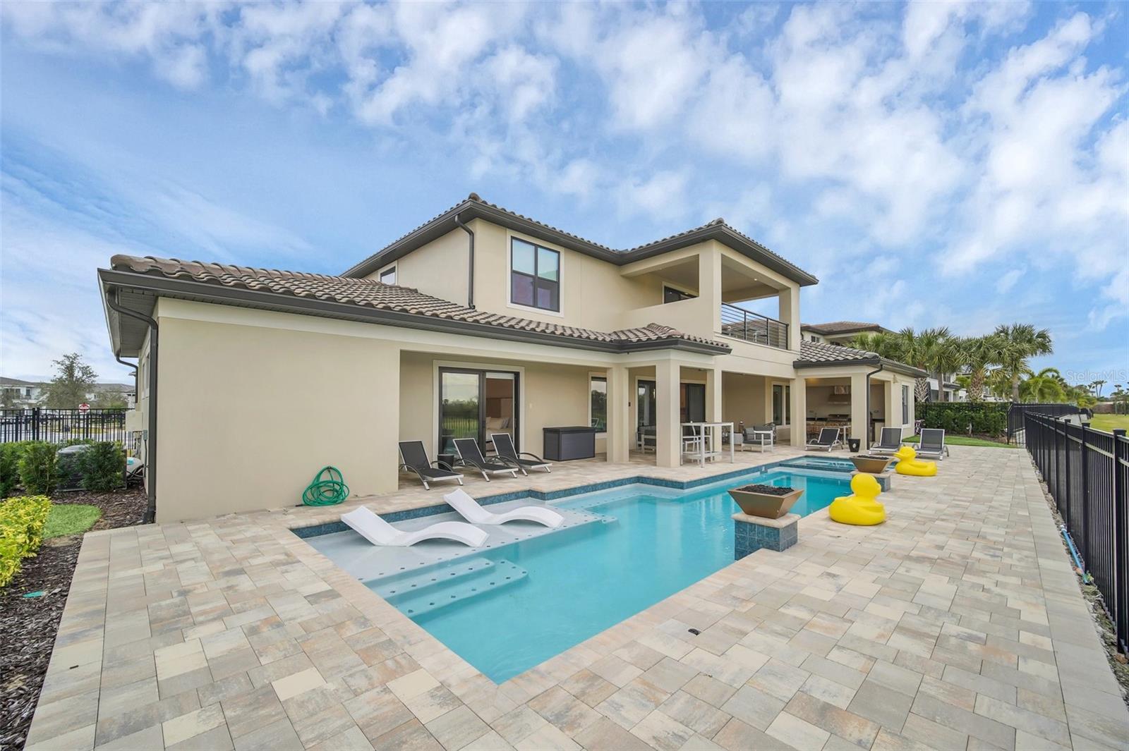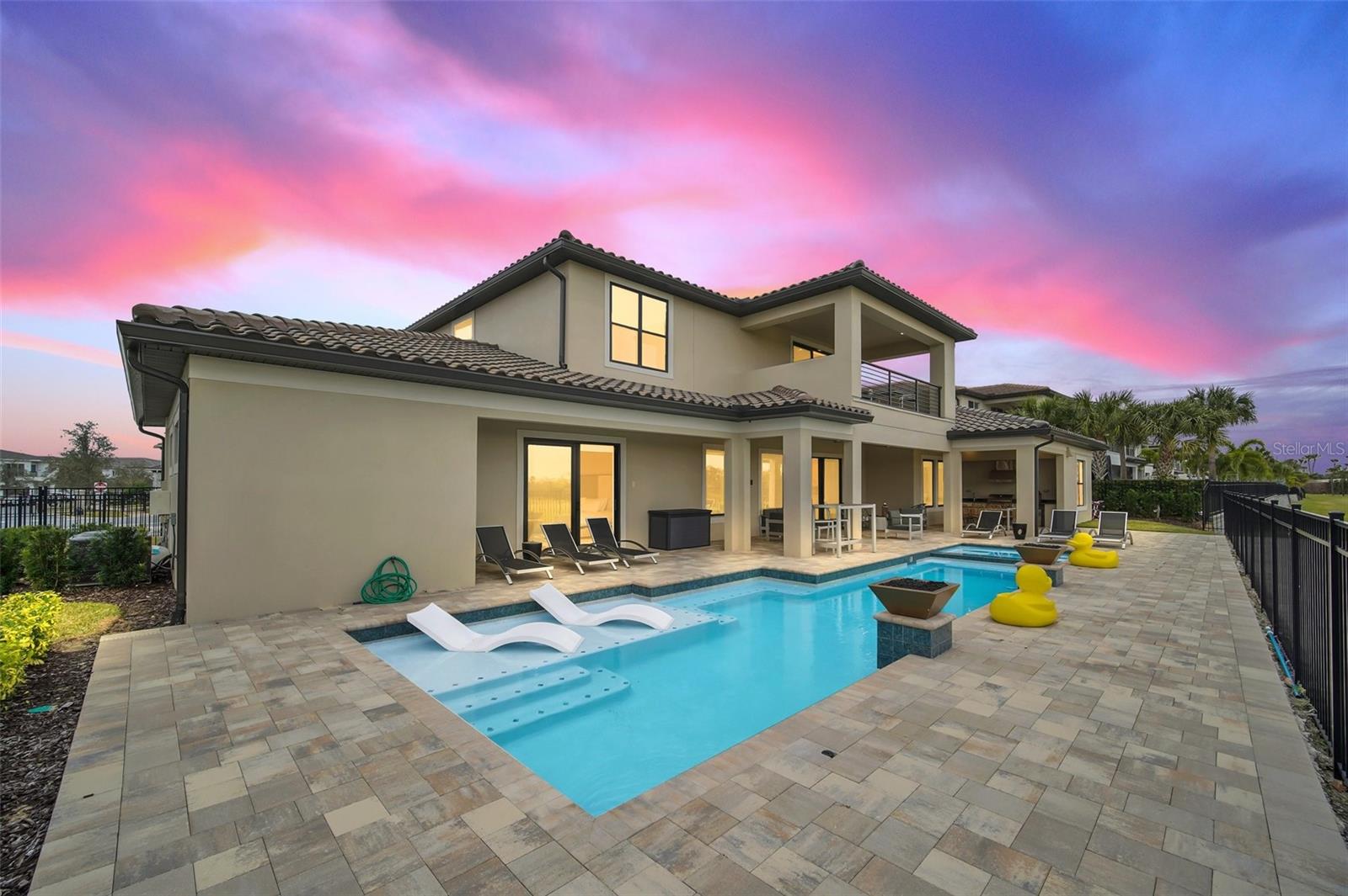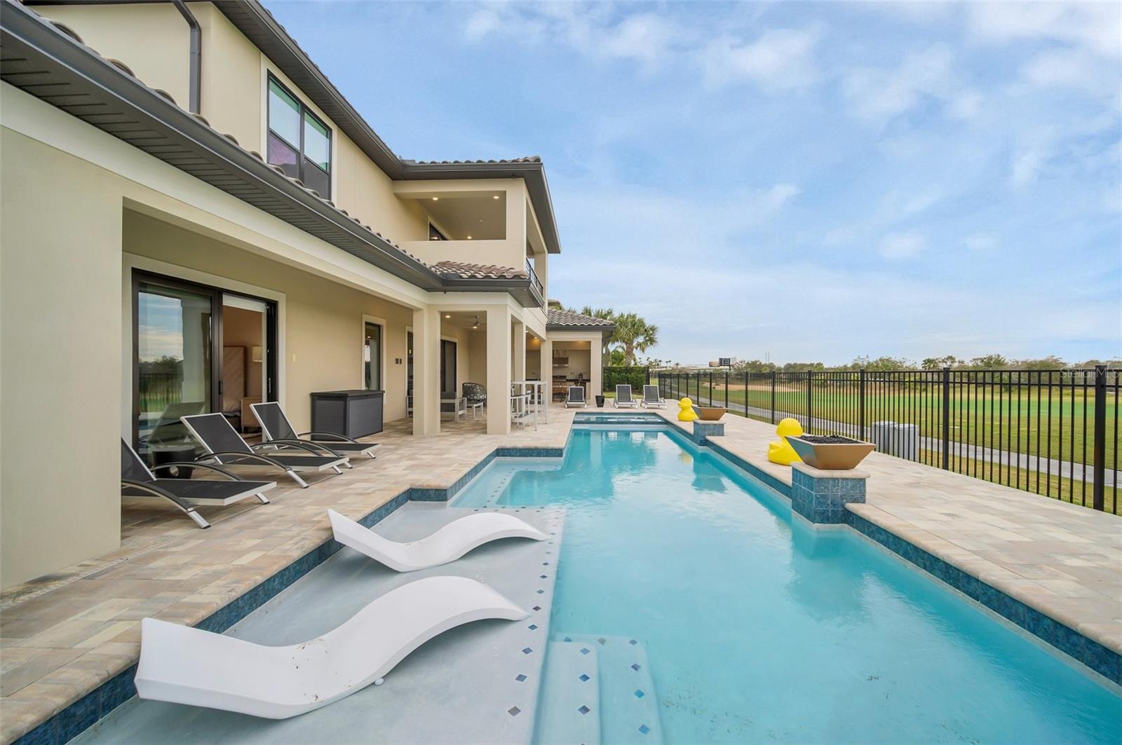 Indulge in the epitome of luxury and charm with this meticulously crafted residence in Bears Den. Strategically placed on an expansive double lot, surrounded by wrought iron fencing and overlooking the 17th Traditions fairway, this home ensures both privacy and a view to behold. What's more, it comes with an included ACTIVE REUNION MEMBERSHIP! Perfect investment opportunity with a tenant in place! Featuring 6 bedrooms and 6 baths, this property is more than a home; it's a captivating retreat adorned with lavish amenities and a carefully designed living space. Upon entry, be prepared to be captivated by soaring ceilings and amazing views, creating an atmosphere of grandeur. The open-plan kitchen, living, and dining area is an entertainer's haven, radiating warmth and hospitality. The kitchen itself is a culinary masterpiece, boasting double islands with waterfall white quartz countertops, extra-height cabinetry, stainless steel top-end appliances – a dream for any culinary enthusiast. Step outside into the oasis, where a custom saltwater pool, hot tub, and sun shelf await, all set against a backdrop of travertine pavers. A summer kitchen with a gas grill and shaded lanai completes the outdoor paradise, providing a haven for both dining and leisure. The first-floor master suite is a sanctuary of opulence, featuring a private dressing room walk-in closet and a spacious ensuite bathroom with a double vanity, walk-in shower, and a luxurious soaker tub. Three additional main floor bedrooms, two with ensuite baths, comfortably accommodate family members and guests. An exceptional games room garage conversion adds a layer of excitement, equipped with various gaming machines for both adults and children. Moving to the upper level, a loft space with a game table and media area serves as an additional recreational area complete with a balcony overlooking the expansive view. Custom Imagineered themed bedrooms make this residence a true vacation destination. Over $200,000 in design upgrades combined with an exceptional high-end furniture collection make every corner of this property a testament to luxury and imagination. Never before rented, this home has been strictly used as a second home...and has been appointed that way for the discerning taste. Situated within the prestigious Reunion Resort, known for its championship golf courses, clubhouses, water park, tennis courts, and more, this property offers an abundance of recreational options. Only 7 miles from Disney, this luxurious residence not only exudes elegance but also provides unparalleled convenience for those seeking a home near one of the world's most iconic entertainment destinations. Don't miss the chance to experience this extraordinary property – schedule your viewing and let the enchantment unfold! Room Feature: Linen Closet In Bath (Primary Bedroom).