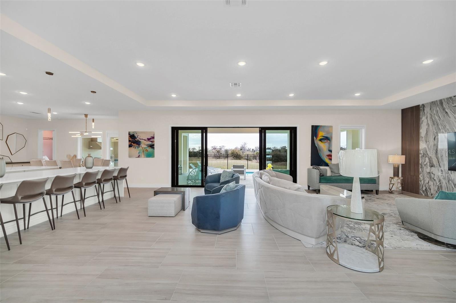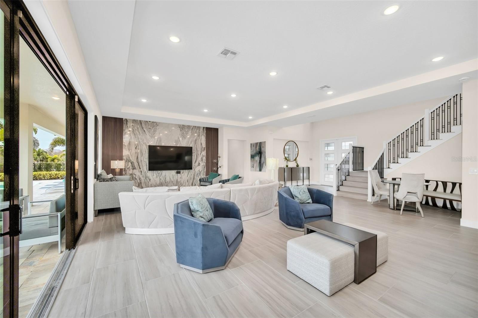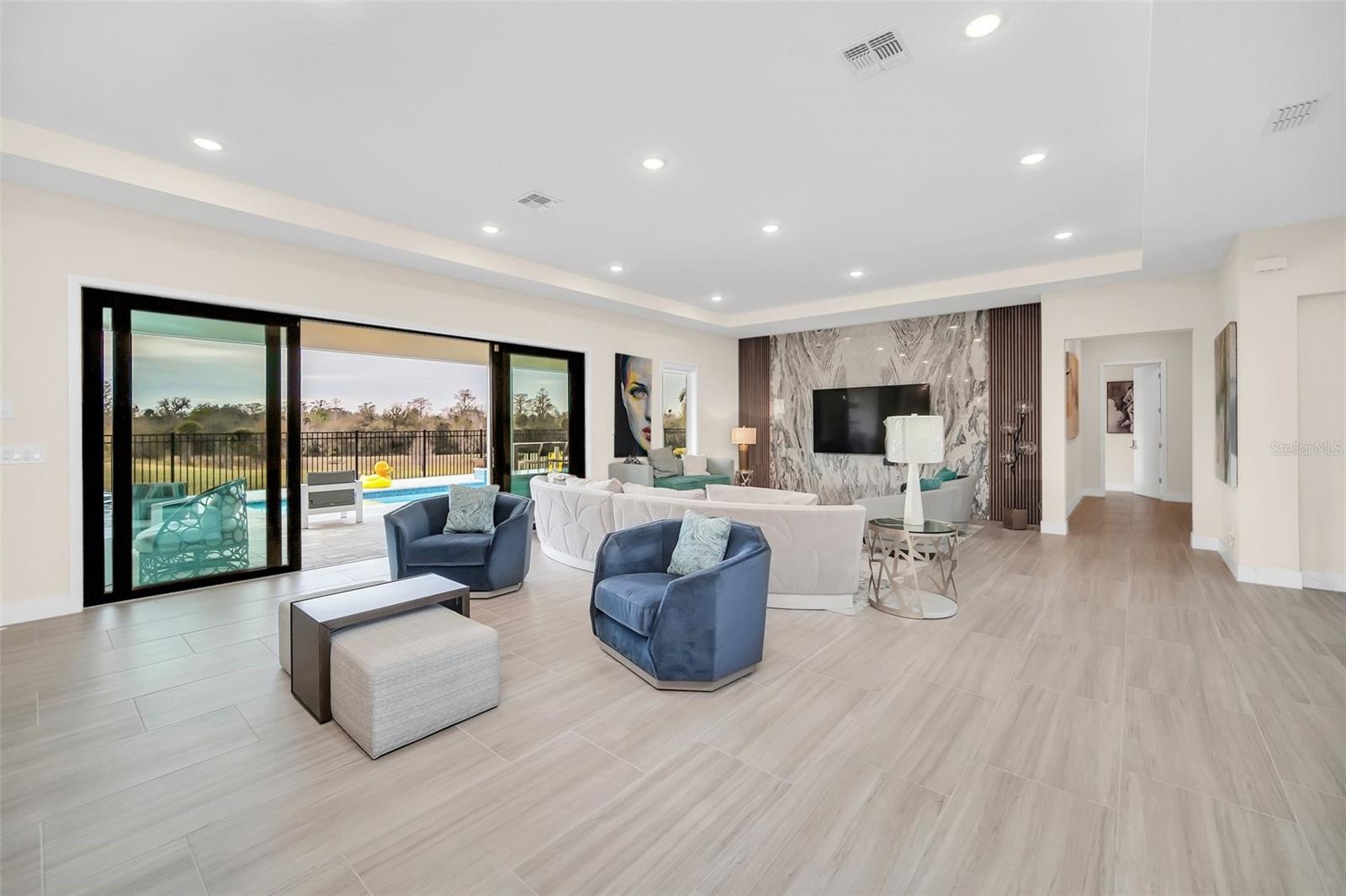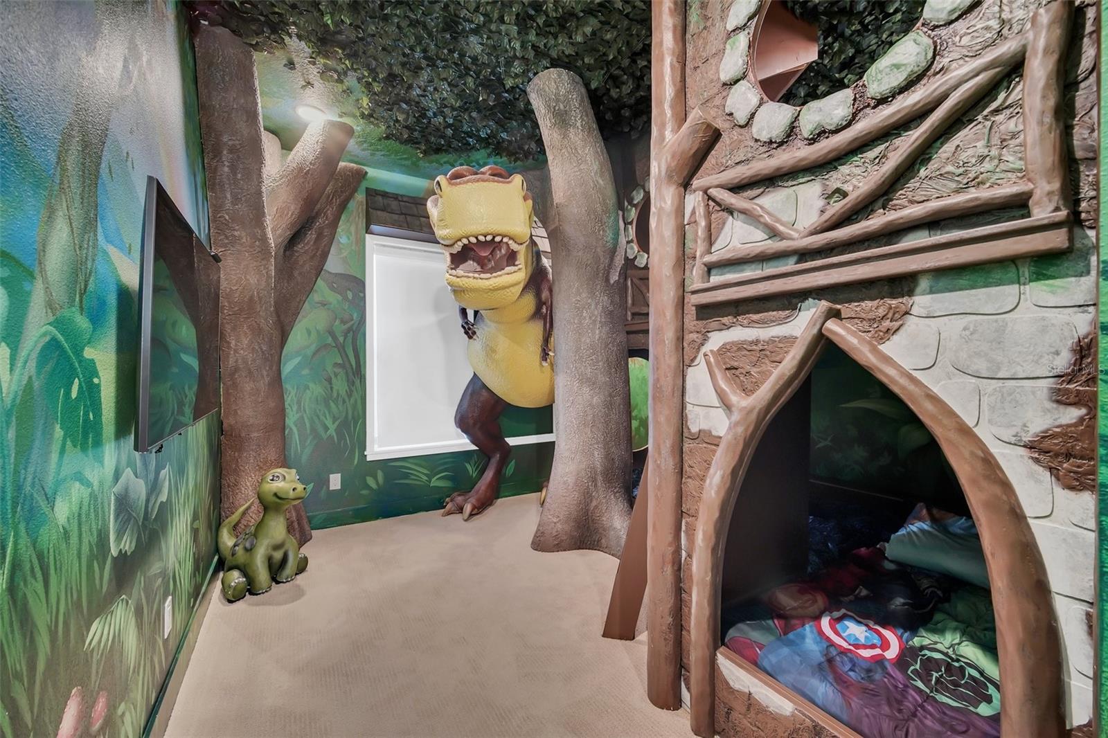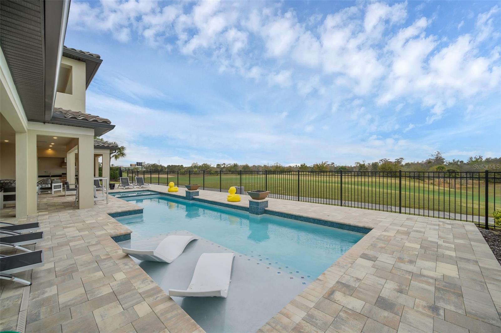 Indulge in the epitome of luxury and charm with this meticulously crafted residence in Bears Den. Strategically placed on an expansive double lot, surrounded by wrought iron fencing and overlooking the 17th Traditions fairway, this home ensures both privacy and a view to behold. What's more, it comes with an included ACTIVE REUNION MEMBERSHIP! Perfect investment opportunity with a tenant in place! Featuring 6 bedrooms and 6 baths, this property is more than a home; it's a captivating retreat adorned with lavish amenities and a carefully designed living space. Upon entry, be prepared to be captivated by soaring ceilings and amazing views, creating an atmosphere of grandeur. The open-plan kitchen, living, and dining area is an entertainer's haven, radiating warmth and hospitality. The kitchen itself is a culinary masterpiece, boasting double islands with waterfall white quartz countertops, extra-height cabinetry, stainless steel top-end appliances – a dream for any culinary enthusiast. Step outside into the oasis, where a custom saltwater pool, hot tub, and sun shelf await, all set against a backdrop of travertine pavers. A summer kitchen with a gas grill and shaded lanai completes the outdoor paradise, providing a haven for both dining and leisure. The first-floor master suite is a sanctuary of opulence, featuring a private dressing room walk-in closet and a spacious ensuite bathroom with a double vanity, walk-in shower, and a luxurious soaker tub. Three additional main floor bedrooms, two with ensuite baths, comfortably accommodate family members and guests. An exceptional games room garage conversion adds a layer of excitement, equipped with various gaming machines for both adults and children. Moving to the upper level, a loft space with a game table and media area serves as an additional recreational area complete with a balcony overlooking the expansive view. Custom Imagineered themed bedrooms make this residence a true vacation destination. Over $200,000 in design upgrades combined with an exceptional high-end furniture collection make every corner of this property a testament to luxury and imagination. Never before rented, this home has been strictly used as a second home...and has been appointed that way for the discerning taste. Situated within the prestigious Reunion Resort, known for its championship golf courses, clubhouses, water park, tennis courts, and more, this property offers an abundance of recreational options. Only 7 miles from Disney, this luxurious residence not only exudes elegance but also provides unparalleled convenience for those seeking a home near one of the world's most iconic entertainment destinations. Don't miss the chance to experience this extraordinary property – schedule your viewing and let the enchantment unfold! Room Feature: Linen Closet In Bath (Primary Bedroom).