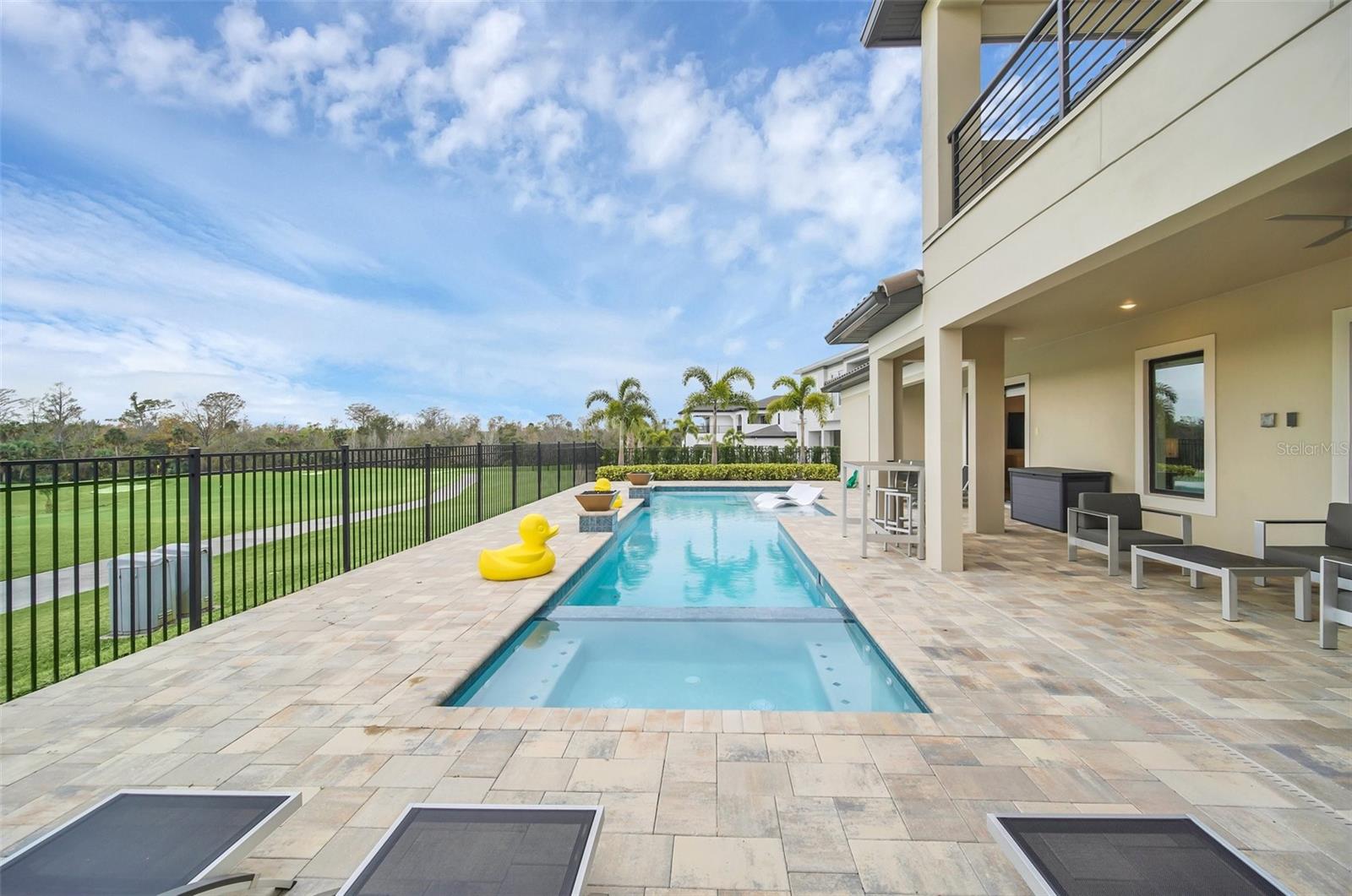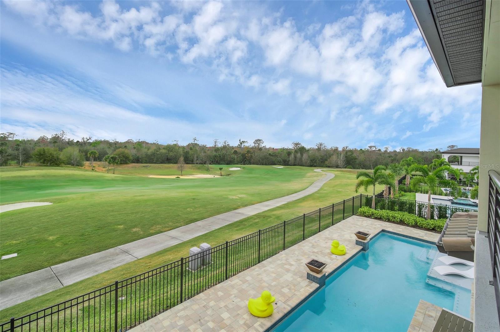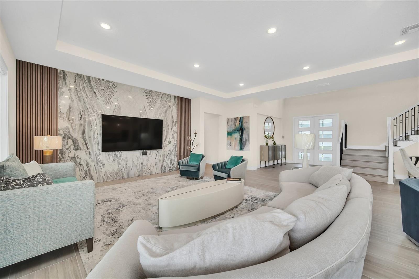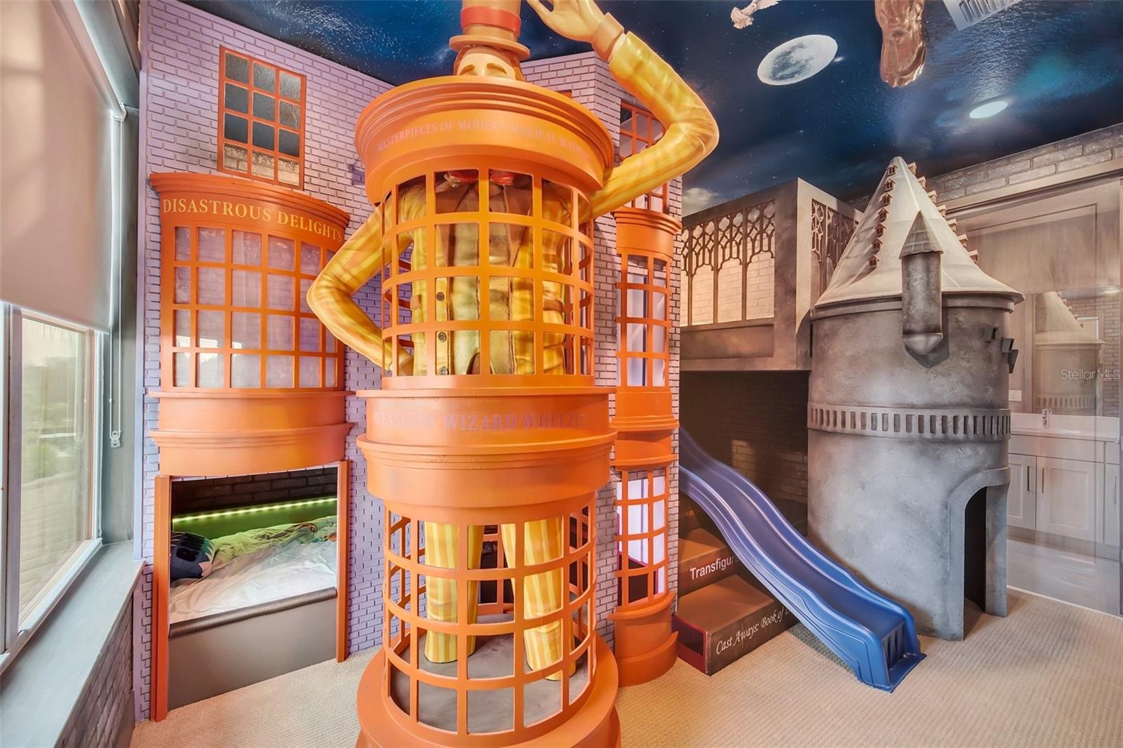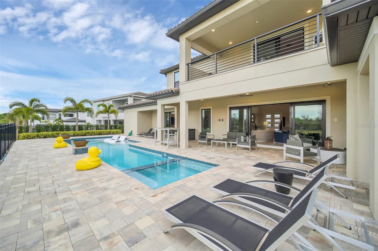 Indulge in the epitome of luxury and charm with this meticulously crafted residence in Bears Den. Strategically placed on an expansive double lot, surrounded by wrought iron fencing and overlooking the 17th Traditions fairway, this home ensures both privacy and a view to behold. What's more, it comes with an included ACTIVE REUNION MEMBERSHIP! Perfect investment opportunity with a tenant in place! Featuring 6 bedrooms and 6 baths, this property is more than a home; it's a captivating retreat adorned with lavish amenities and a carefully designed living space. Upon entry, be prepared to be captivated by soaring ceilings and amazing views, creating an atmosphere of grandeur. The open-plan kitchen, living, and dining area is an entertainer's haven, radiating warmth and hospitality. The kitchen itself is a culinary masterpiece, boasting double islands with waterfall white quartz countertops, extra-height cabinetry, stainless steel top-end appliances – a dream for any culinary enthusiast. Step outside into the oasis, where a custom saltwater pool, hot tub, and sun shelf await, all set against a backdrop of travertine pavers. A summer kitchen with a gas grill and shaded lanai completes the outdoor paradise, providing a haven for both dining and leisure. The first-floor master suite is a sanctuary of opulence, featuring a private dressing room walk-in closet and a spacious ensuite bathroom with a double vanity, walk-in shower, and a luxurious soaker tub. Three additional main floor bedrooms, two with ensuite baths, comfortably accommodate family members and guests. An exceptional games room garage conversion adds a layer of excitement, equipped with various gaming machines for both adults and children. Moving to the upper level, a loft space with a game table and media area serves as an additional recreational area complete with a balcony overlooking the expansive view. Custom Imagineered themed bedrooms make this residence a true vacation destination. Over $200,000 in design upgrades combined with an exceptional high-end furniture collection make every corner of this property a testament to luxury and imagination. Never before rented, this home has been strictly used as a second home...and has been appointed that way for the discerning taste. Situated within the prestigious Reunion Resort, known for its championship golf courses, clubhouses, water park, tennis courts, and more, this property offers an abundance of recreational options. Only 7 miles from Disney, this luxurious residence not only exudes elegance but also provides unparalleled convenience for those seeking a home near one of the world's most iconic entertainment destinations. Don't miss the chance to experience this extraordinary property – schedule your viewing and let the enchantment unfold! Room Feature: Linen Closet In Bath (Primary Bedroom).