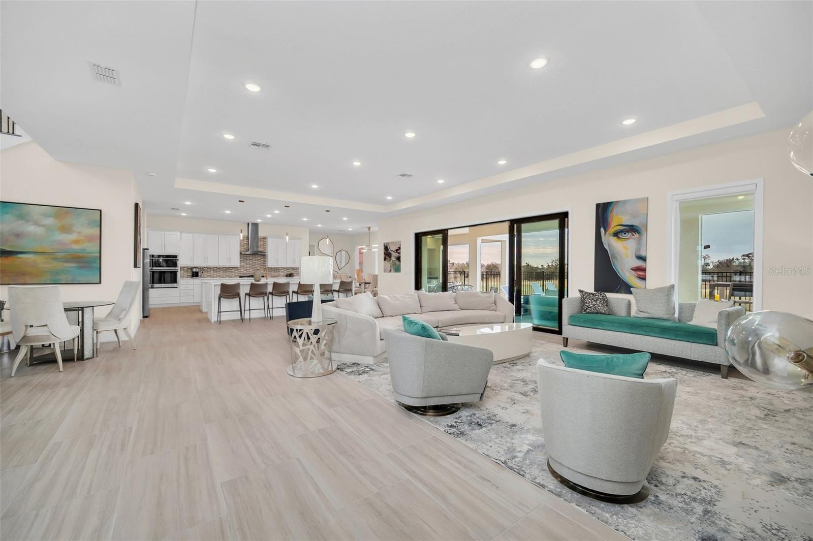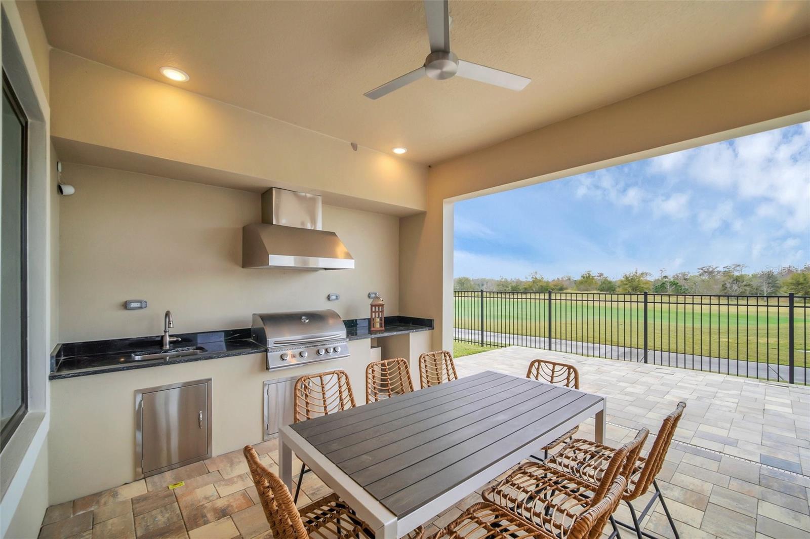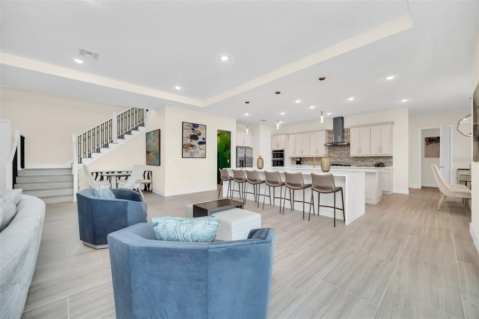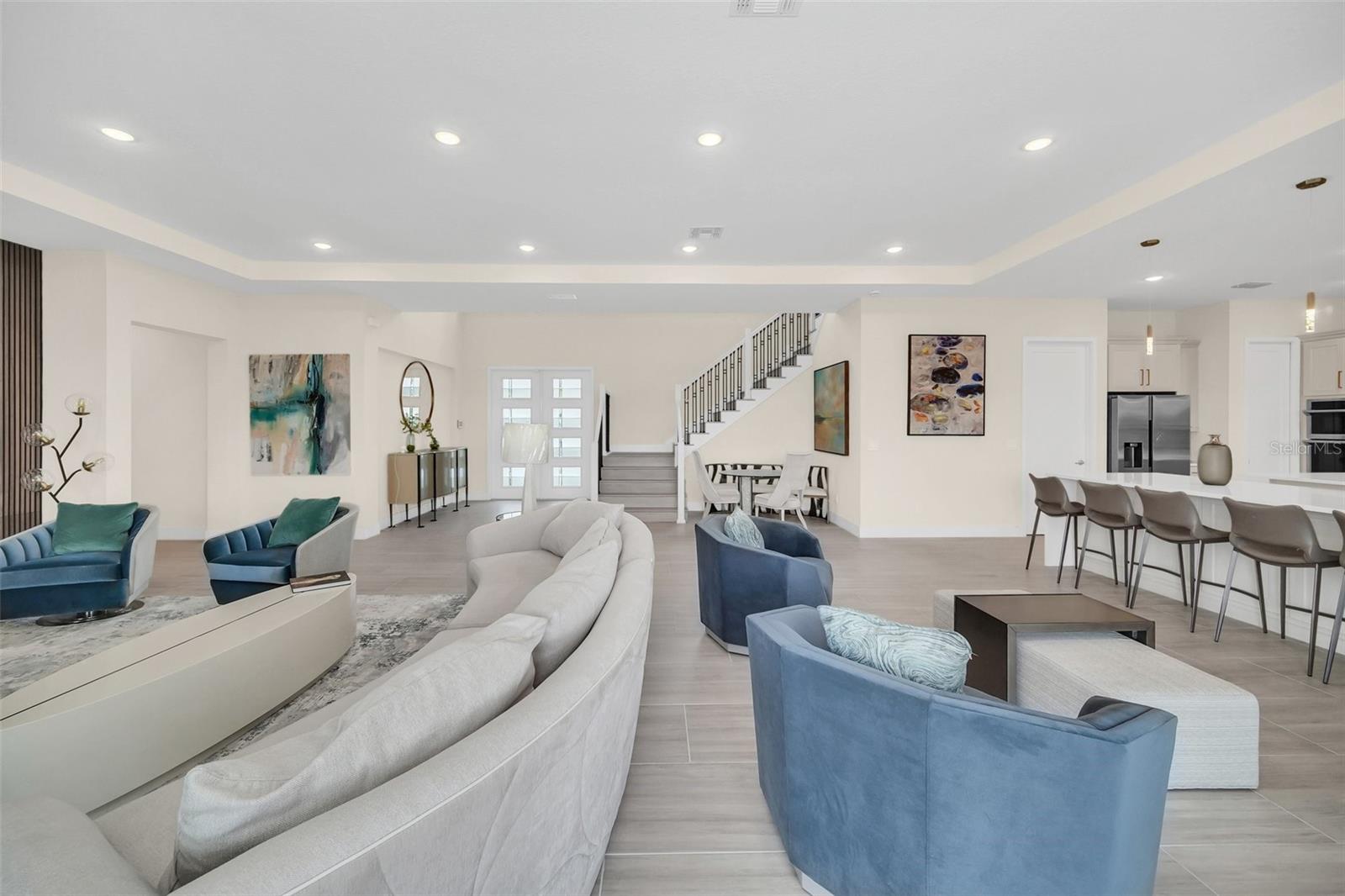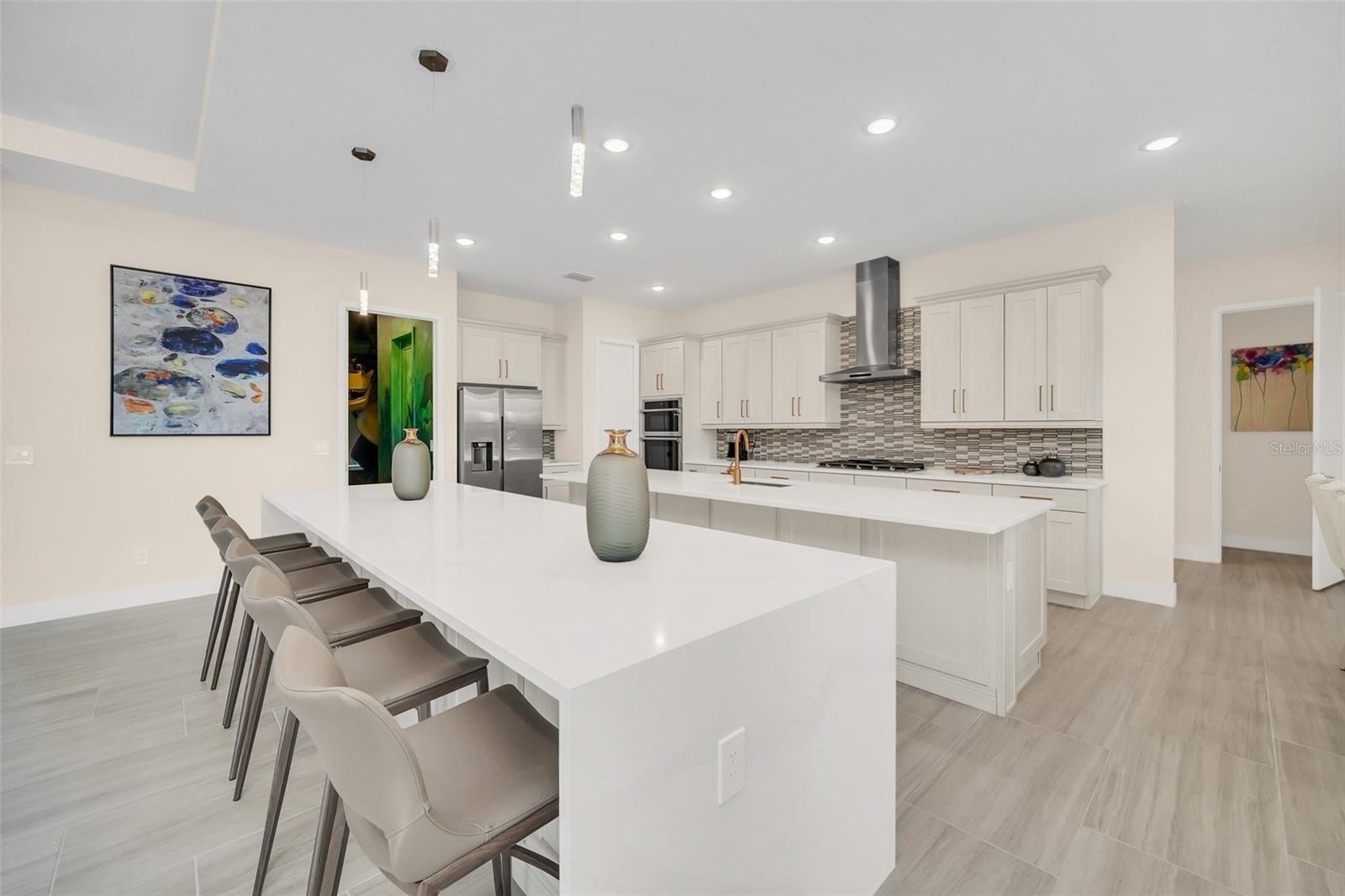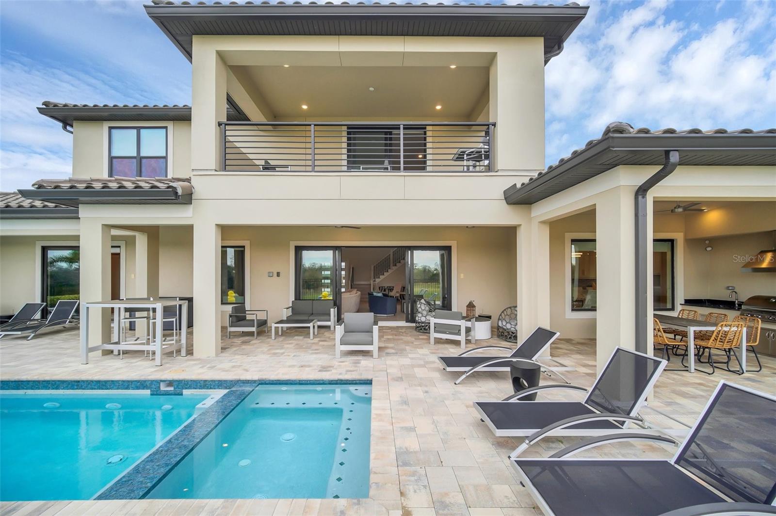 Indulge in the epitome of luxury and charm with this meticulously crafted residence in Bears Den. Strategically placed on an expansive double lot, surrounded by wrought iron fencing and overlooking the 17th Traditions fairway, this home ensures both privacy and a view to behold. What's more, it comes with an included ACTIVE REUNION MEMBERSHIP! Perfect investment opportunity with a tenant in place! Featuring 6 bedrooms and 6 baths, this property is more than a home; it's a captivating retreat adorned with lavish amenities and a carefully designed living space. Upon entry, be prepared to be captivated by soaring ceilings and amazing views, creating an atmosphere of grandeur. The open-plan kitchen, living, and dining area is an entertainer's haven, radiating warmth and hospitality. The kitchen itself is a culinary masterpiece, boasting double islands with waterfall white quartz countertops, extra-height cabinetry, stainless steel top-end appliances – a dream for any culinary enthusiast. Step outside into the oasis, where a custom saltwater pool, hot tub, and sun shelf await, all set against a backdrop of travertine pavers. A summer kitchen with a gas grill and shaded lanai completes the outdoor paradise, providing a haven for both dining and leisure. The first-floor master suite is a sanctuary of opulence, featuring a private dressing room walk-in closet and a spacious ensuite bathroom with a double vanity, walk-in shower, and a luxurious soaker tub. Three additional main floor bedrooms, two with ensuite baths, comfortably accommodate family members and guests. An exceptional games room garage conversion adds a layer of excitement, equipped with various gaming machines for both adults and children. Moving to the upper level, a loft space with a game table and media area serves as an additional recreational area complete with a balcony overlooking the expansive view. Custom Imagineered themed bedrooms make this residence a true vacation destination. Over $200,000 in design upgrades combined with an exceptional high-end furniture collection make every corner of this property a testament to luxury and imagination. Never before rented, this home has been strictly used as a second home...and has been appointed that way for the discerning taste. Situated within the prestigious Reunion Resort, known for its championship golf courses, clubhouses, water park, tennis courts, and more, this property offers an abundance of recreational options. Only 7 miles from Disney, this luxurious residence not only exudes elegance but also provides unparalleled convenience for those seeking a home near one of the world's most iconic entertainment destinations. Don't miss the chance to experience this extraordinary property – schedule your viewing and let the enchantment unfold! Room Feature: Linen Closet In Bath (Primary Bedroom).