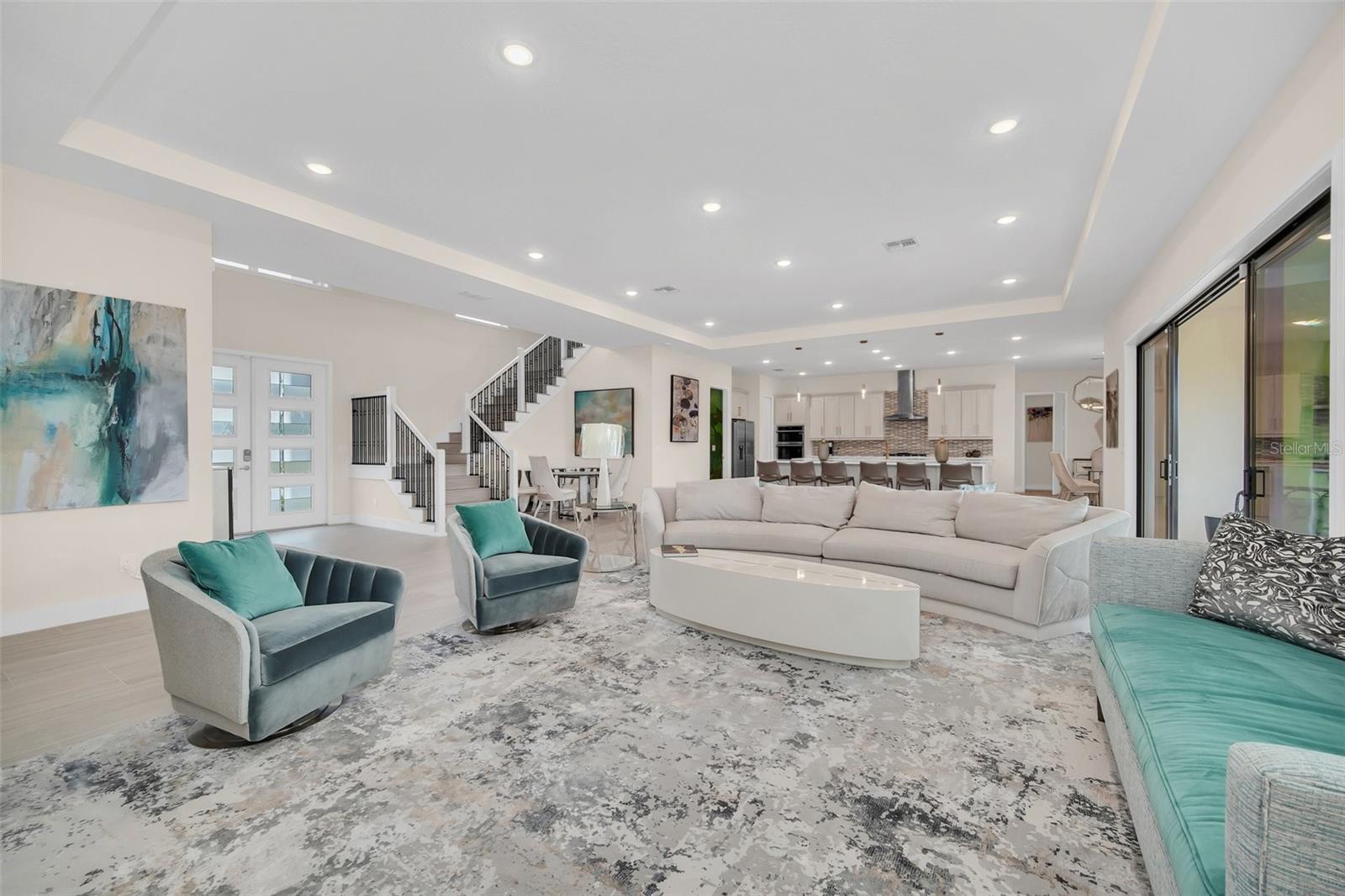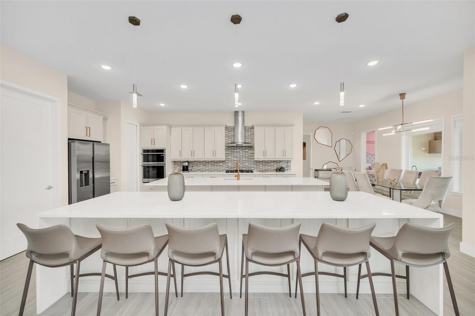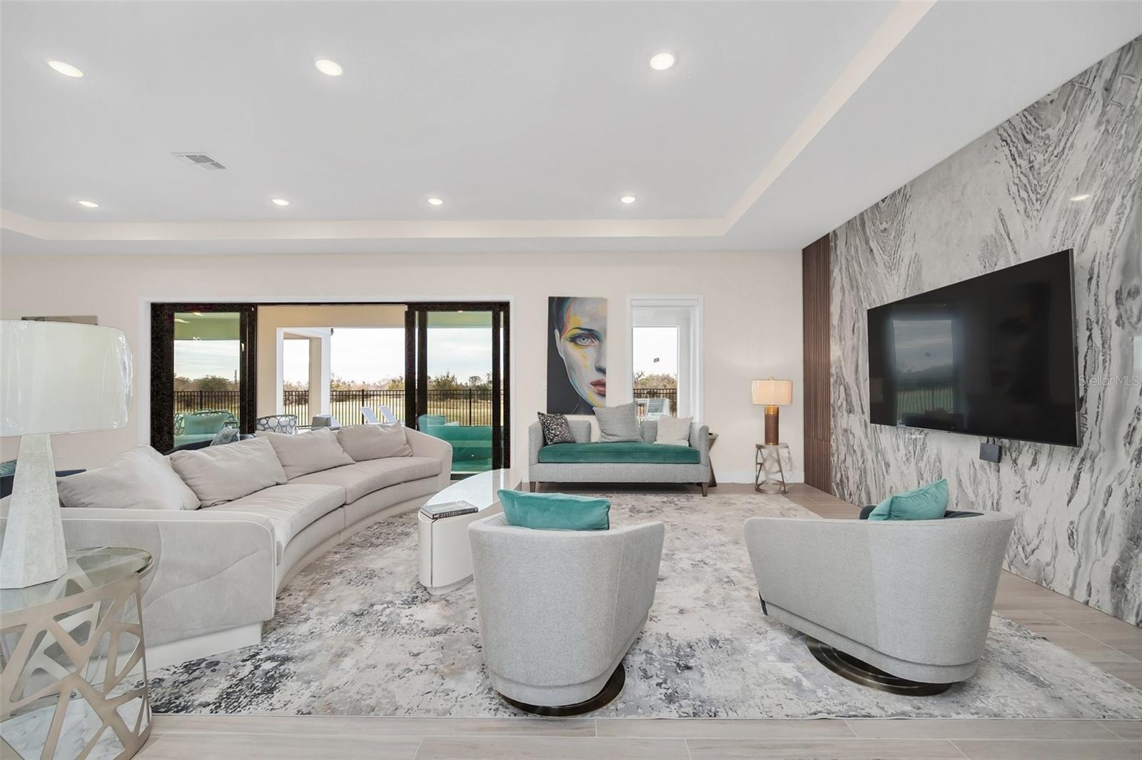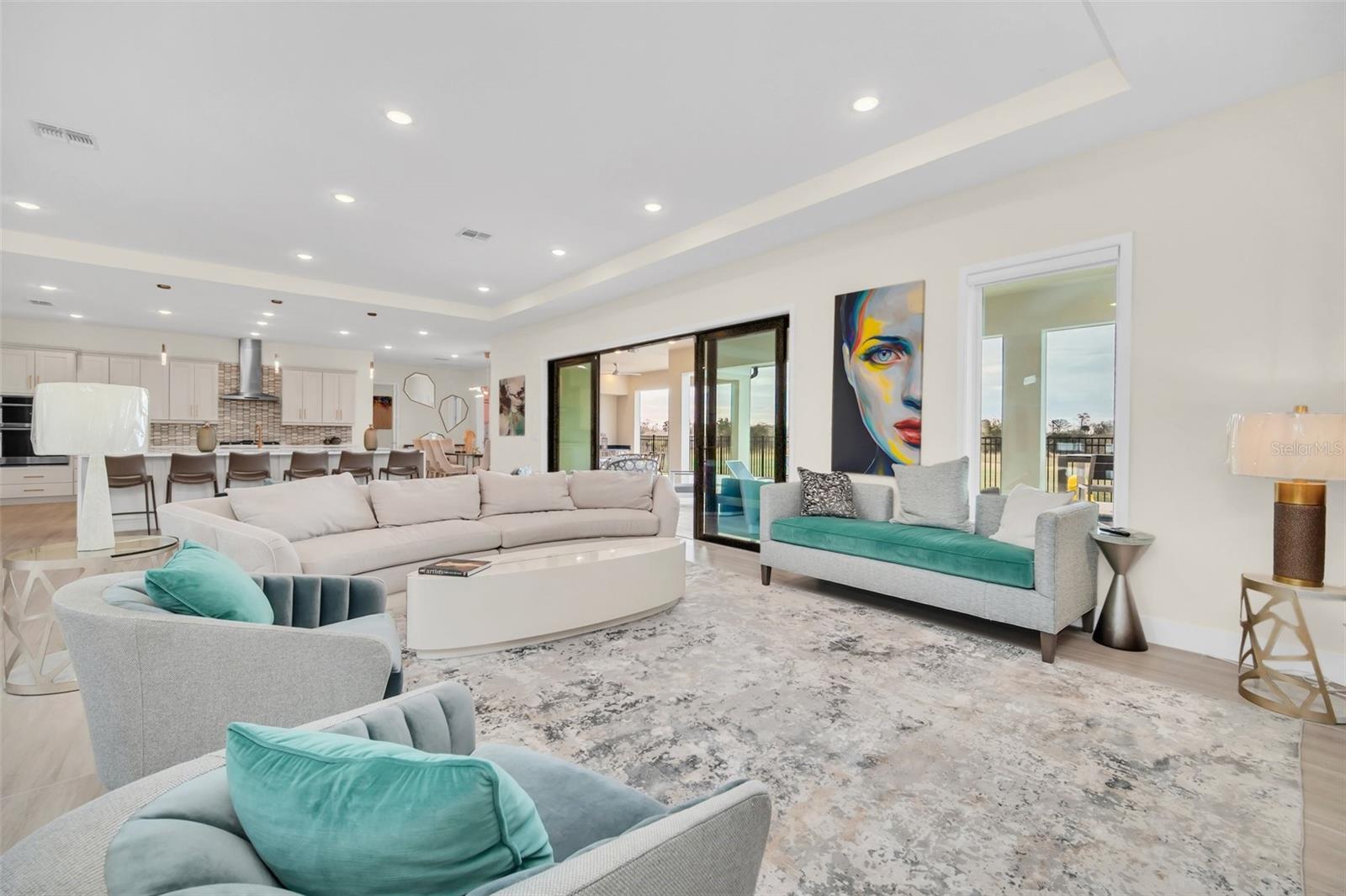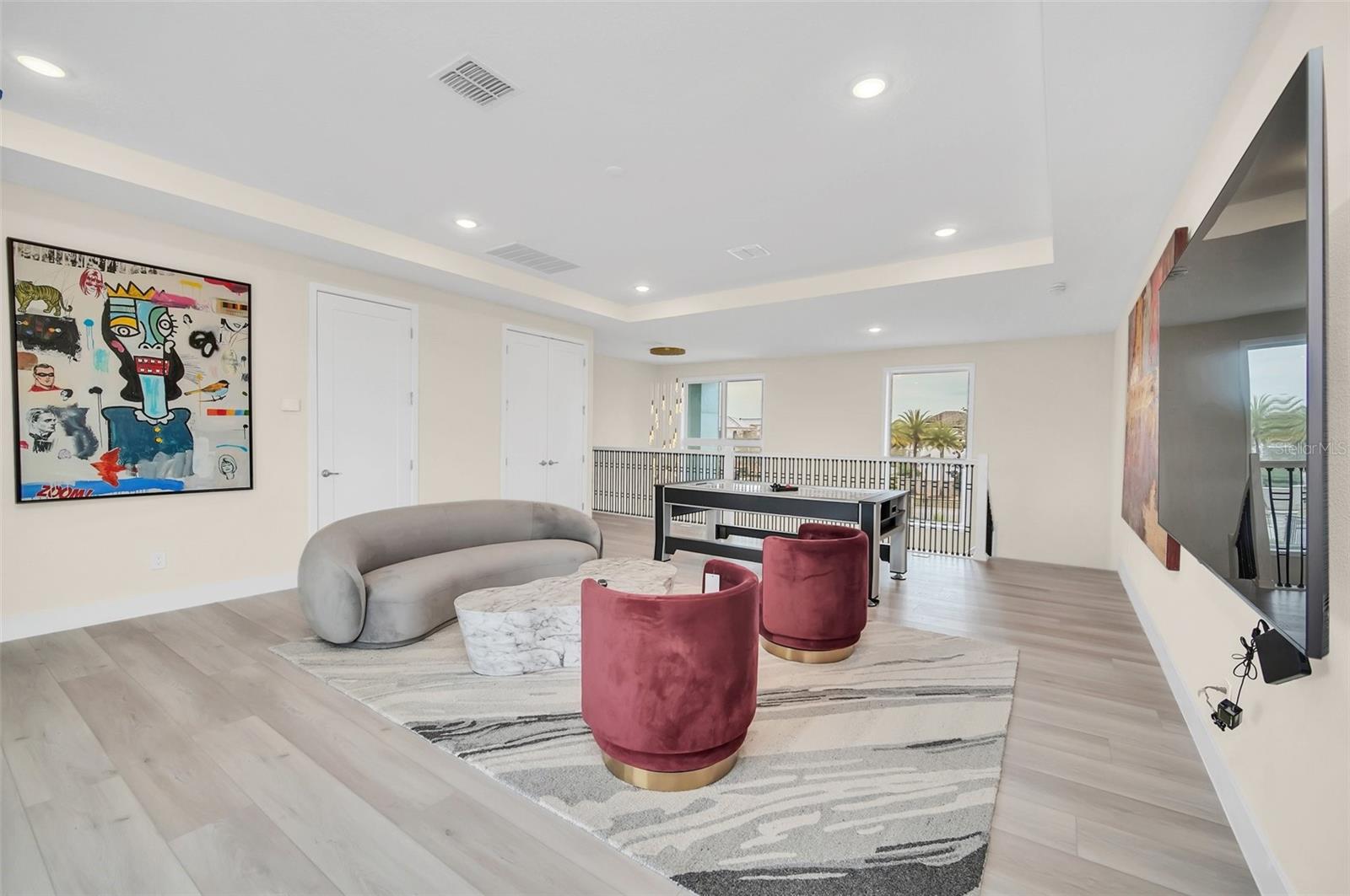 Indulge in the epitome of luxury and charm with this meticulously crafted residence in Bears Den. Strategically placed on an expansive double lot, surrounded by wrought iron fencing and overlooking the 17th Traditions fairway, this home ensures both privacy and a view to behold. What's more, it comes with an included ACTIVE REUNION MEMBERSHIP! Perfect investment opportunity with a tenant in place! Featuring 6 bedrooms and 6 baths, this property is more than a home; it's a captivating retreat adorned with lavish amenities and a carefully designed living space. Upon entry, be prepared to be captivated by soaring ceilings and amazing views, creating an atmosphere of grandeur. The open-plan kitchen, living, and dining area is an entertainer's haven, radiating warmth and hospitality. The kitchen itself is a culinary masterpiece, boasting double islands with waterfall white quartz countertops, extra-height cabinetry, stainless steel top-end appliances – a dream for any culinary enthusiast. Step outside into the oasis, where a custom saltwater pool, hot tub, and sun shelf await, all set against a backdrop of travertine pavers. A summer kitchen with a gas grill and shaded lanai completes the outdoor paradise, providing a haven for both dining and leisure. The first-floor master suite is a sanctuary of opulence, featuring a private dressing room walk-in closet and a spacious ensuite bathroom with a double vanity, walk-in shower, and a luxurious soaker tub. Three additional main floor bedrooms, two with ensuite baths, comfortably accommodate family members and guests. An exceptional games room garage conversion adds a layer of excitement, equipped with various gaming machines for both adults and children. Moving to the upper level, a loft space with a game table and media area serves as an additional recreational area complete with a balcony overlooking the expansive view. Custom Imagineered themed bedrooms make this residence a true vacation destination. Over $200,000 in design upgrades combined with an exceptional high-end furniture collection make every corner of this property a testament to luxury and imagination. Never before rented, this home has been strictly used as a second home...and has been appointed that way for the discerning taste. Situated within the prestigious Reunion Resort, known for its championship golf courses, clubhouses, water park, tennis courts, and more, this property offers an abundance of recreational options. Only 7 miles from Disney, this luxurious residence not only exudes elegance but also provides unparalleled convenience for those seeking a home near one of the world's most iconic entertainment destinations. Don't miss the chance to experience this extraordinary property – schedule your viewing and let the enchantment unfold! Room Feature: Linen Closet In Bath (Primary Bedroom).