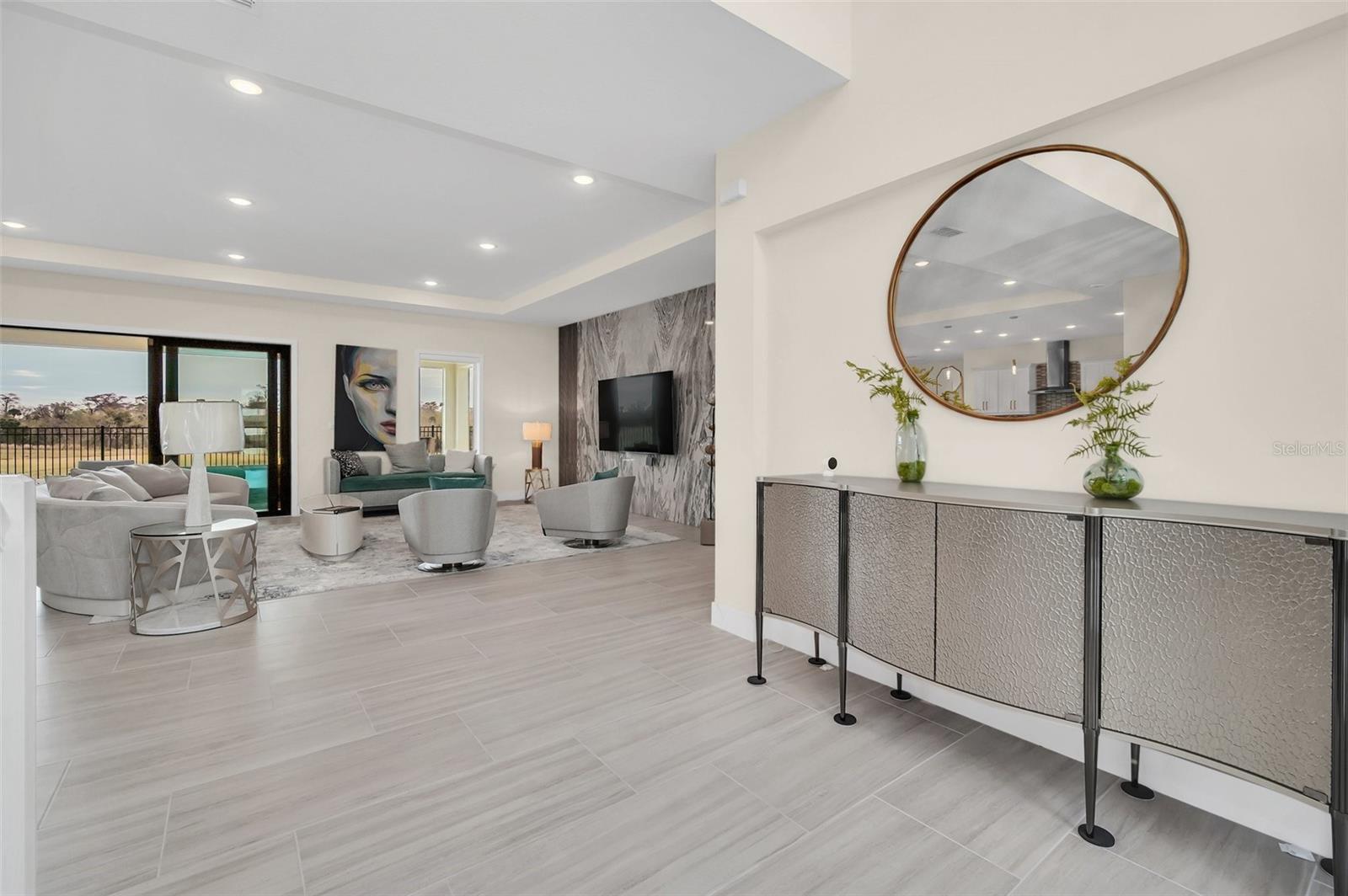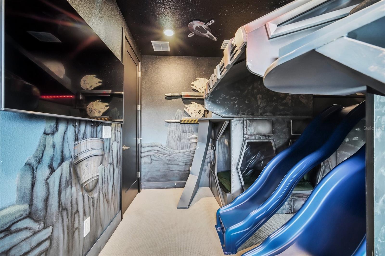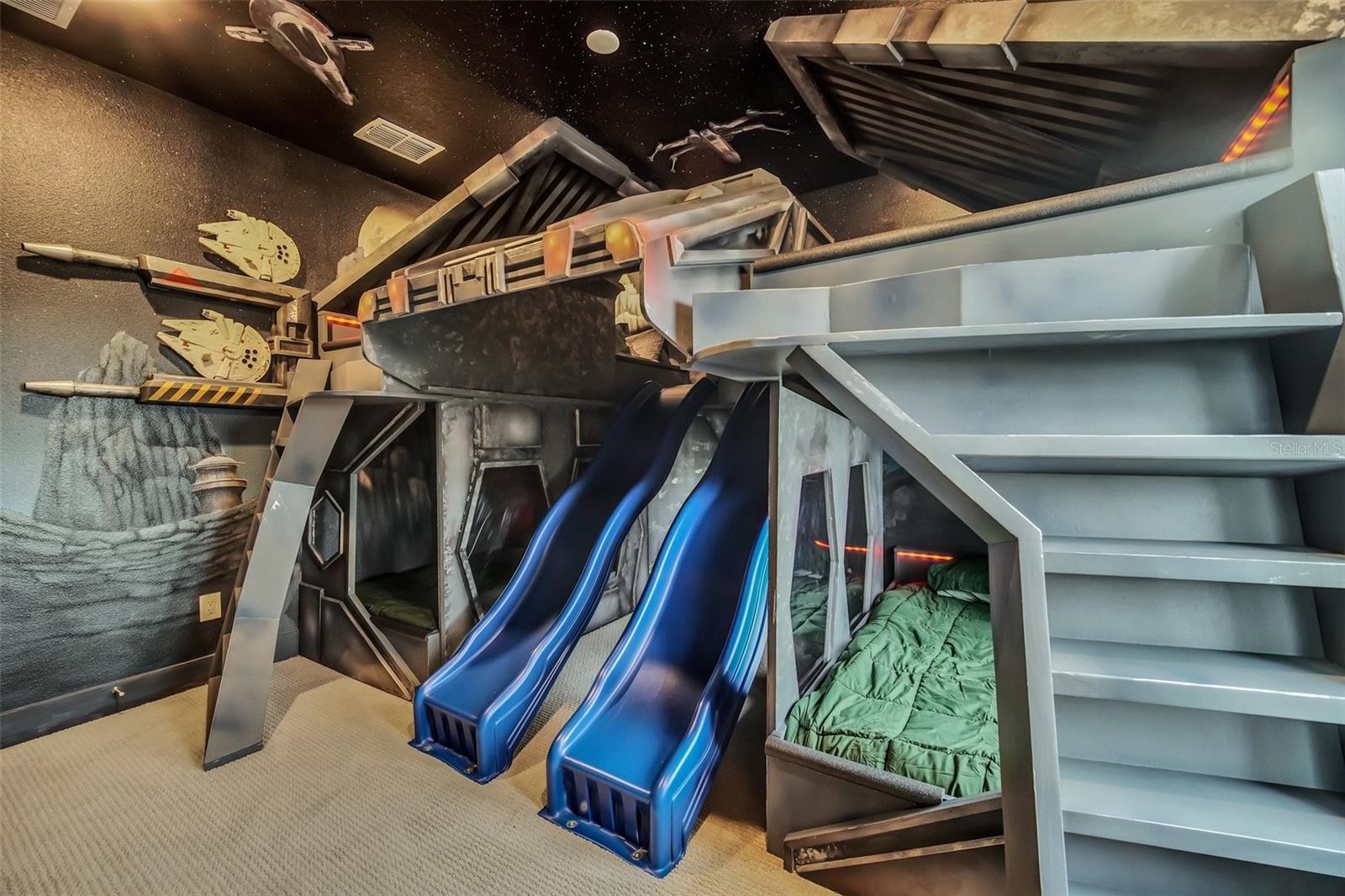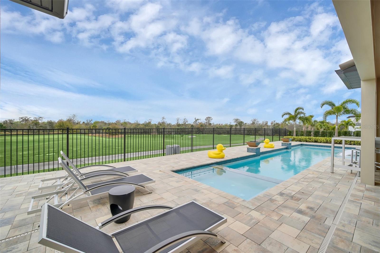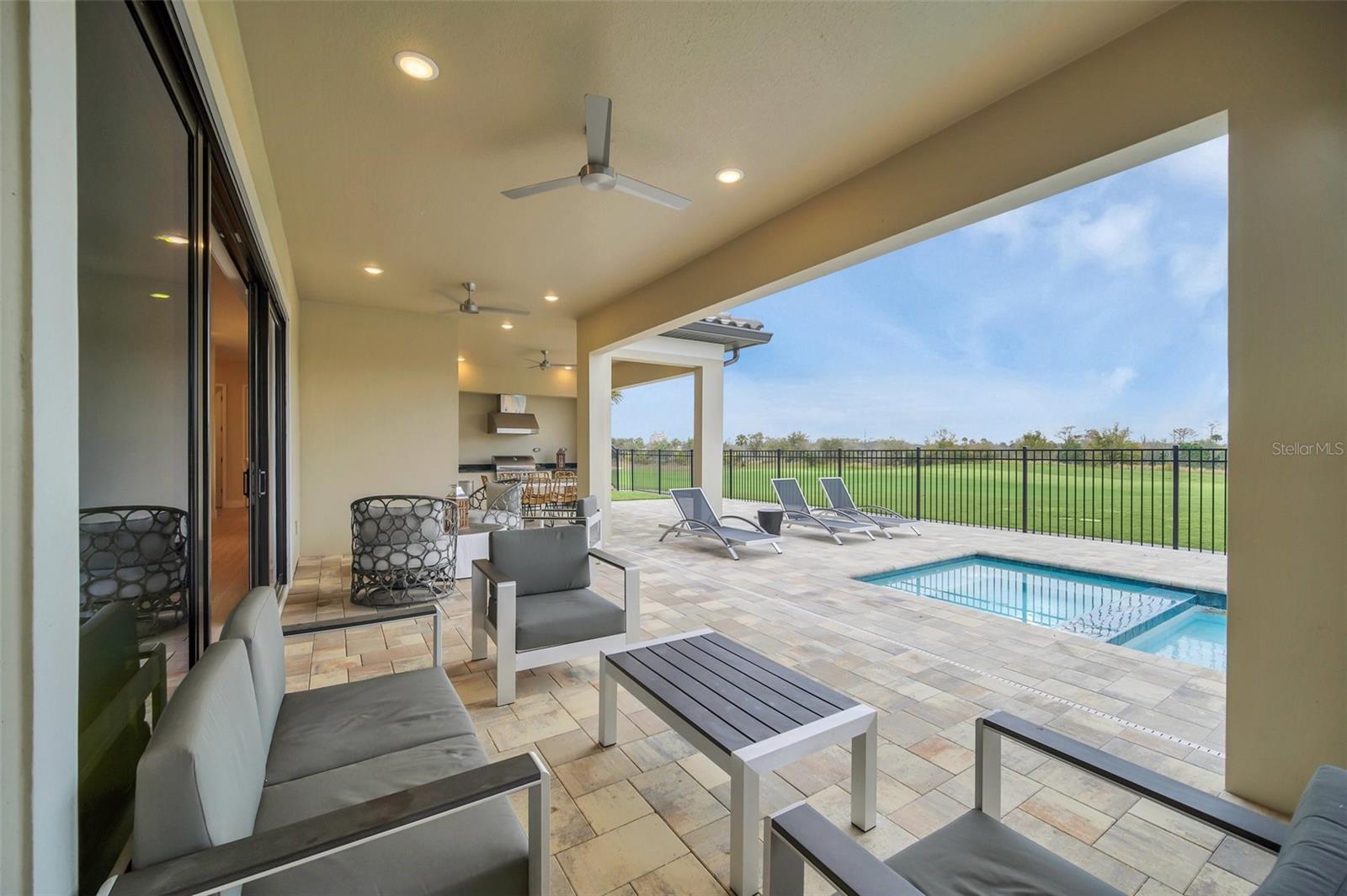 Indulge in the epitome of luxury and charm with this meticulously crafted residence in Bears Den. Strategically placed on an expansive double lot, surrounded by wrought iron fencing and overlooking the 17th Traditions fairway, this home ensures both privacy and a view to behold. What's more, it comes with an included ACTIVE REUNION MEMBERSHIP! Perfect investment opportunity with a tenant in place! Featuring 6 bedrooms and 6 baths, this property is more than a home; it's a captivating retreat adorned with lavish amenities and a carefully designed living space. Upon entry, be prepared to be captivated by soaring ceilings and amazing views, creating an atmosphere of grandeur. The open-plan kitchen, living, and dining area is an entertainer's haven, radiating warmth and hospitality. The kitchen itself is a culinary masterpiece, boasting double islands with waterfall white quartz countertops, extra-height cabinetry, stainless steel top-end appliances – a dream for any culinary enthusiast. Step outside into the oasis, where a custom saltwater pool, hot tub, and sun shelf await, all set against a backdrop of travertine pavers. A summer kitchen with a gas grill and shaded lanai completes the outdoor paradise, providing a haven for both dining and leisure. The first-floor master suite is a sanctuary of opulence, featuring a private dressing room walk-in closet and a spacious ensuite bathroom with a double vanity, walk-in shower, and a luxurious soaker tub. Three additional main floor bedrooms, two with ensuite baths, comfortably accommodate family members and guests. An exceptional games room garage conversion adds a layer of excitement, equipped with various gaming machines for both adults and children. Moving to the upper level, a loft space with a game table and media area serves as an additional recreational area complete with a balcony overlooking the expansive view. Custom Imagineered themed bedrooms make this residence a true vacation destination. Over $200,000 in design upgrades combined with an exceptional high-end furniture collection make every corner of this property a testament to luxury and imagination. Never before rented, this home has been strictly used as a second home...and has been appointed that way for the discerning taste. Situated within the prestigious Reunion Resort, known for its championship golf courses, clubhouses, water park, tennis courts, and more, this property offers an abundance of recreational options. Only 7 miles from Disney, this luxurious residence not only exudes elegance but also provides unparalleled convenience for those seeking a home near one of the world's most iconic entertainment destinations. Don't miss the chance to experience this extraordinary property – schedule your viewing and let the enchantment unfold! Room Feature: Linen Closet In Bath (Primary Bedroom).