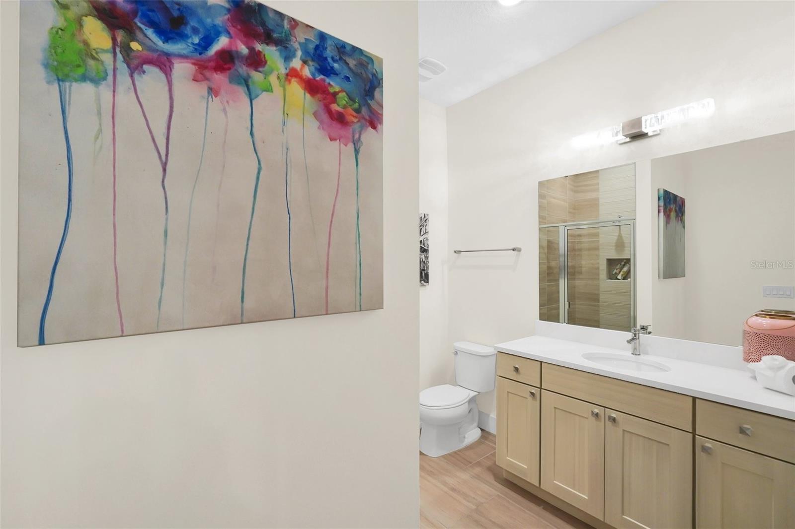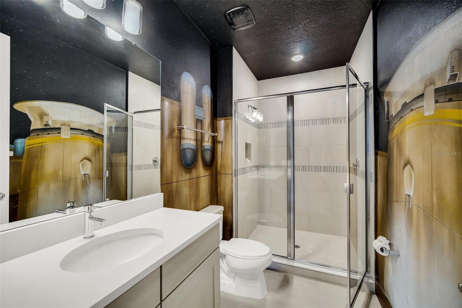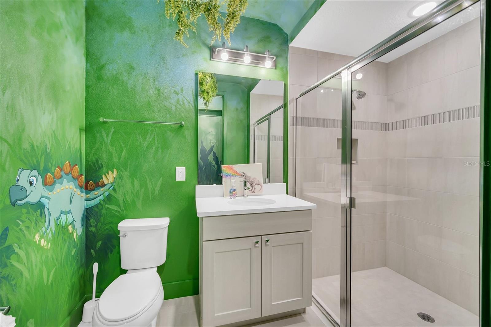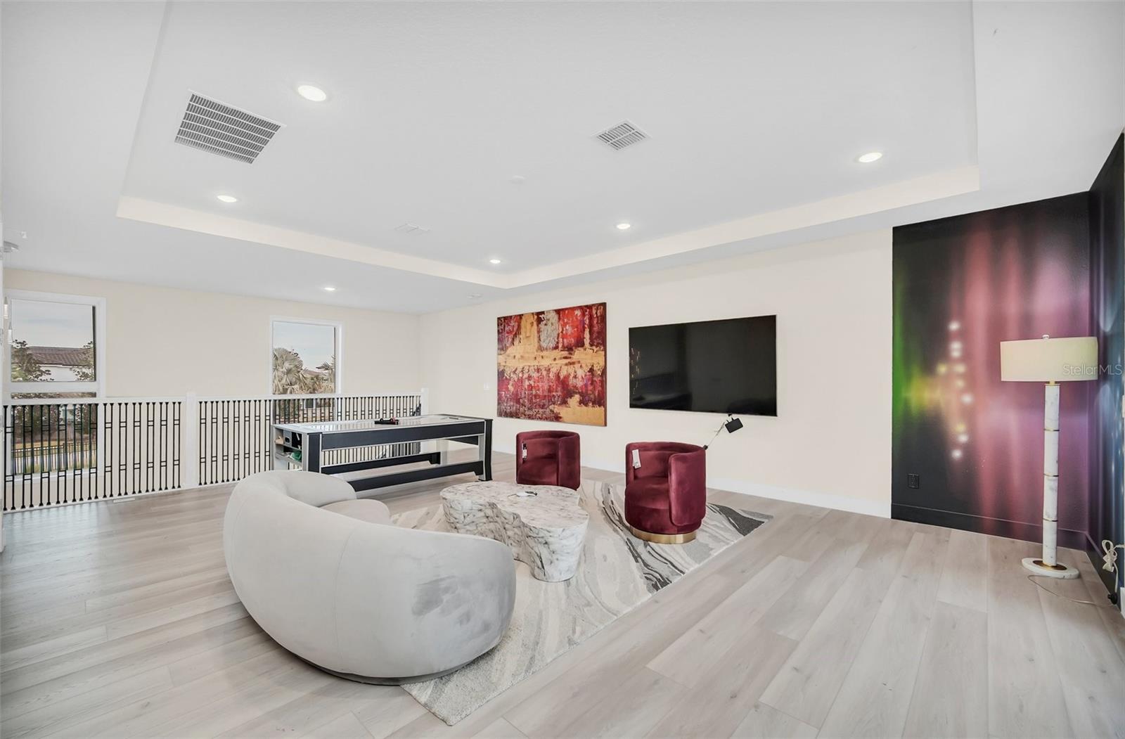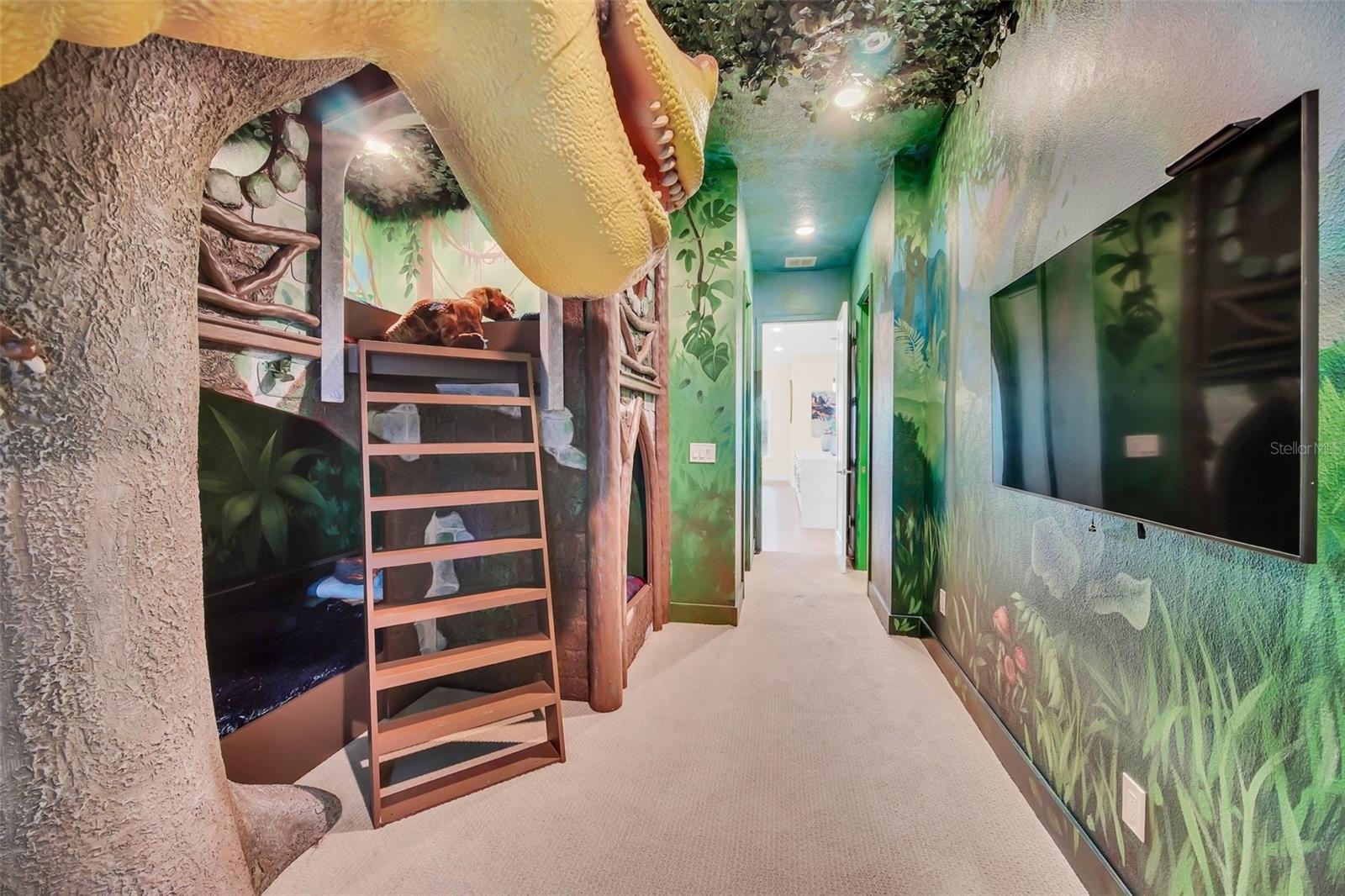 Indulge in the epitome of luxury and charm with this meticulously crafted residence in Bears Den. Strategically placed on an expansive double lot, surrounded by wrought iron fencing and overlooking the 17th Traditions fairway, this home ensures both privacy and a view to behold. What's more, it comes with an included ACTIVE REUNION MEMBERSHIP! Perfect investment opportunity with a tenant in place! Featuring 6 bedrooms and 6 baths, this property is more than a home; it's a captivating retreat adorned with lavish amenities and a carefully designed living space. Upon entry, be prepared to be captivated by soaring ceilings and amazing views, creating an atmosphere of grandeur. The open-plan kitchen, living, and dining area is an entertainer's haven, radiating warmth and hospitality. The kitchen itself is a culinary masterpiece, boasting double islands with waterfall white quartz countertops, extra-height cabinetry, stainless steel top-end appliances – a dream for any culinary enthusiast. Step outside into the oasis, where a custom saltwater pool, hot tub, and sun shelf await, all set against a backdrop of travertine pavers. A summer kitchen with a gas grill and shaded lanai completes the outdoor paradise, providing a haven for both dining and leisure. The first-floor master suite is a sanctuary of opulence, featuring a private dressing room walk-in closet and a spacious ensuite bathroom with a double vanity, walk-in shower, and a luxurious soaker tub. Three additional main floor bedrooms, two with ensuite baths, comfortably accommodate family members and guests. An exceptional games room garage conversion adds a layer of excitement, equipped with various gaming machines for both adults and children. Moving to the upper level, a loft space with a game table and media area serves as an additional recreational area complete with a balcony overlooking the expansive view. Custom Imagineered themed bedrooms make this residence a true vacation destination. Over $200,000 in design upgrades combined with an exceptional high-end furniture collection make every corner of this property a testament to luxury and imagination. Never before rented, this home has been strictly used as a second home...and has been appointed that way for the discerning taste. Situated within the prestigious Reunion Resort, known for its championship golf courses, clubhouses, water park, tennis courts, and more, this property offers an abundance of recreational options. Only 7 miles from Disney, this luxurious residence not only exudes elegance but also provides unparalleled convenience for those seeking a home near one of the world's most iconic entertainment destinations. Don't miss the chance to experience this extraordinary property – schedule your viewing and let the enchantment unfold! Room Feature: Linen Closet In Bath (Primary Bedroom).