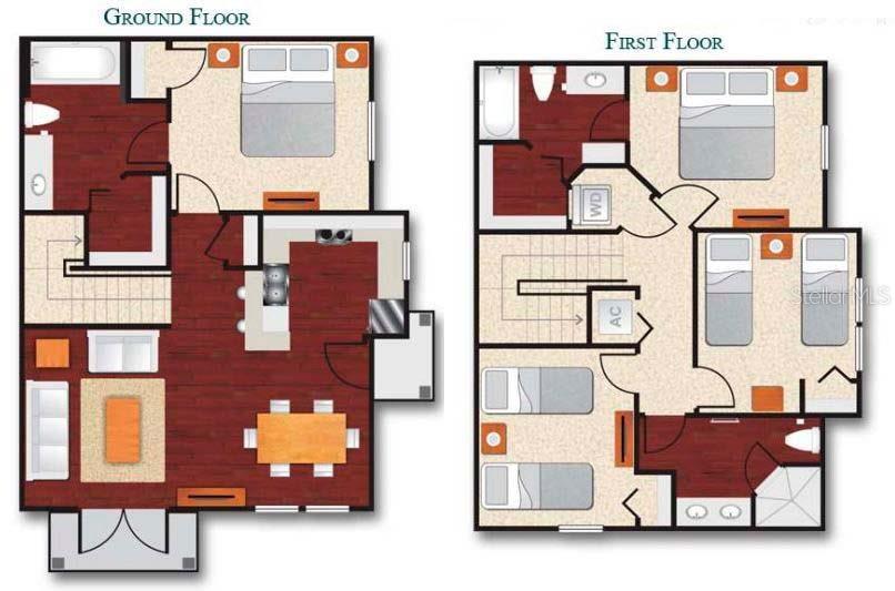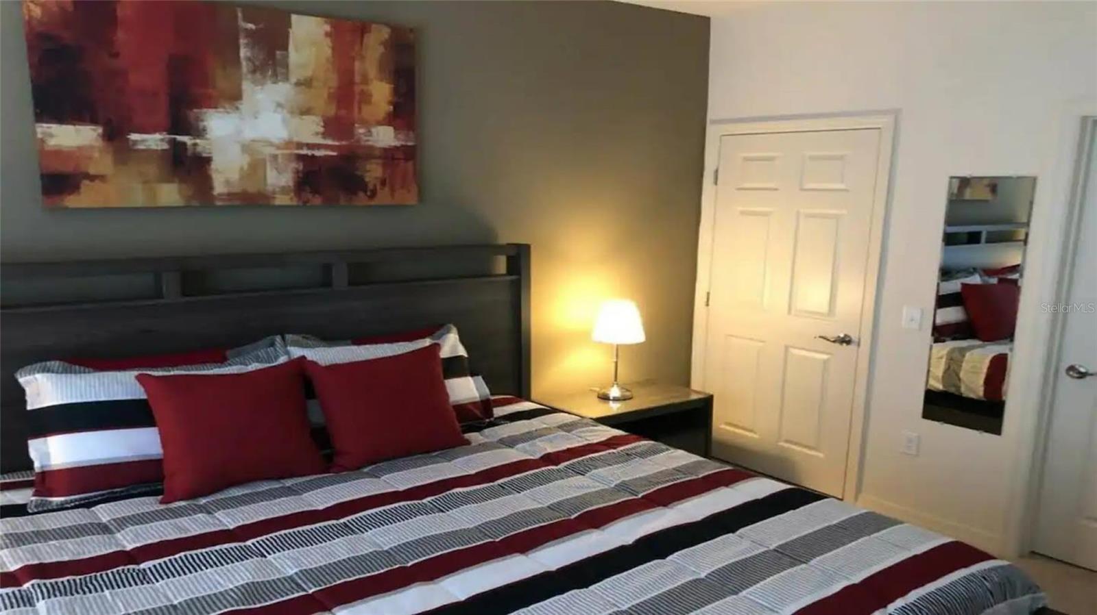 Premium location for tourist rental! Own your own fully furnished townhouse for 10 people in West Lucaya Village, a resort-style community with pool, spa, clubhouse, gym, playground, BBQ area, and more. Just 5 min from Disney parks, about 30 minutes from Universal parks. The house is a charming two-story residence with a well-designed layout offering comfort and privacy to its residents. Upstairs, there are 3 cozy bedrooms. The first bedroom features two single beds, ideal for guests or family members preferring their own space. The second bedroom on this floor is equipped with two spacious double beds, perfect for rest after a day full of activities. Additionally, on this floor, there is a shared full bathroom for added convenience. The gem of the upper floor is the master suite, providing an oasis of tranquility and luxury. This suite features a comfortable queen-size bed for supreme nights of rest, along with a private bathroom ensuring privacy and exclusive comfort for the occupants of this room. On the ground floor, there is another well-equipped bedroom, perfect for those preferring the convenience of being on the main level. This bedroom features a luxurious king-size bed and a private bathroom, providing a private and comfortable retreat for the occupant. The house as a whole offers a perfect balance between intimate spaces and common areas, ideal for large families or groups of friends seeking a comfortable and memorable stay. Its well-thought-out design and cozy decor make this house feel like home from the moment you step through the door. It features laminate flooring on the first floor, carpet on the second floor, freshly painted, new air conditioning compressor, master bedroom/en-suite bathroom on the first floor. The second floor has 2 bedrooms, one with a queen bed and the other with 2 beds. The living room sofa is a sleeper sofa. The house accommodates 12 people and is fully equipped for guests. Expenses include cable/internet and use of all amenities by the owner or guests without additional charges.