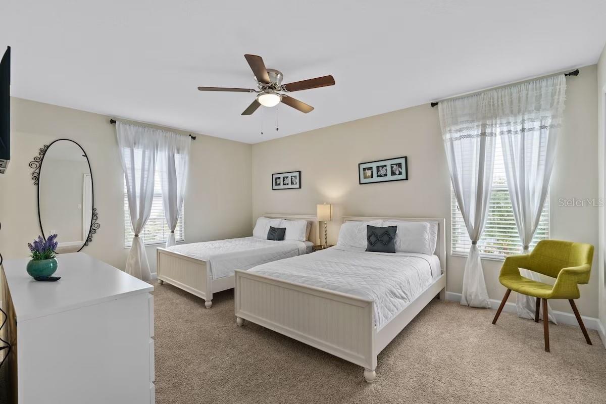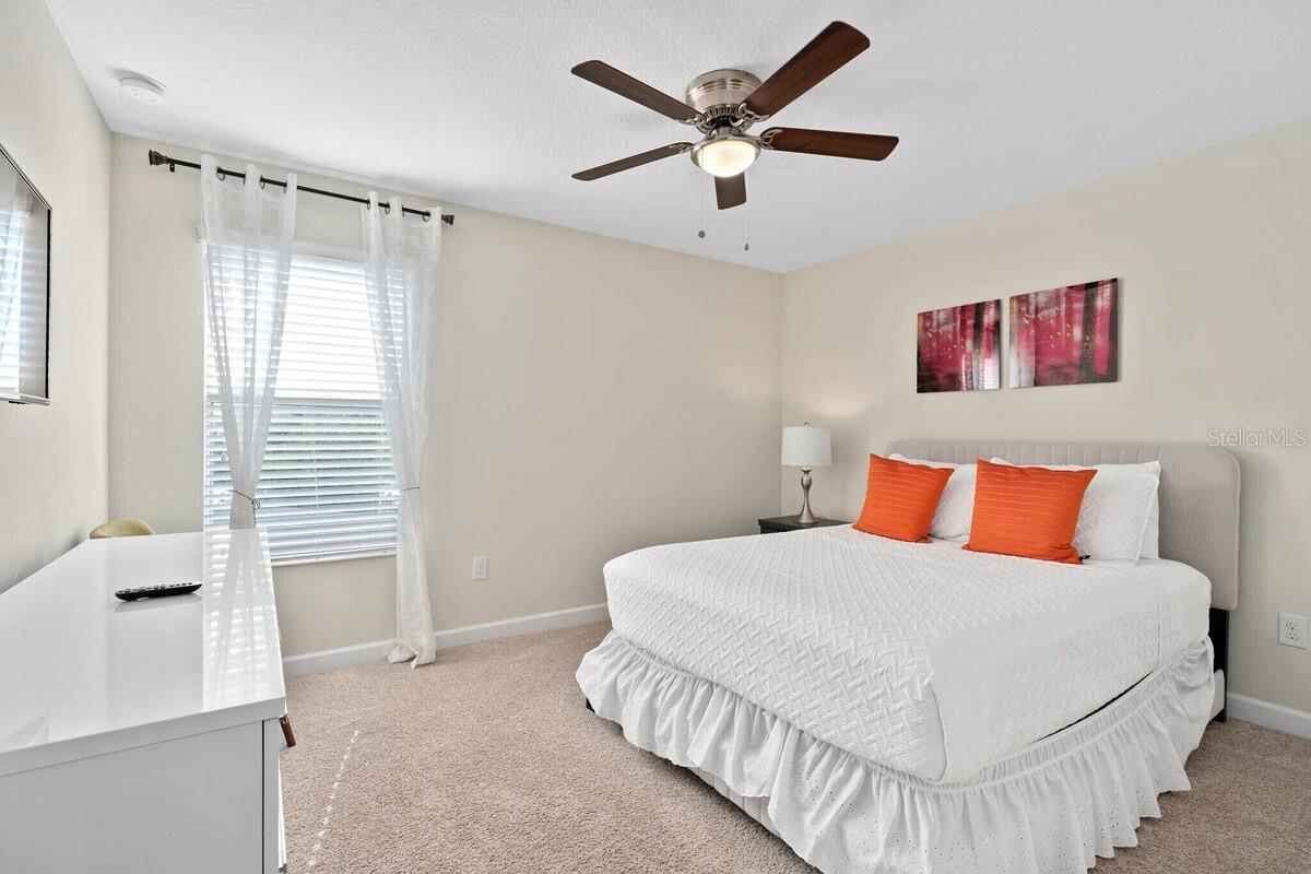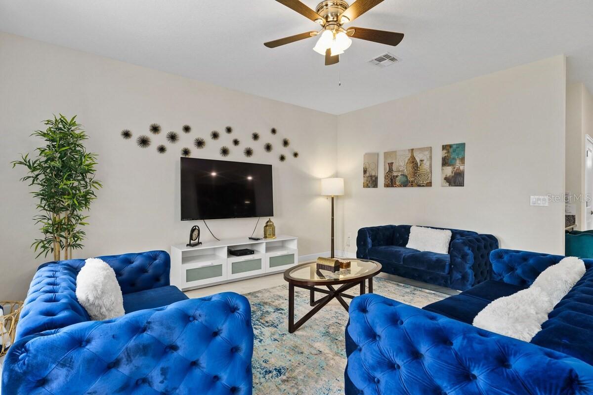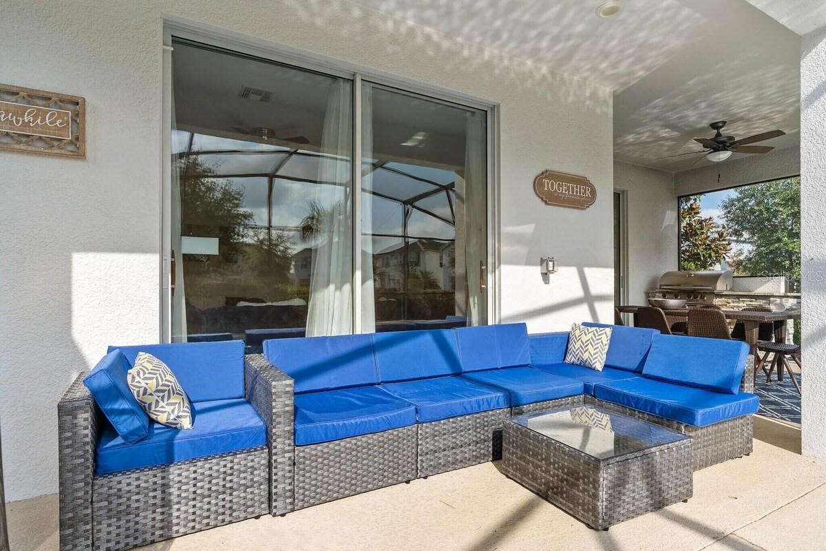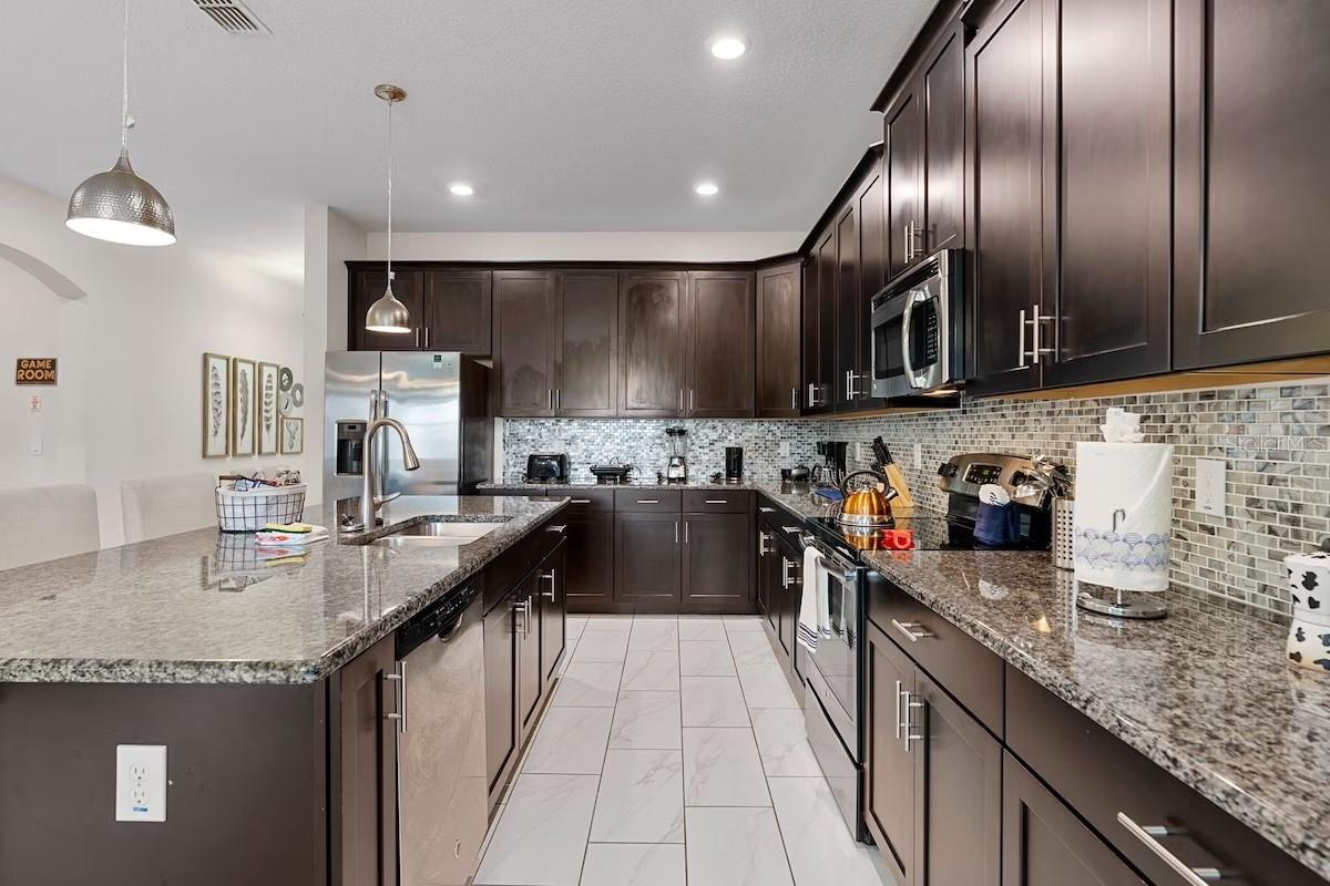 **GREAT INVESTMENT OPPORTUNITY!** This Single family, CORNER LOT, located in the gated resort community of Storey Lake, offers a luxurious lifestyle with a FULLY FURNISHED interior and peaceful surroundings. This NORTH FACING home allows TONS of natural light to pour through all day long! The exceptional turnkey residence boasts several contemporary UPGRADES, including a new washing machine installed in 2024, a new AC unit and pool pump both installed in 2023, and a newly designed entertainment area in the garage. Inside, the living room features a new sofa and fresh window coverings throughout. The open-concept kitchen includes granite countertops and stainless steel appliances, and it overlooks the family room with sliding glass doors, high ceilings, and a designated eating space. This residence has a primary bedroom conveniently located both downstairs and upstairs. Two of the bedrooms are equipped with double beds and en suite bathrooms, while the upstairs gathering space is perfect for playing games and entertaining. The one-car garage has been efficiently converted into a gameroom, featuring an air hockey table, a pool table, and ample seating. This property offers fantastic potential for generating substantial income through short-term rentals; it is currently an active rental generating THOUSANDS of dollars in revenue each year. With six bedrooms, five bathrooms, a spacious bonus room upstairs, and the corner-lot location, this home is designed for comfort and convenience. The private pool and jacuzzi, along with a large patio, create an ideal setting for relaxation or entertaining guests. Within the Storey Lake community, residents can enjoy a variety of amenities, including a lazy river, community pool, recreational facility, water slides, volleyball courts, and a clubhouse. The location is conveniently close to popular theme parks like Disney, Universal, and Animal Kingdom, which are just a 20-minute drive away. Whether you prefer to take advantage of the luxurious amenities within the community or explore nearby attractions, this property is the perfect second home or short-term rental. Come check out this gorgeous home today!