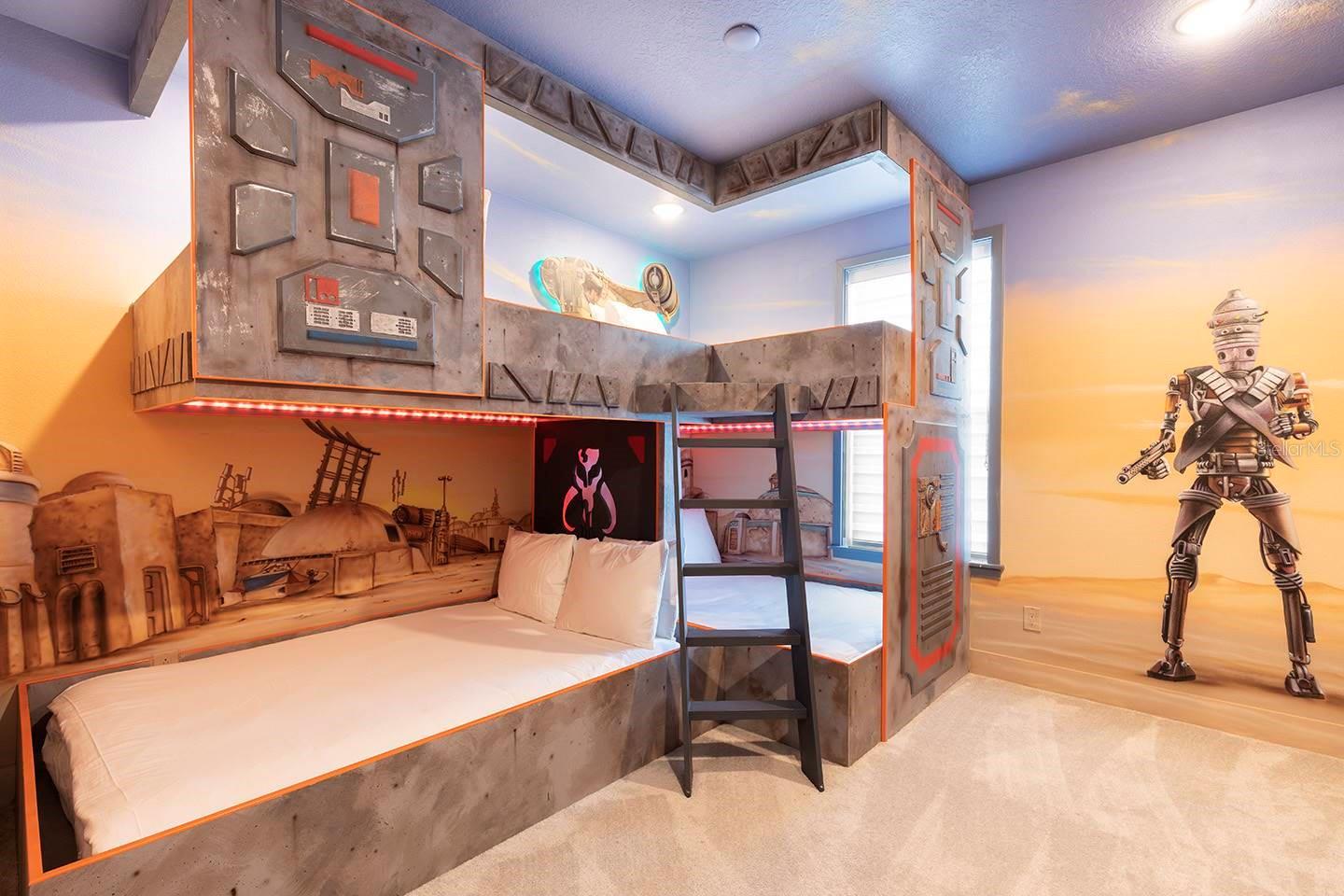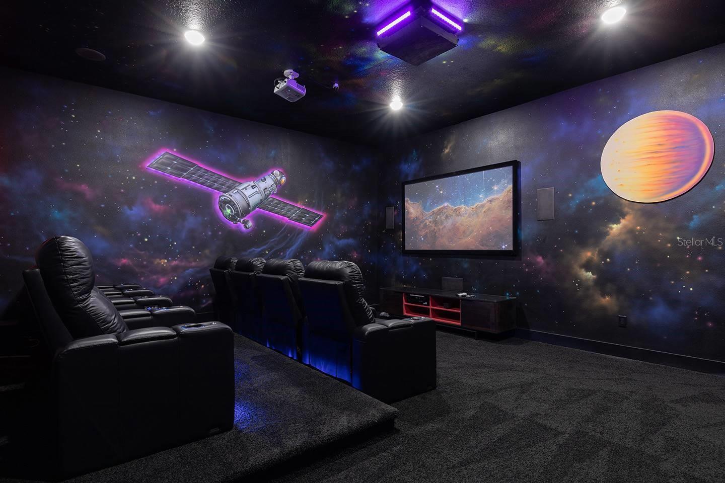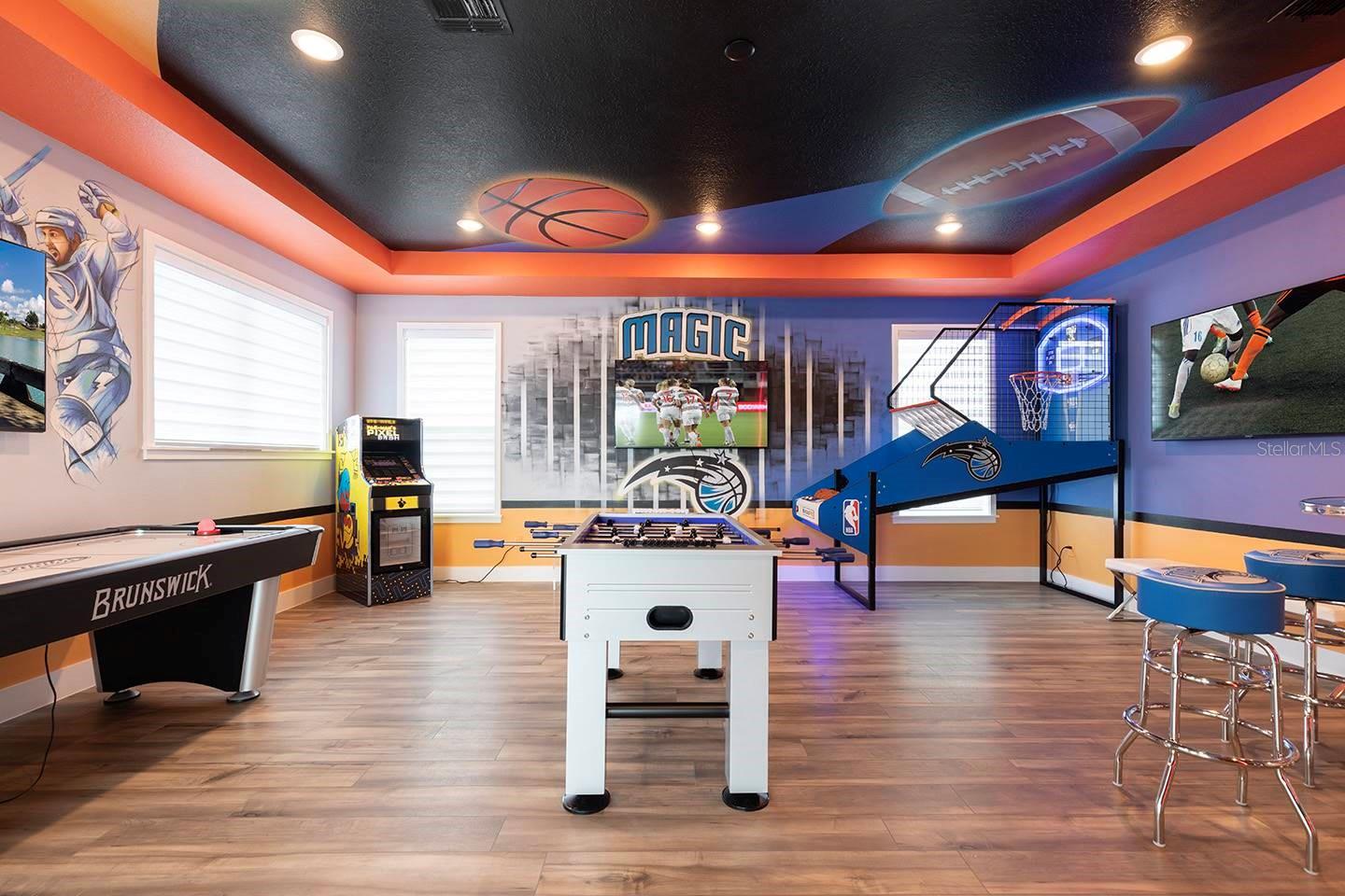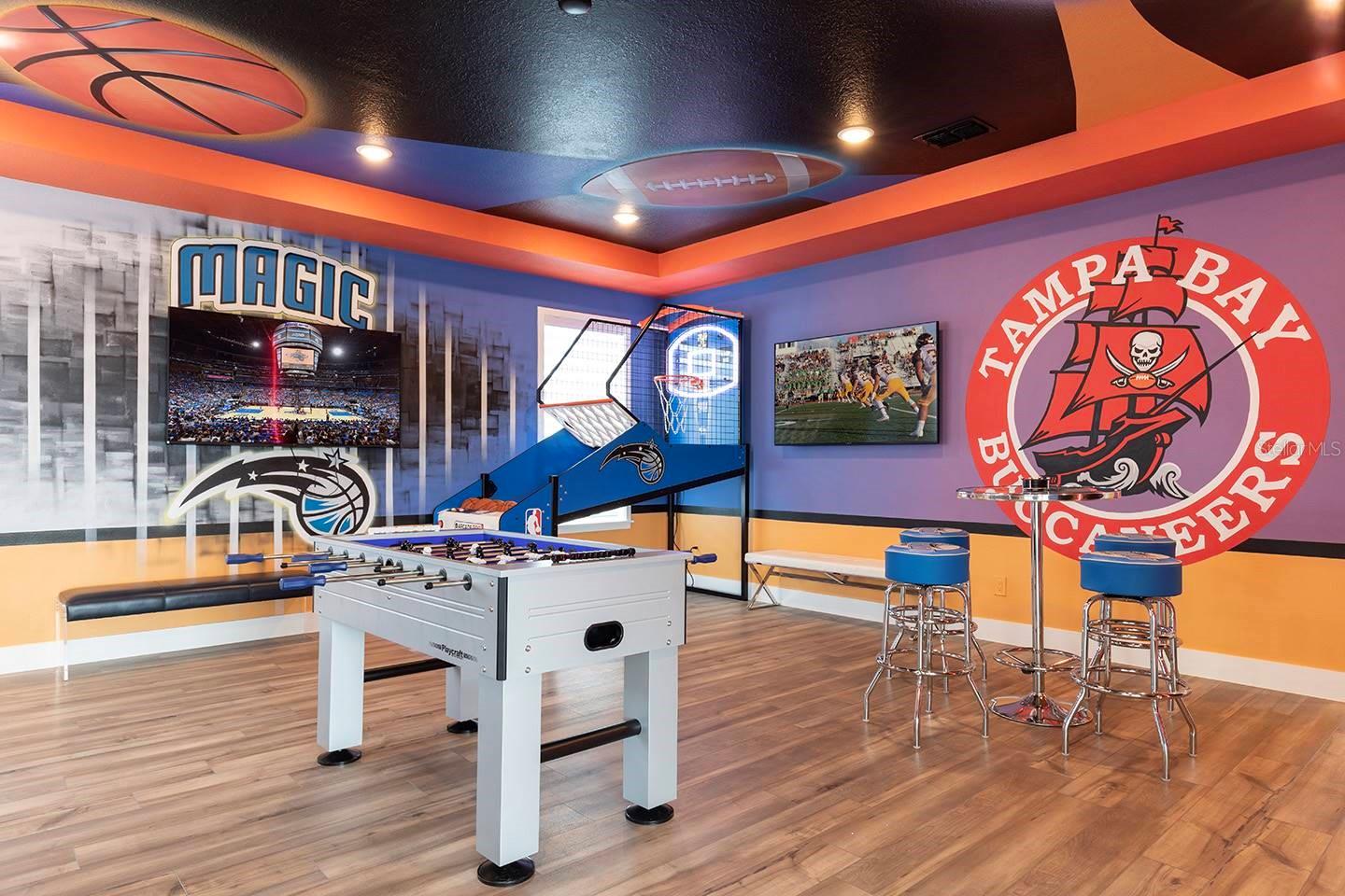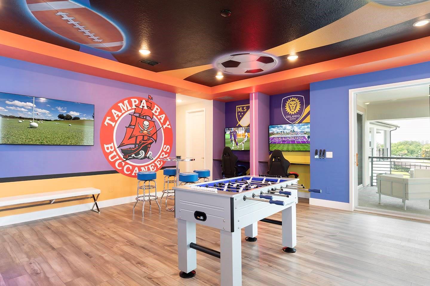 ****Active Reunion Resort Membership Available**** Discover luxury living in this 5-bedroom, 5.5-bathroom home located in the exclusive Bears Den Reunion, Florida. Designed by the acclaimed designer Louise Stapleton, this home boasts a modern design that seamlessly blends style and functionality. The open floor plan is perfect for entertaining, offering ample space for family and guests. Enjoy bonus features such as an 8-seat space themed theatre and a Florida sports-themed game loft area, providing endless entertainment options. Step outside to the backyard oasis, complete with pool and spa combo, offering a perfect retreat for relaxation or gatherings. don't miss out on the opportunity to own this exceptional property.
