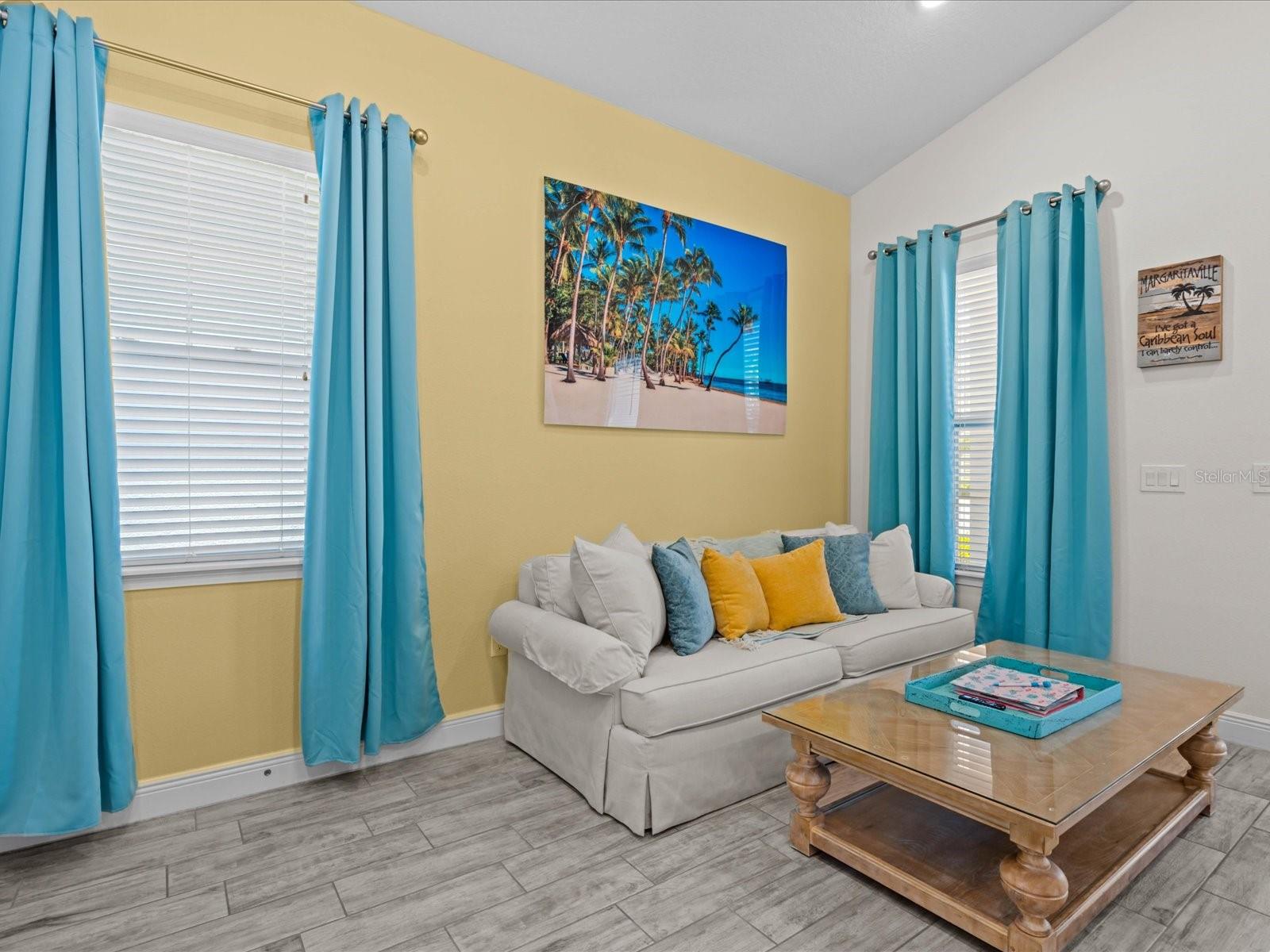 ONCE in a Lifetime opportunity to own, or lease long term $2,200/month, "Limoncello"... the BEST LOCATED 1 BED COTTAGE IN PHASE 1 of MARGARITAVILLE RESORT ORLANDO! Live Here Full Time or use it as a Second Home, or Vacation Rental (current owner can provide financials for past/future bookings upon request). This Charming Turn Key, FULLY FURNISHED, Cottage has it all: Upgraded Interior with Wood Tile Flooring, Quartz Kitchen Countertops, Ceiling Fans and SS Appliances. Master Bedroom Suite has Spacious Back Patio, Back Yard Landscaping with fruit trees and access to the playground. In-Ceiling Speakers in the Living Room Connects to TV or Phone Via App. This listing includes the Margaritaville Approved Furniture and Housewares package, complete with Blinds, Drapes, TVs, Artwork, Kitchen Necessities, Dishware, Linens...etc. Conveniently located minutes from the Disney parks, a state-of-the art water park and newly opened Sunset Walk, a 196,000 square foot shopping and dining district with multiple dining food and beverage options & brand-new dine in movie theater.