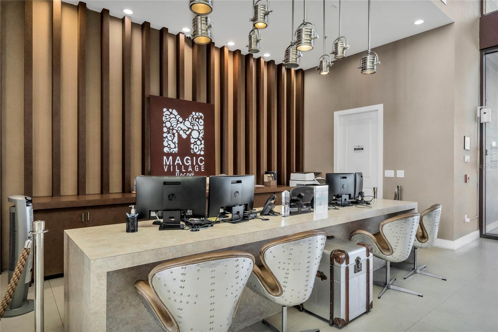 Amazing NEW Price for this Short-term Rental Property with High Occupancy and prime location, right across from the clubhouse, in the sought-after gated vacation home resort Magic Village resort - the closest SHORT TERM RESORT TO DISNEY and its Theme Parks. This unit stands out from the others due to its close location to the Club House (Yes, guests are here to relax and don't want to walk miles to be able to enjoy the pool and all the amenities!). The property is also tastefully decorated and well-maintained. ALL FURNITURE AND DECOR IS INCLUDED! You can just bring a carry-on suitcase and enjoy! The property has high ceilings, tons of natural light, and an outdoor BUILT-IN GRILL. The kitchen comes with HIGH END APPLIANCES, a large dining bar, and modern Italian-style cabinets. The dishwasher was replaced just last year for your convenience. All bedrooms have PRIVATE BATHROOMS, making it appealing for all guests. The BALCONY on the second floor is THE PERFECT place to relax and take in the natural beauty Florida has to offer. Flexibility is for sure one of the highlights of this community: you can manage your vacation home yourself, hire a management company of your choice, or choose the on-site management option. The community offers 24-HOUR CONCIERGE, RESORT STYLE POOL, RESTAURANT, a KIDS' PLAYROOM, AND a FITNESS CENTER. THE HOA also includes Cable TV and Wifi Internet. LOCATION! LOCATION! LOCATION! Take a look at all these amazing places neraby and the short distance: 1.4 miles, DISNEY SPRINGS – 1.6 miles, PREMIUM OUTLET – 8.8 miles, CELEBRATION GOLF CLUB – 5.8 miles, SUPER TARGET – 1.7 miles, WALMART - 1.0 mile CVS PHARMACY - 1.6 miles.