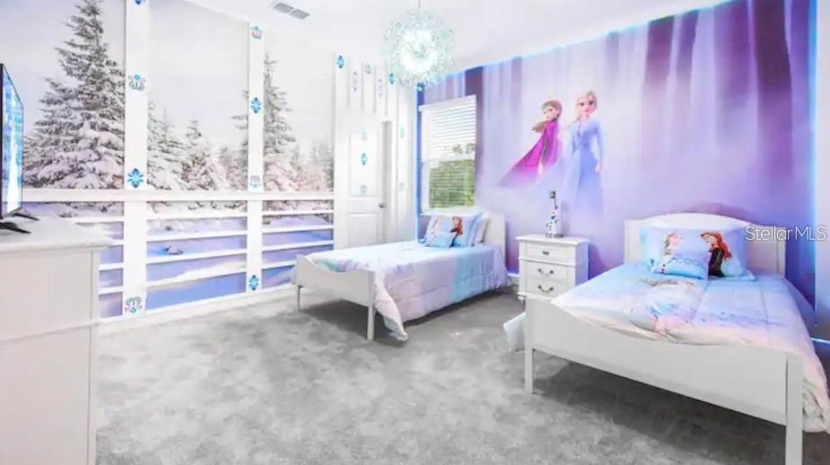 Amazing luxury fully furnished vacation home! Great for investors! LOW HOA! No CDD! Located in the desirable BellaVida, fantastic resort community, surrounded by all kinds of busy restaurants, outlets, gift shops; About 15 minutes to famous Disney theme parks; The community itself provides following conveniences: 24-Hour Manned Gated Access;Professionally Managed HOA; Private Clubhouse & Amenity Center; Movie Theater Room; Cyber Cafe; Spacious Lounge;Zero Entry Resort-style Pool and Spas; Fitness Center; Basketball Court; Sand Volleyball Court; Tranquil Pond Views.This house with an open floor concept, 12 bedrooms, 11.5 baths, a gourmet kitchen with stainless steel appliances, quartz counter tops, wood cabinets and a huge island, overlooking an amazing outdoor covered patio with a screen enclosed pool. The first floor also features 4 bedrooms including one master suite. On the second floor there is a large family room and 8 more bedrooms including another master suite.You can rent whole house on AirBnb for a lucrative income or rent each room separately to make a steady income. Schedule your visit and see what this property and its location have to offer!