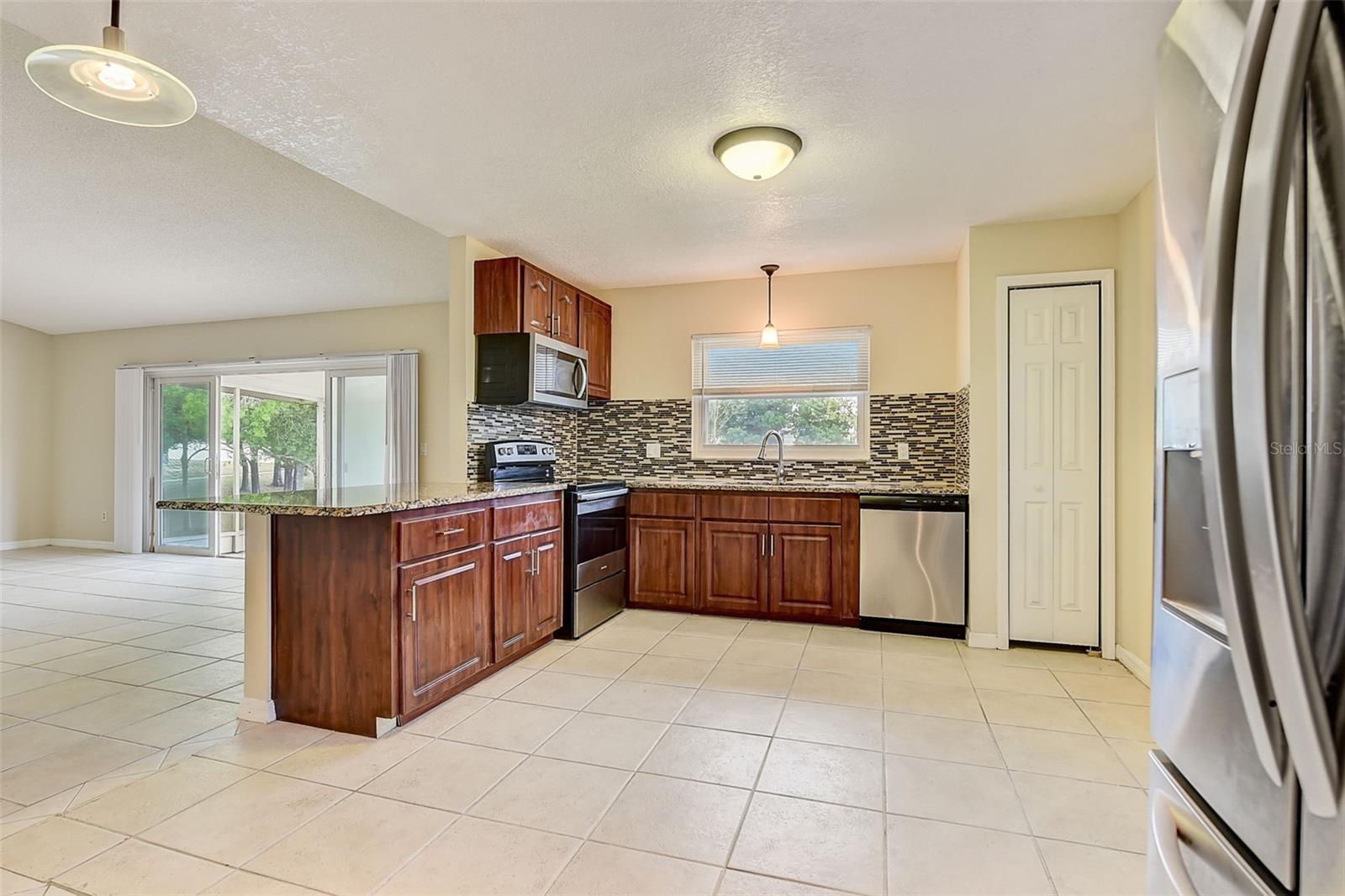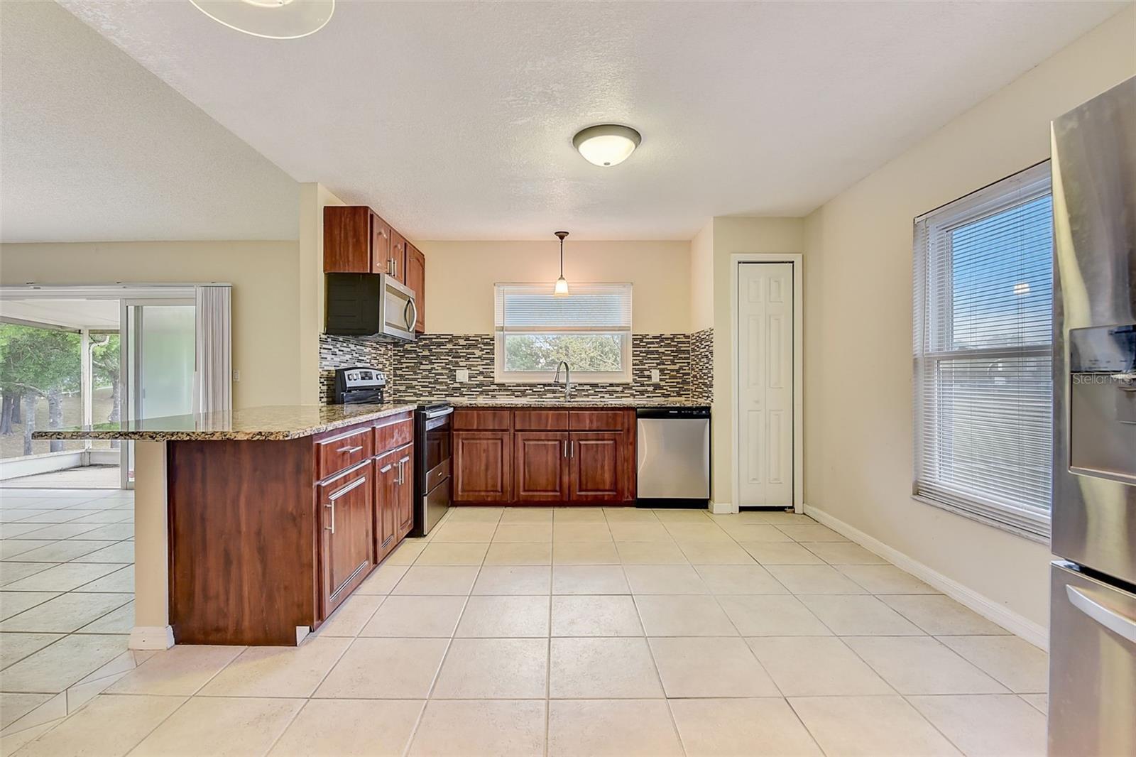 Welcome to your dream home at 7671 Darci Ridge Court, Kissimmee, FL 34747! This stunning 4-bedroom, 2-bathroom residence offers a blend of comfort, style, and convenience. Step inside to find beautiful PERGO FLOORING and ceramic tile that flow seamlessly throughout the home, creating an inviting and luxurious atmosphere. The gourmet kitchen is a chef’s delight, featuring GRANITE COUNTERTOPS, STAINLESS STEEL appliances, and a charming breakfast bar, perfect for morning coffee or casual meals. The spacious, open-concept layout is enhanced by soaring VAULTED CEILINGS, providing an airy and expansive feel. The SPLIT BEDROOM floor plan ensures privacy, with the primary suite offering side-to-side closets and a Roman shower for a spa-like retreat. Relax in the screened porch and take in the serene park view, an ideal spot for unwinding after a long day. Recent upgrades include: - NEW SEPTIC ($8,000) - NEW ROOF ($14,000) - NEW WATER HEATER ($1,200) Situated on a cul-de-sac and just minutes from Walt Disney World, this home combines a peaceful setting with prime location. With optional low HOA fees, this property is must-see. Schedule your tour today!