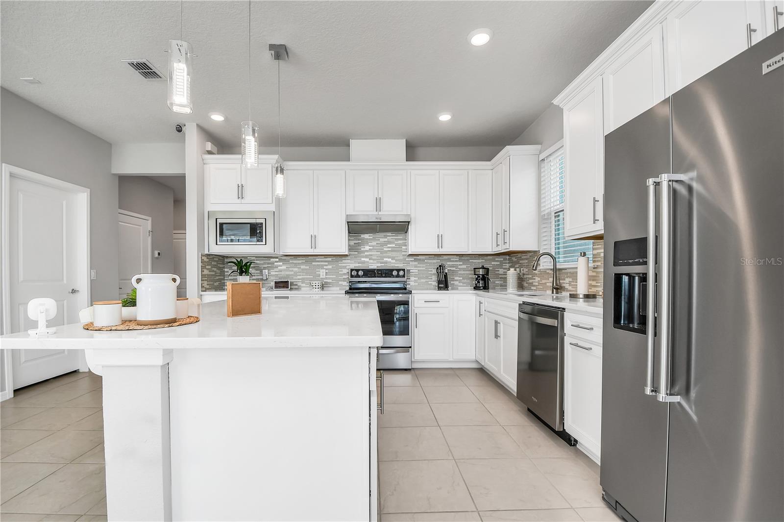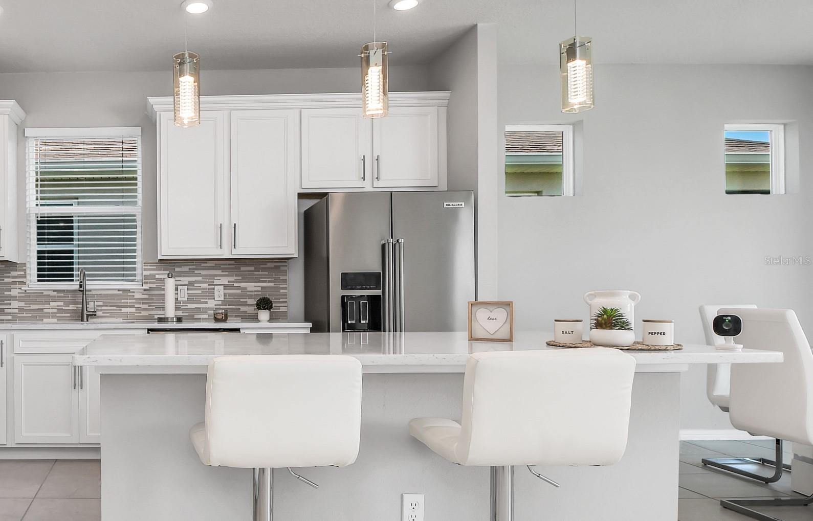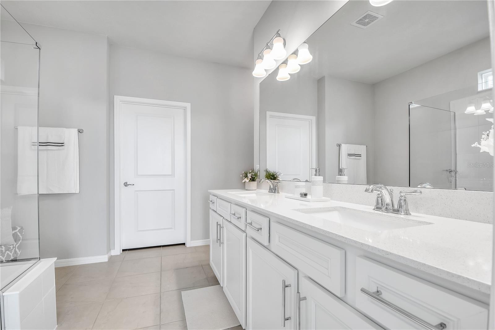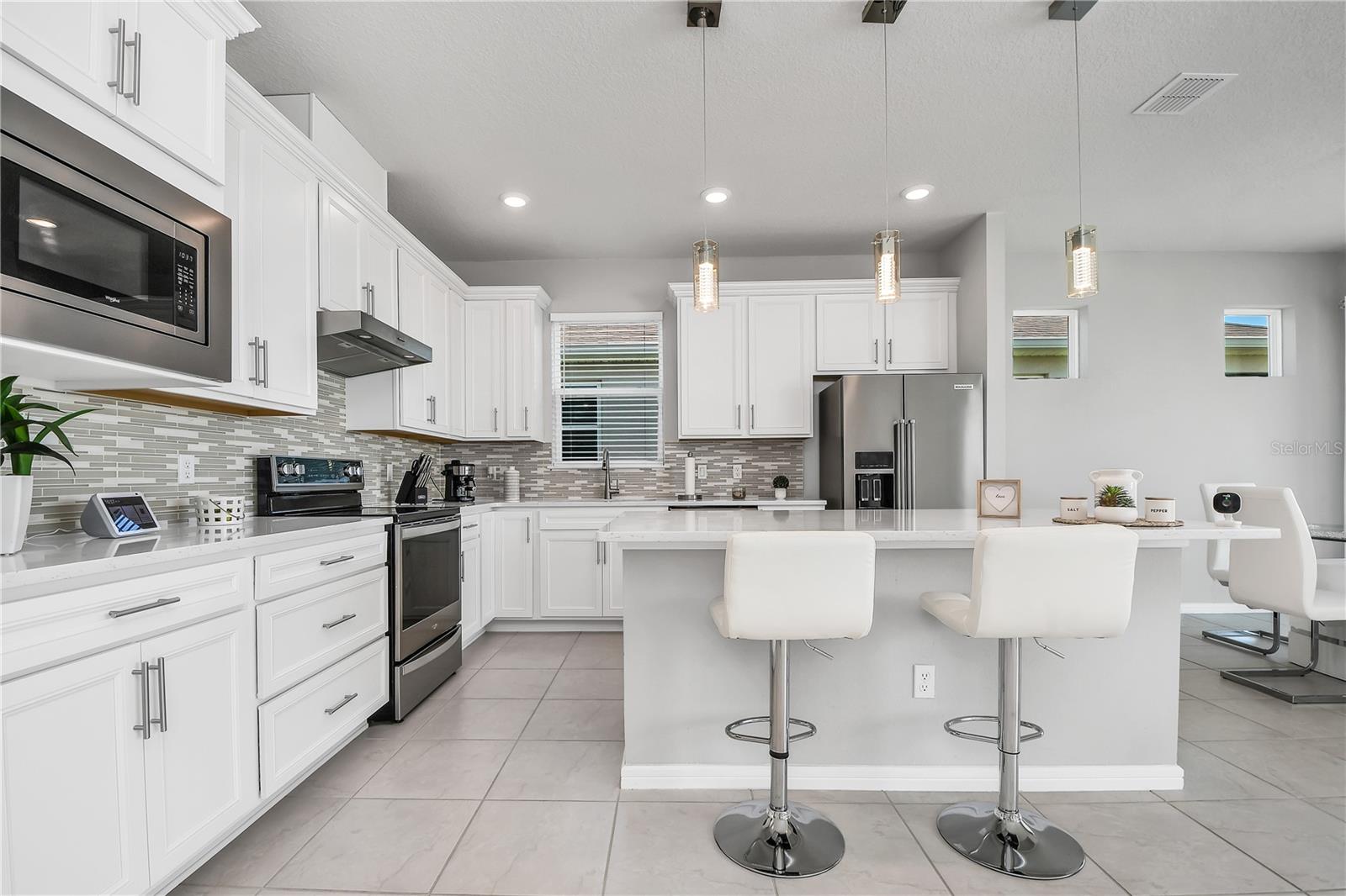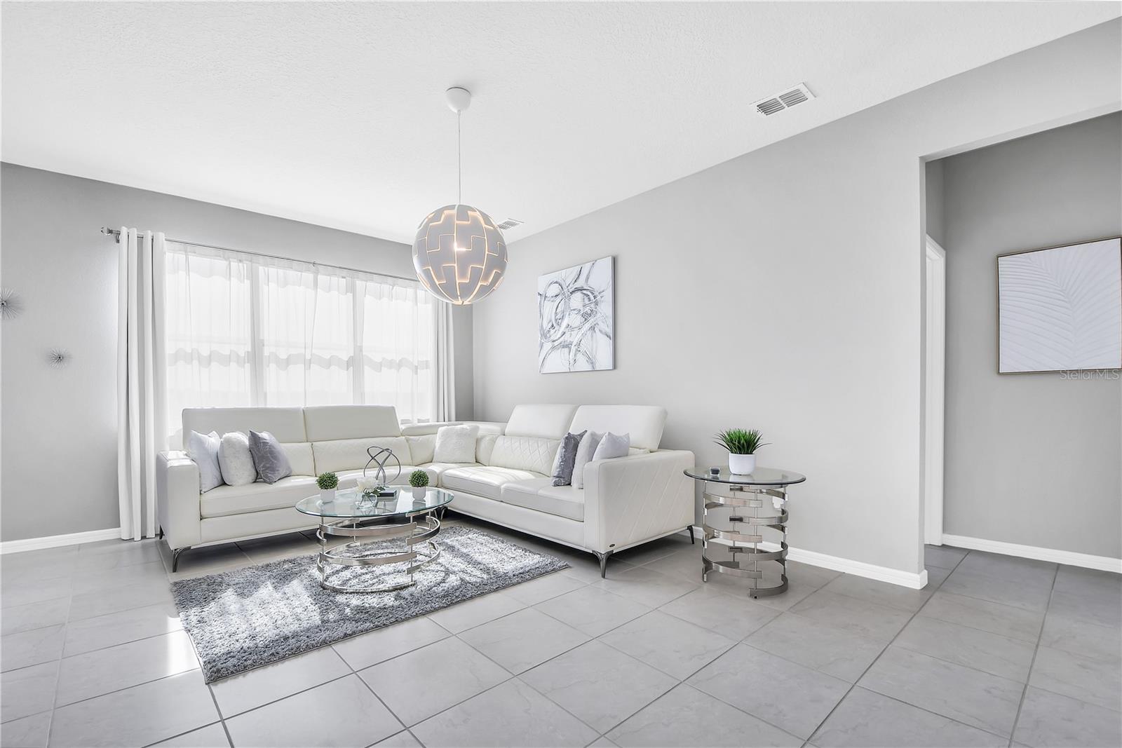 This beautiful home design is a single-story layout with an open plan, split bedrooms, and a spacious kitchen with plenty of storage. This new construction home features a Craftsman exterior, 3 bedrooms, 2 bathrooms, a large entertaining area, covered lanai, and a 2-car garage. The well-integrated kitchen, dining area, and gathering room lead to the covered lanai for easy indoor and outdoor entertaining. The kitchen includes a large island, walk-in pantry, white cabinets, quartz countertops, and pendant lighting. The Owner’s Suite has a private bathroom with dual sinks, a walk-in shower, and a walk-in closet. Additional features include guest bedrooms, a full bathroom, designer accents, and access to amenities like a pool, sports courts, and fitness center. Located in a 55+ gated neighborhood with easy access to major roadways and attractions in Orlando.