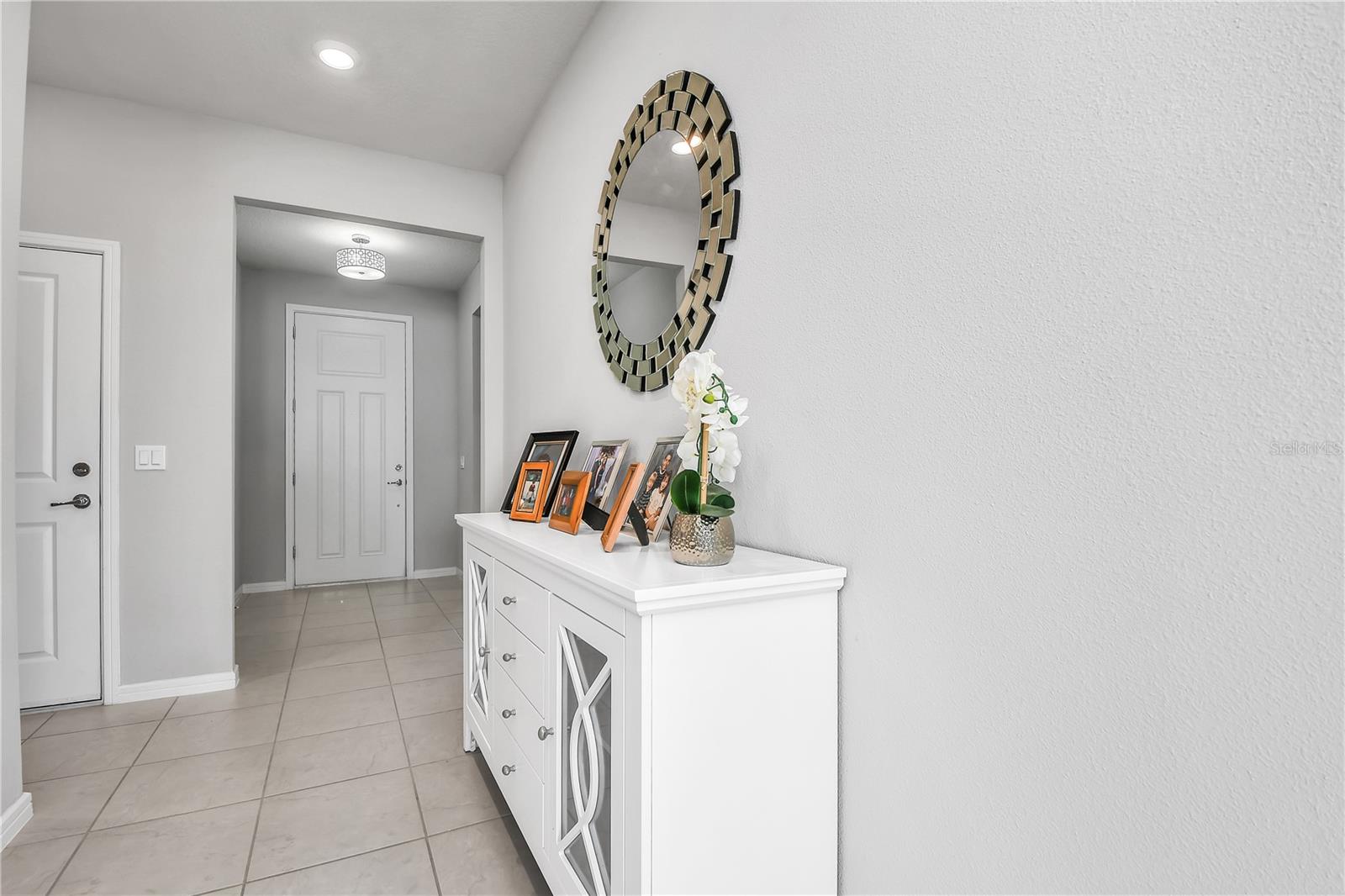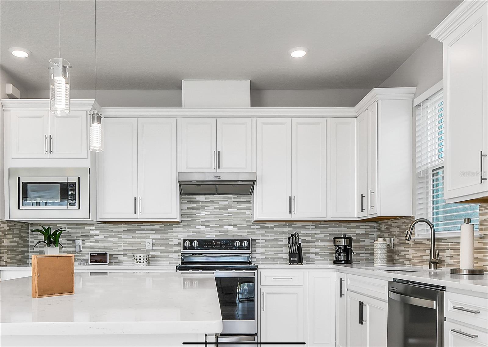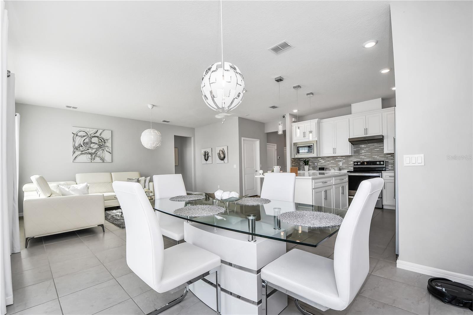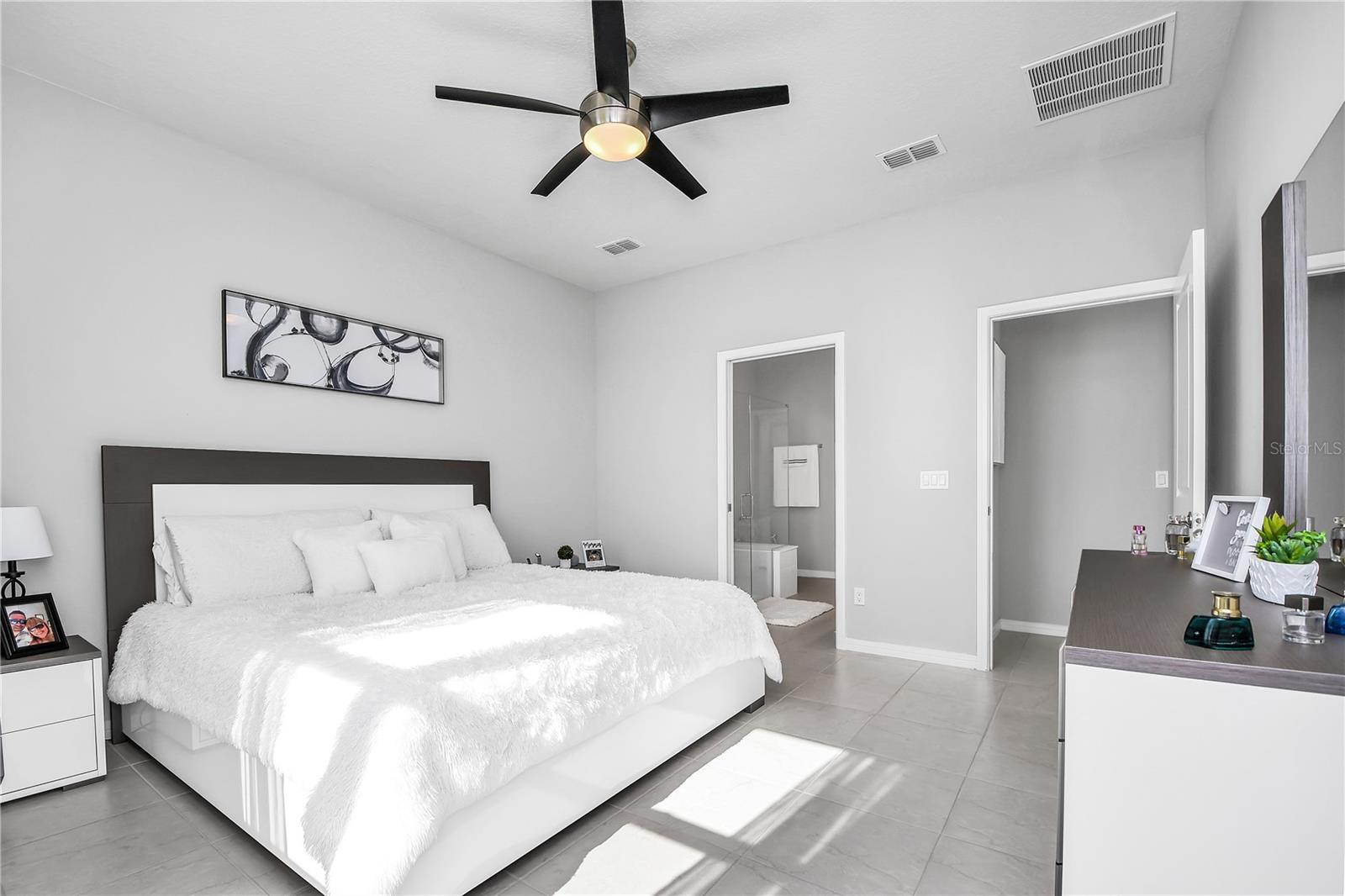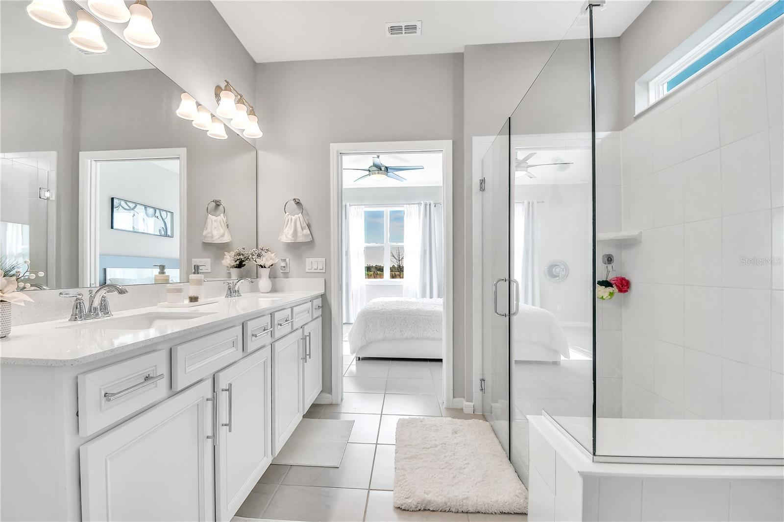 This beautiful home design is a single-story layout with an open plan, split bedrooms, and a spacious kitchen with plenty of storage. This new construction home features a Craftsman exterior, 3 bedrooms, 2 bathrooms, a large entertaining area, covered lanai, and a 2-car garage. The well-integrated kitchen, dining area, and gathering room lead to the covered lanai for easy indoor and outdoor entertaining. The kitchen includes a large island, walk-in pantry, white cabinets, quartz countertops, and pendant lighting. The Owner’s Suite has a private bathroom with dual sinks, a walk-in shower, and a walk-in closet. Additional features include guest bedrooms, a full bathroom, designer accents, and access to amenities like a pool, sports courts, and fitness center. Located in a 55+ gated neighborhood with easy access to major roadways and attractions in Orlando.